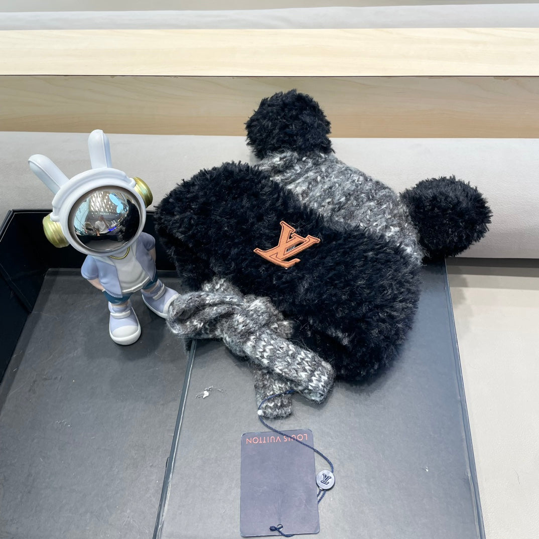 KNITTED BEANIE HAT IN BLACK MIX GRAY WOOL WITH CUTE BEAR EARS 422498
