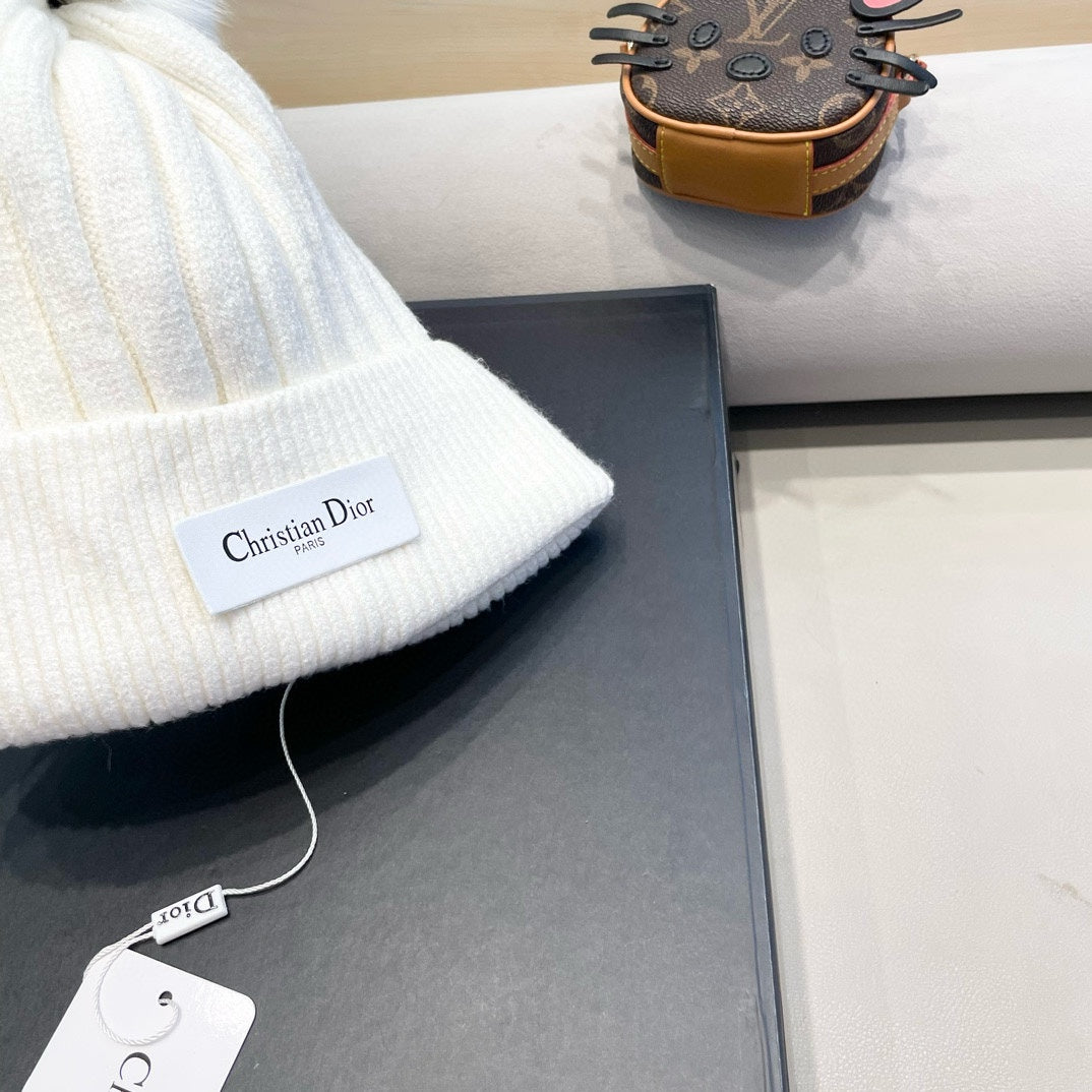 KNITTED BEANIE HAT IN WHITE WOOL AND FOX FUR 435031