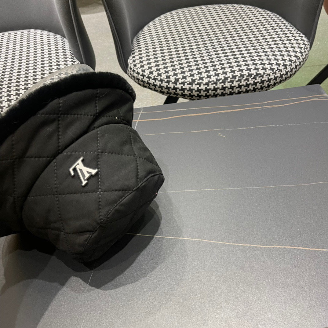 KNITTED BUCKET HAT IN BLACK COTTON AND LAMB FUR 420923