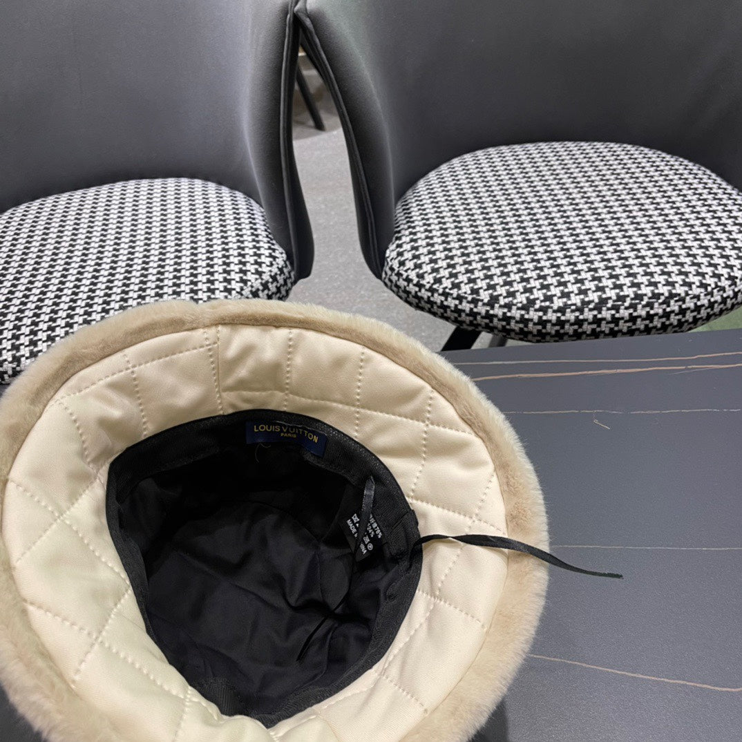 KNITTED BUCKET HAT IN CREAM BEIGE COTTON AND LAMB FUR 420924