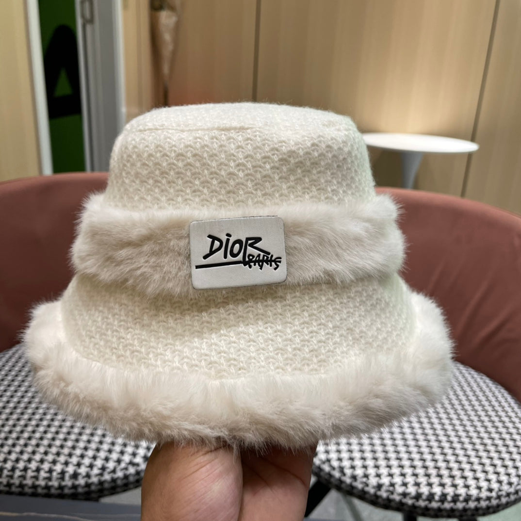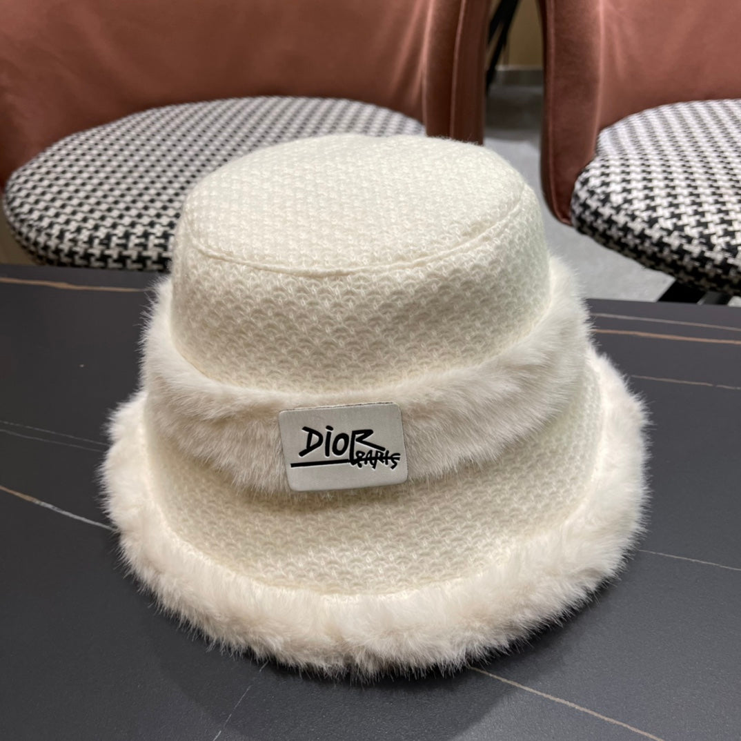 KNITTED BUCKET HAT IN WHITE FABRIC AND RABBIT FUR 431198