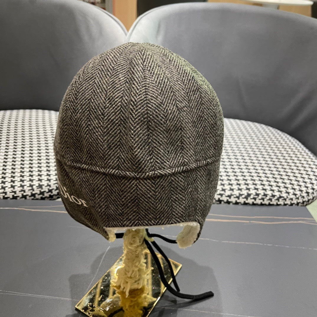 KNITTED TRAPPER HAT IN GRAY WOOL 439525