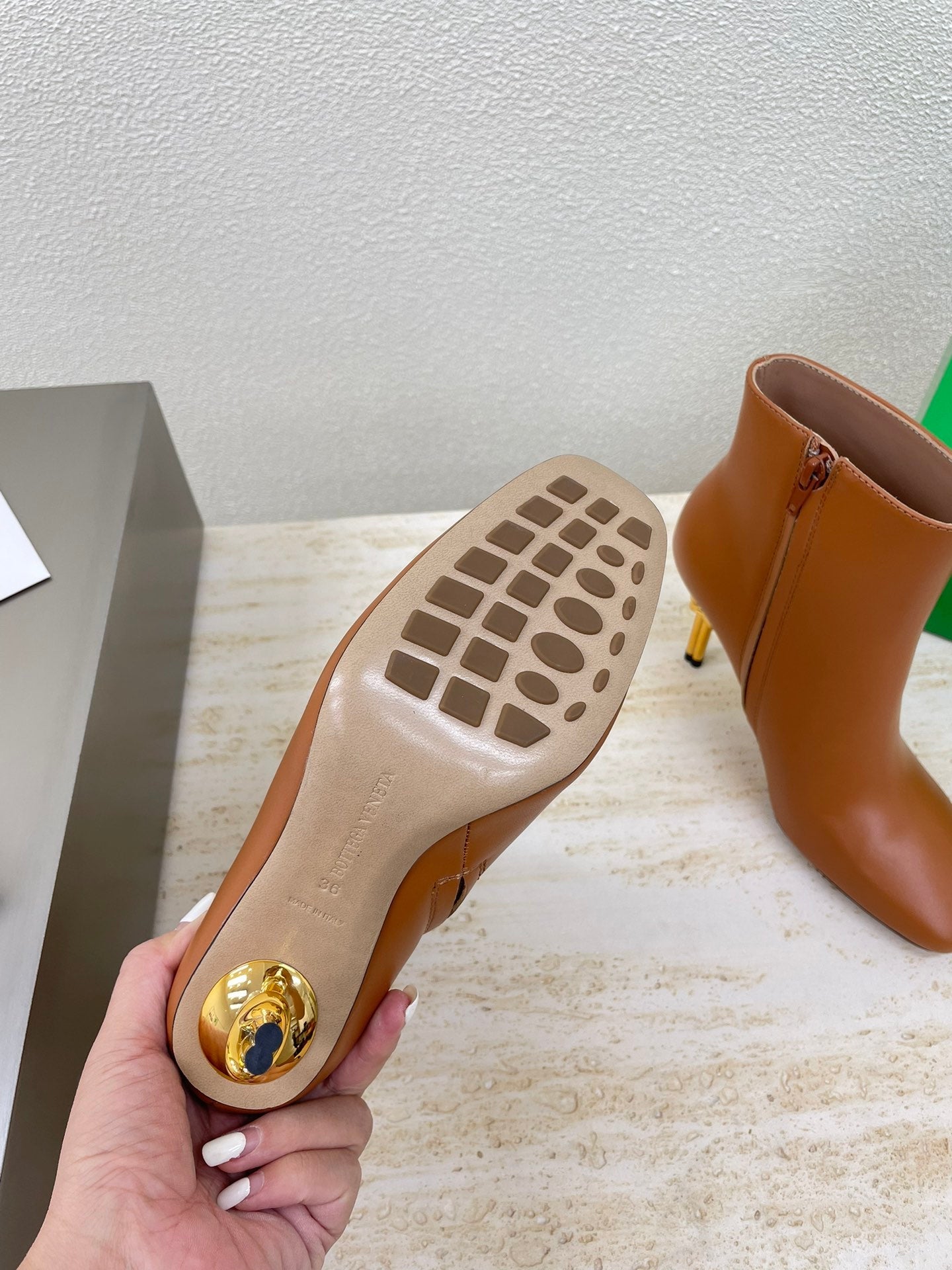 KNOT ANKLE BOOT IN BRONZE BROWN CALFSKIN WITH GOLD METAL HEEL 9 CM