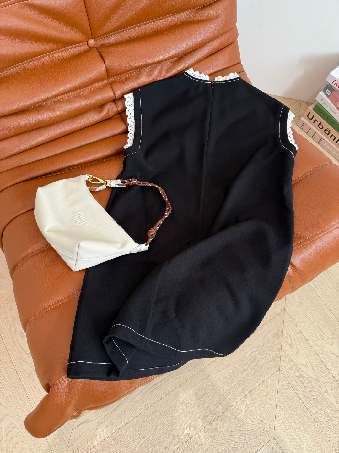 LACE-EMBROIDERED 25S BROAD-SHOULDER DRESS 265767