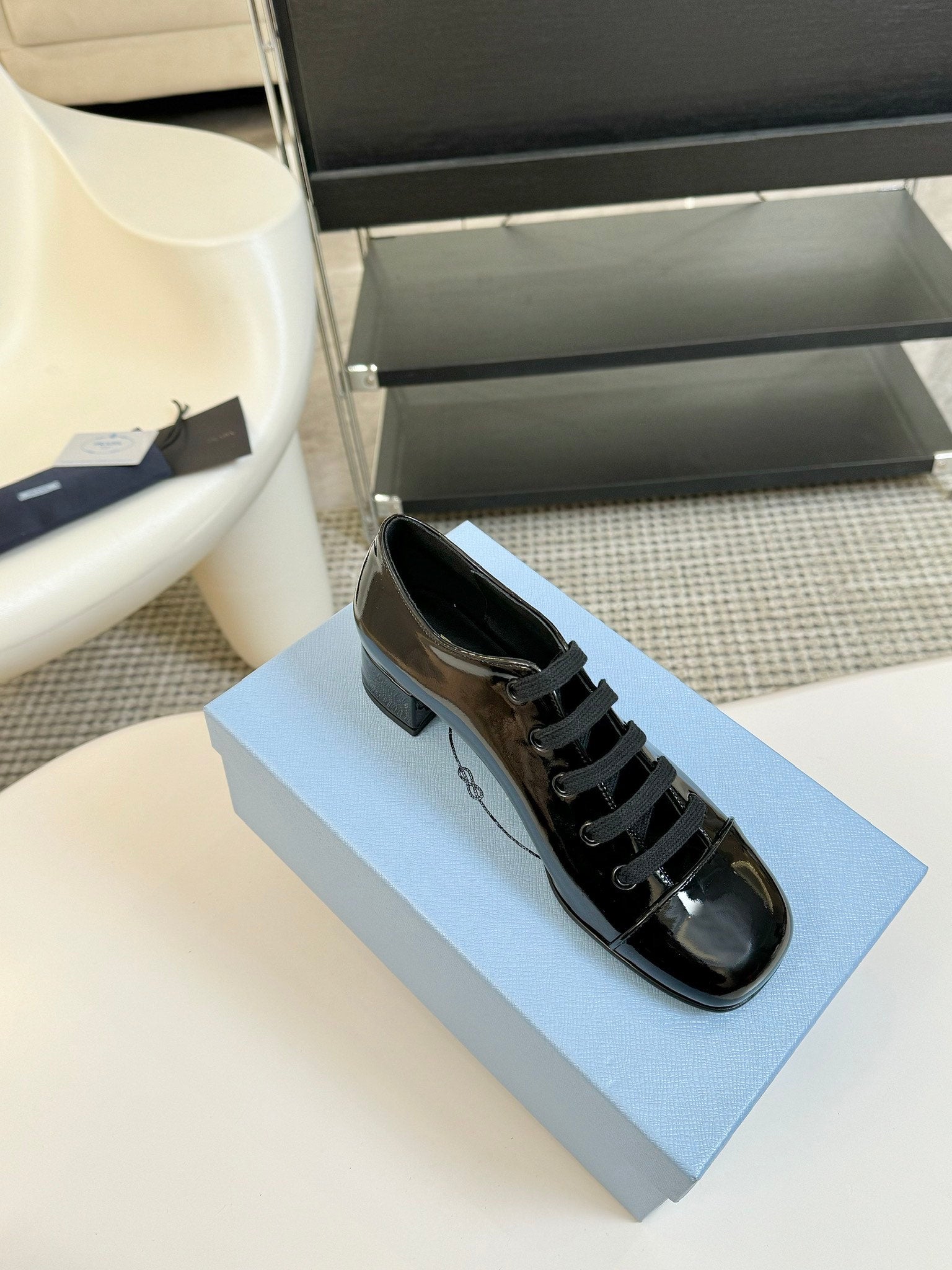LACE-UP HIGH SHOES IN BLACK GLOSSY CALFSKIN