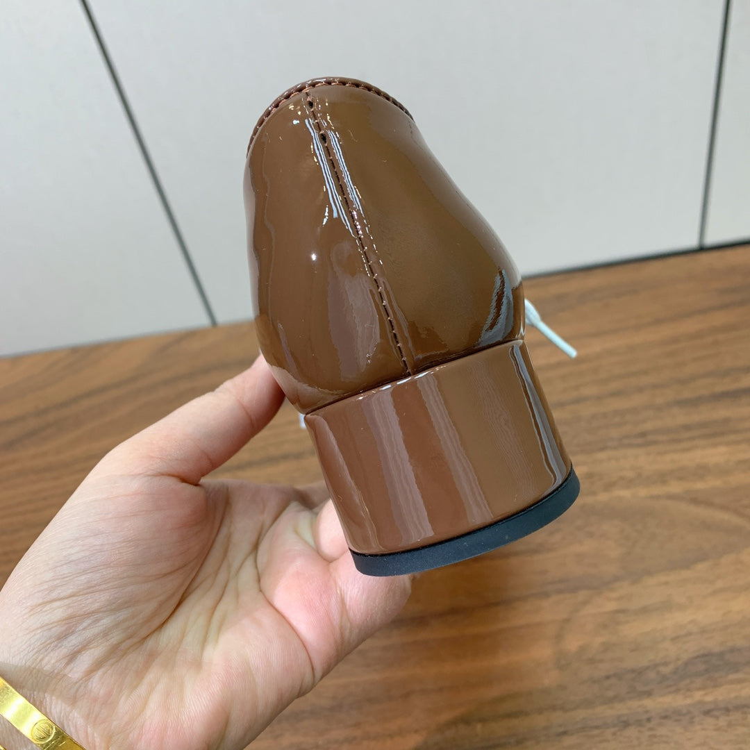 LACE-UP HIGH SHOES IN PECAN BROWN GLOSSY CALFSKIN