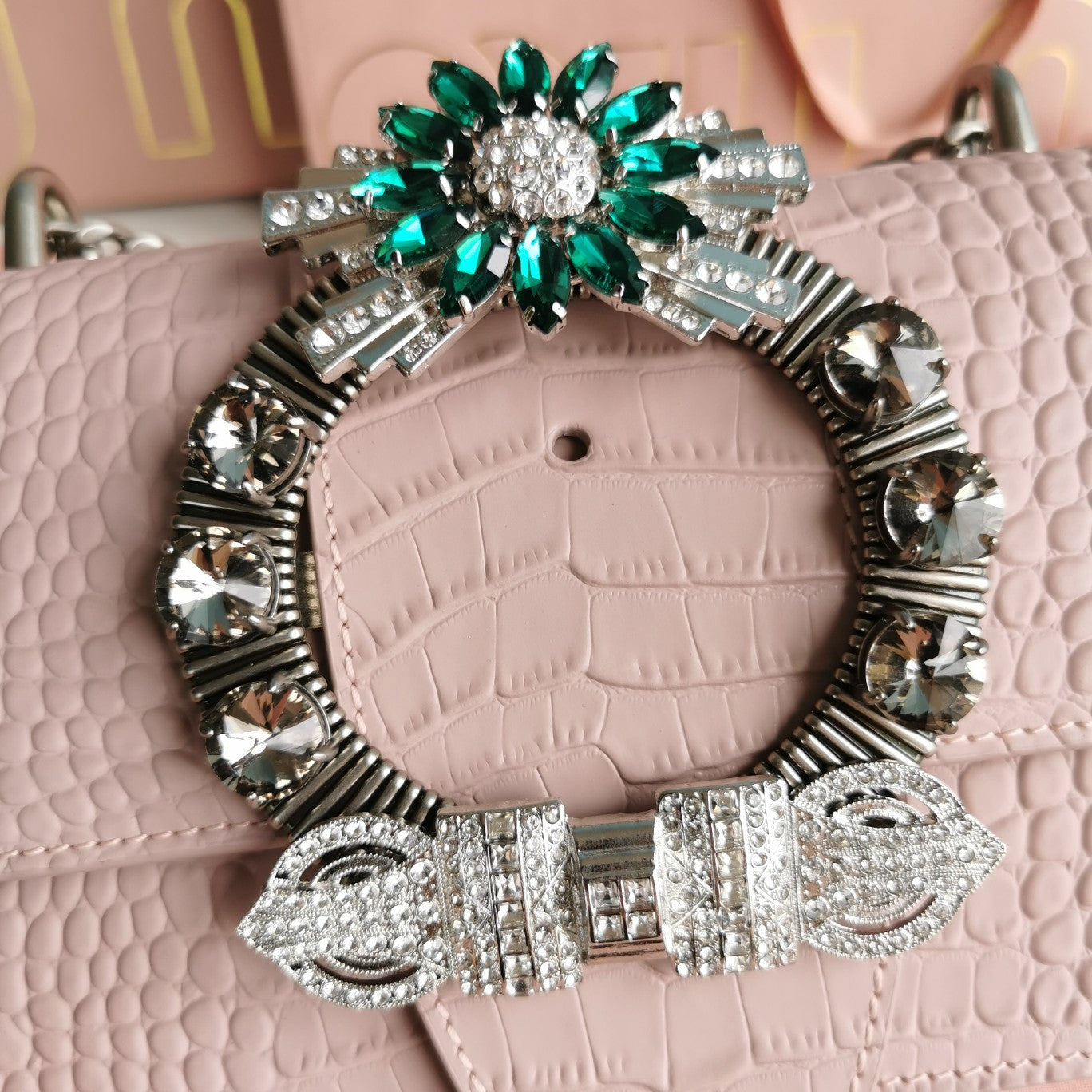 LADY 20 HANDBAG IN CROCODILE PATTERN LIGHT PINK CALFSKIN