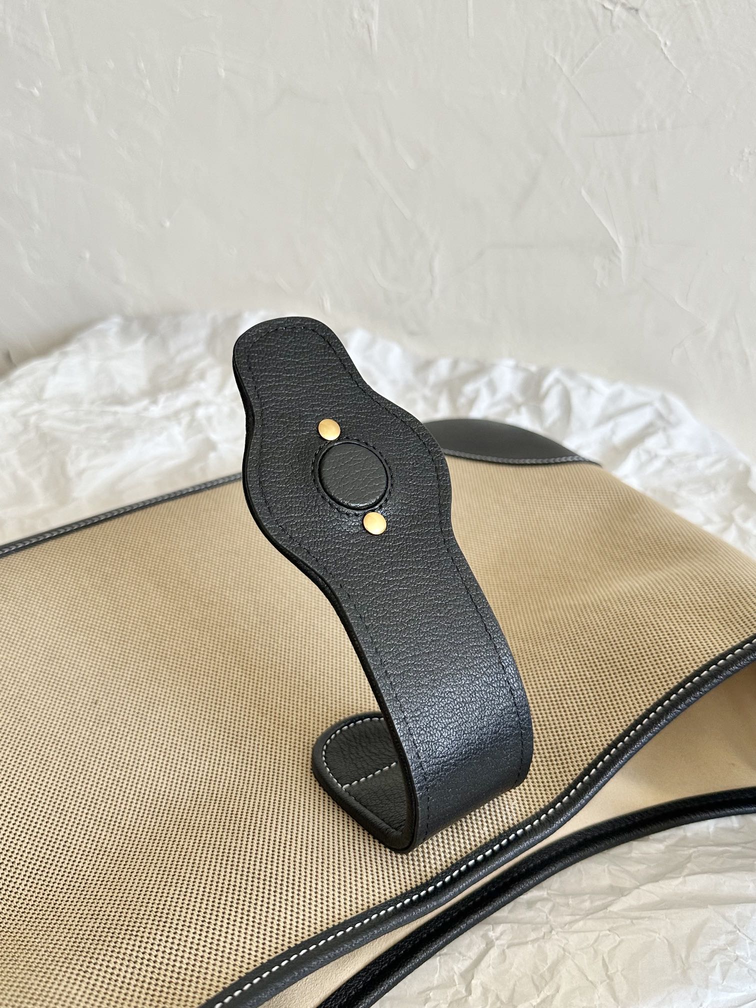 LARGE APHRODITE 47 BAG BEIGE CANVAS AND BLACK CALFSKIN