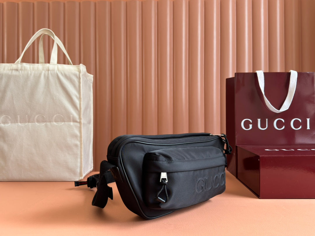 LARGE BELT BAG 34 IN BLACK CANVAS GREEN AND RED WEB DETAIL