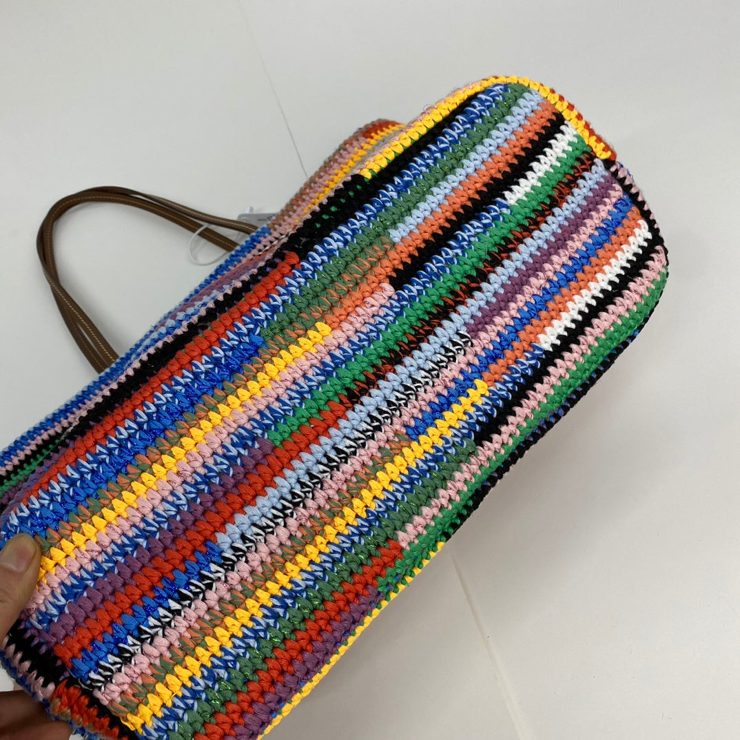 LARGE SHOPPING BAG 40 IN COLORFUL WOOL AND LEATHER STRAP