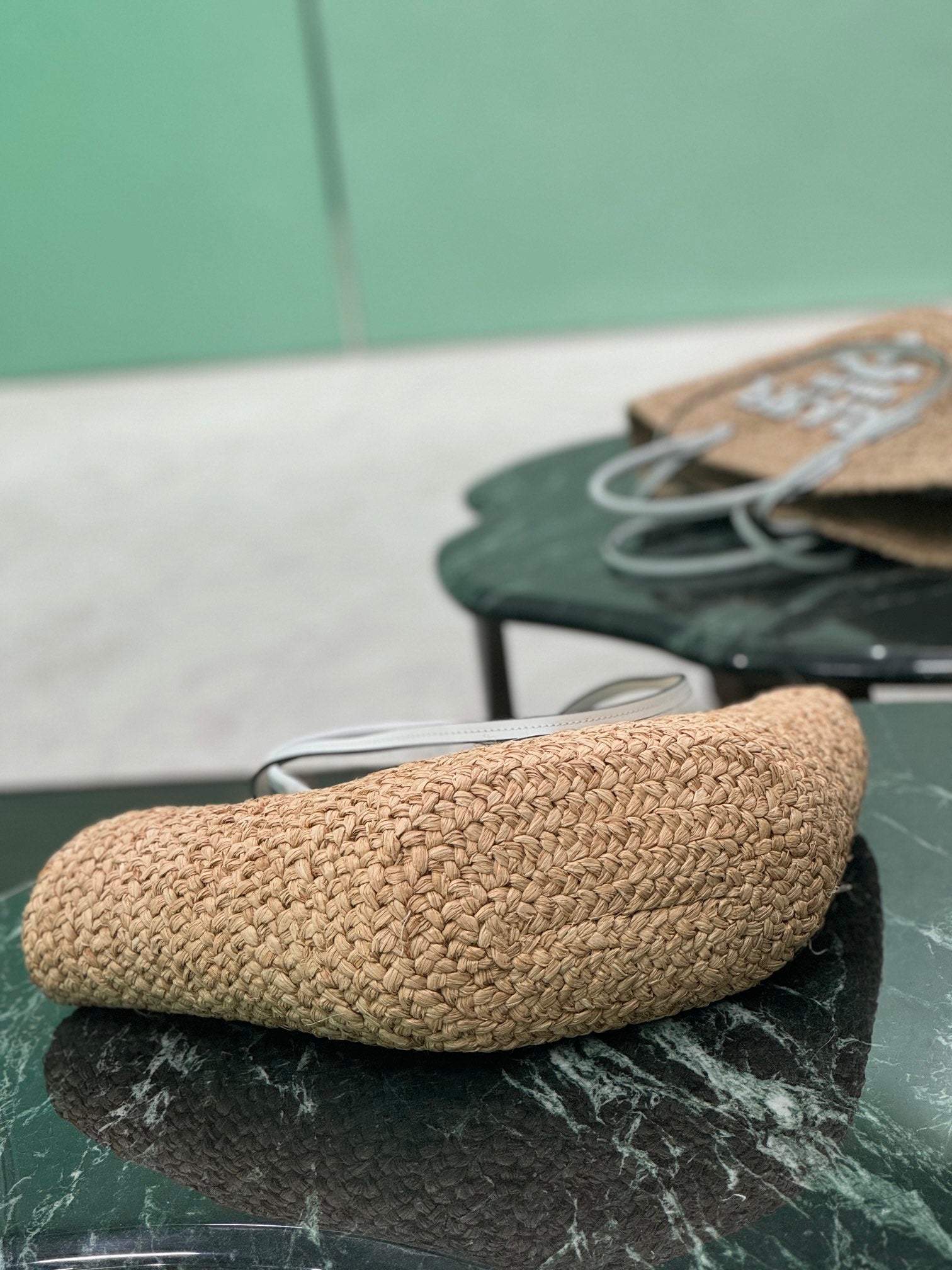 LARGE TOTE BAG 56 IN BEIGE RAFFIA GRASS AND WHITE CALFSKIN TRIM