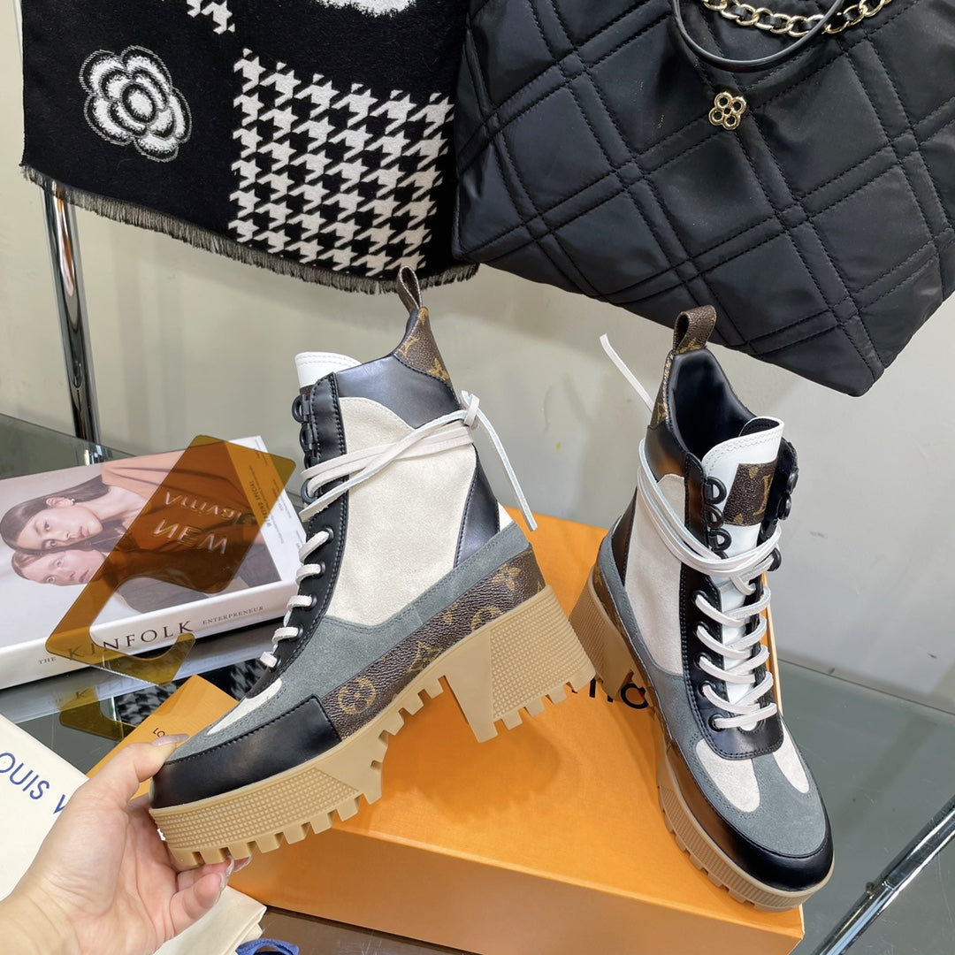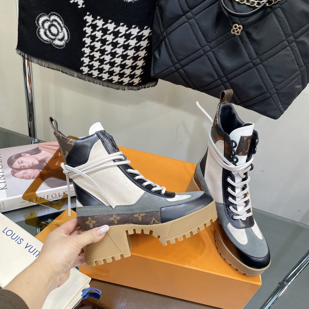 LAUREATE PLATFORM BOOTS IN WHITE CALFSKIN AND COIN GRAY SUEDE