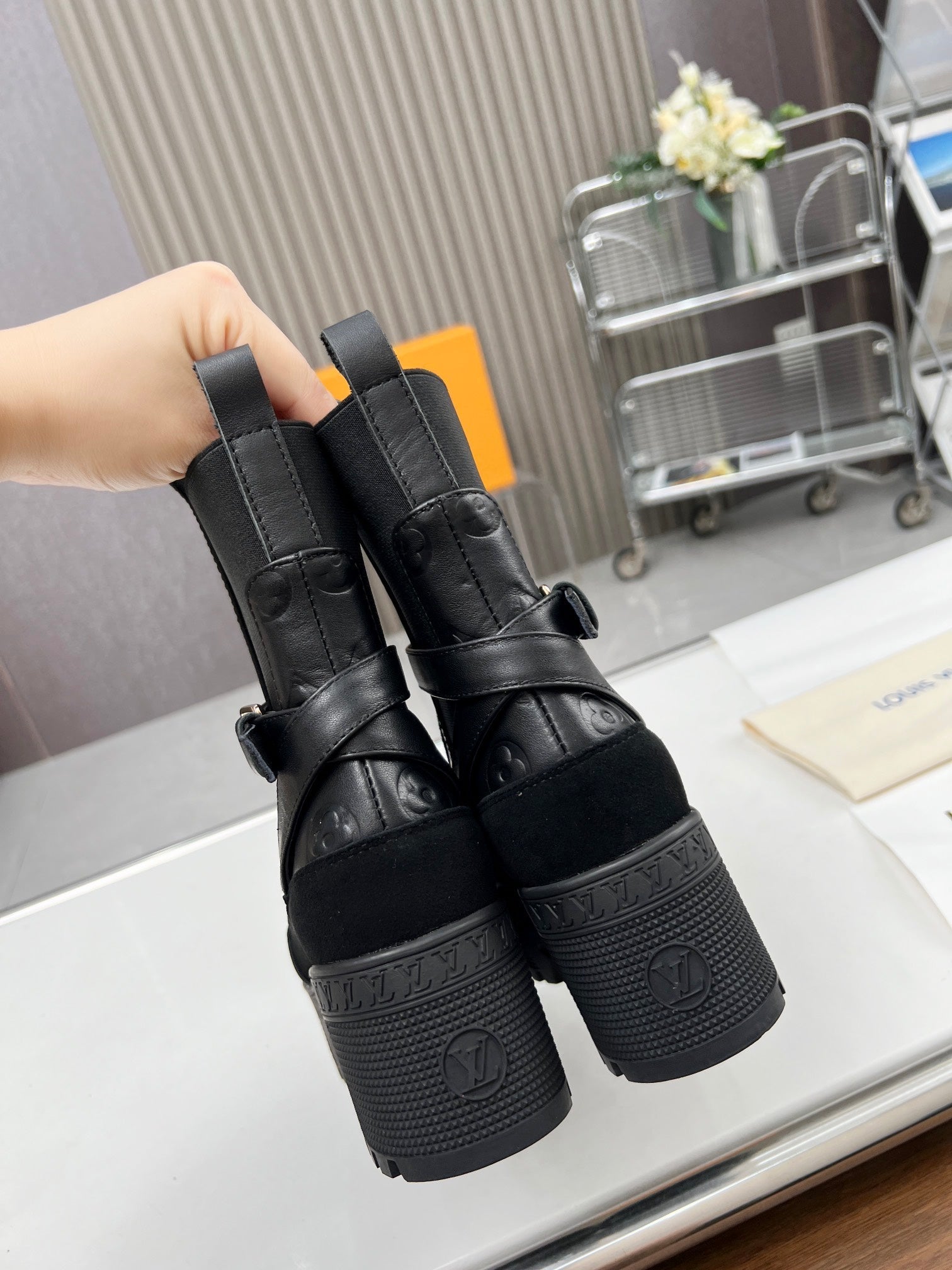 LAUREATE PLATFORM DESERT BOOT IN BLACK SUEDE AND CALFSKIN