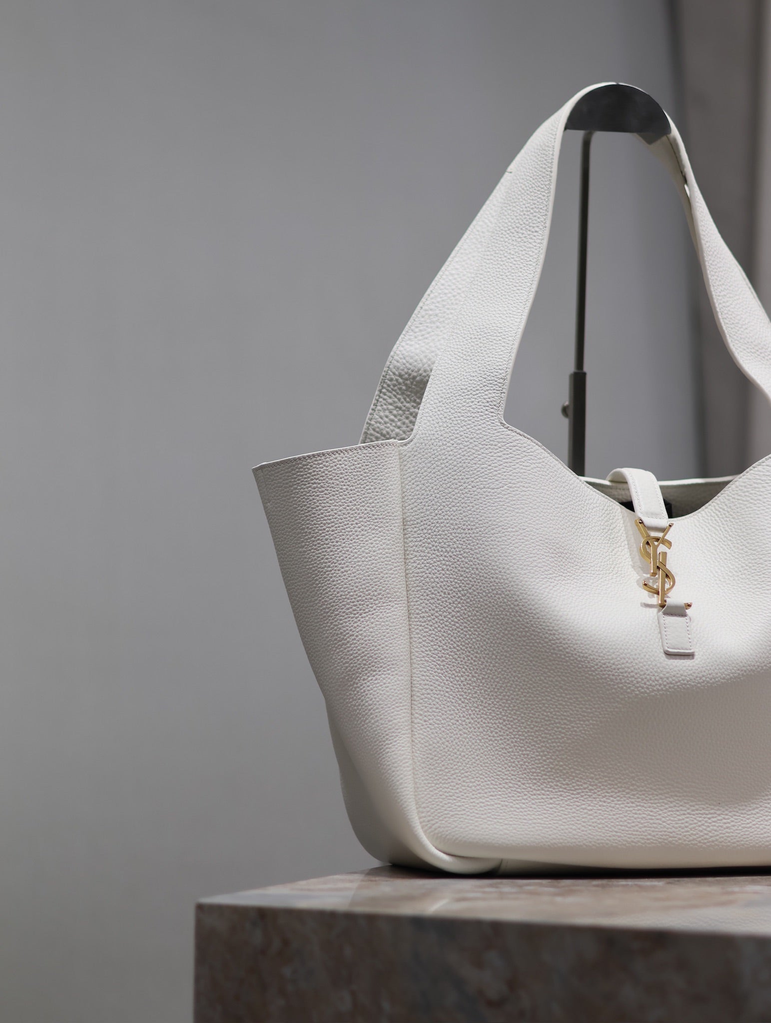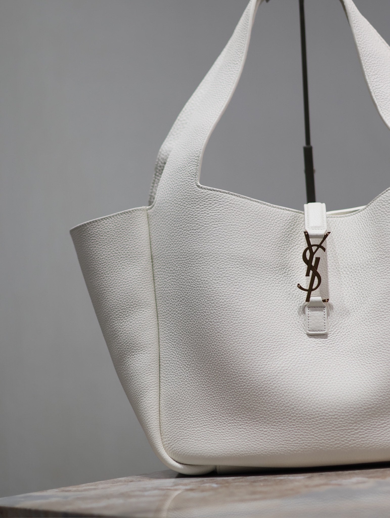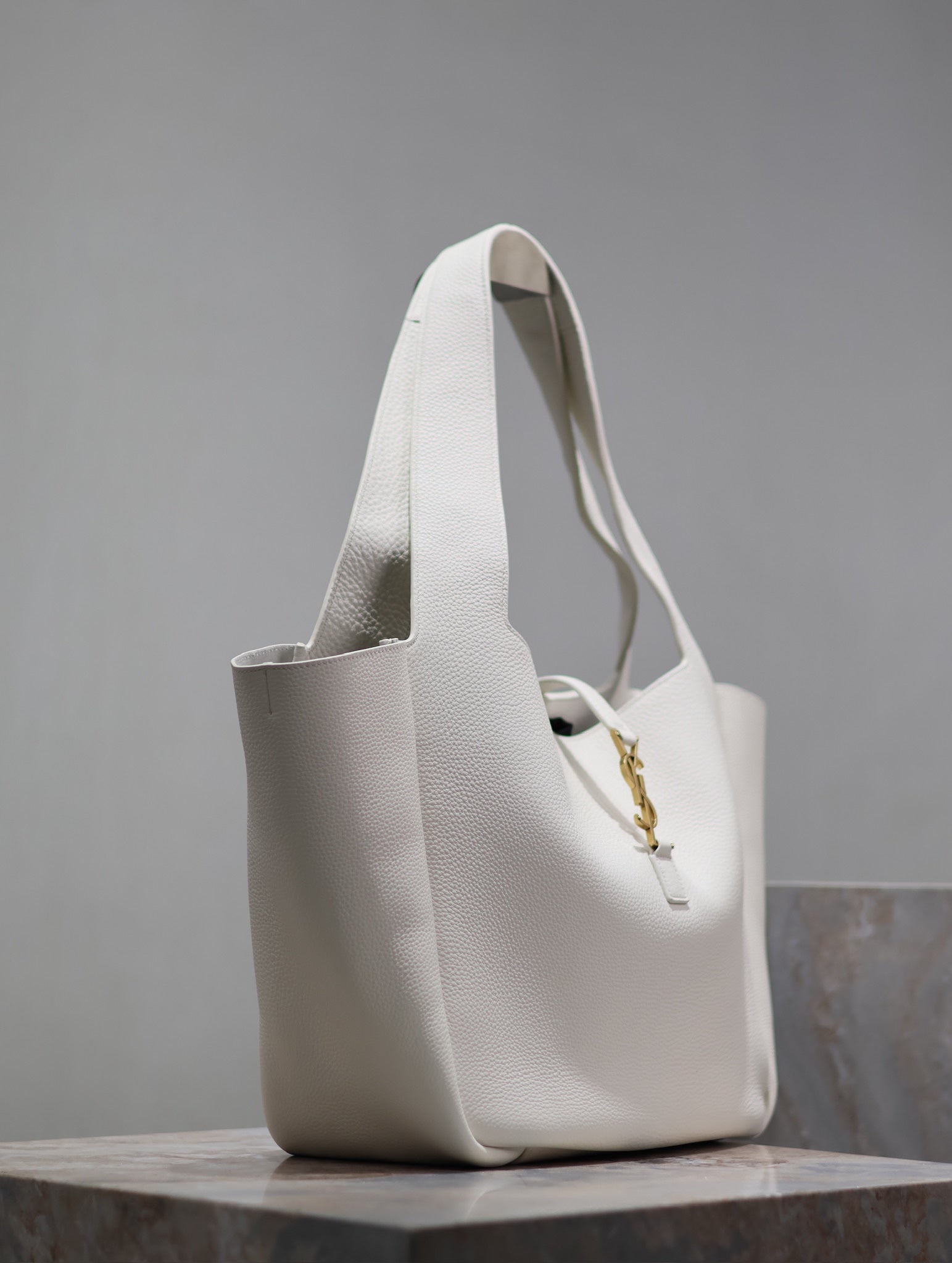 LE 5 À 7 BEA TOTE BAG 50 IN WHITE LAMBSKIN GOLD LOGO