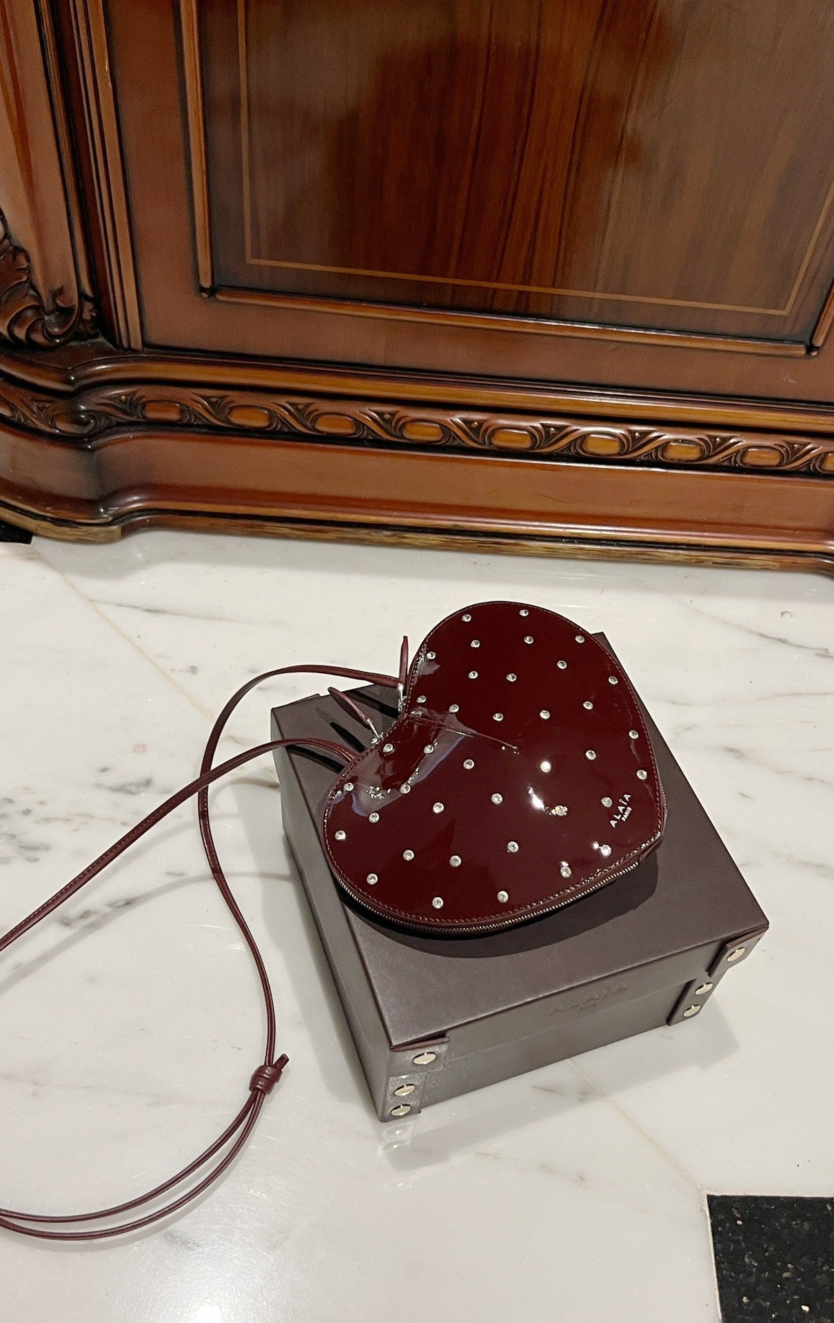 LE COEUR BAG 21 IN BURGUNDY RED PATENT CALFSKIN ATTACHED STRASS