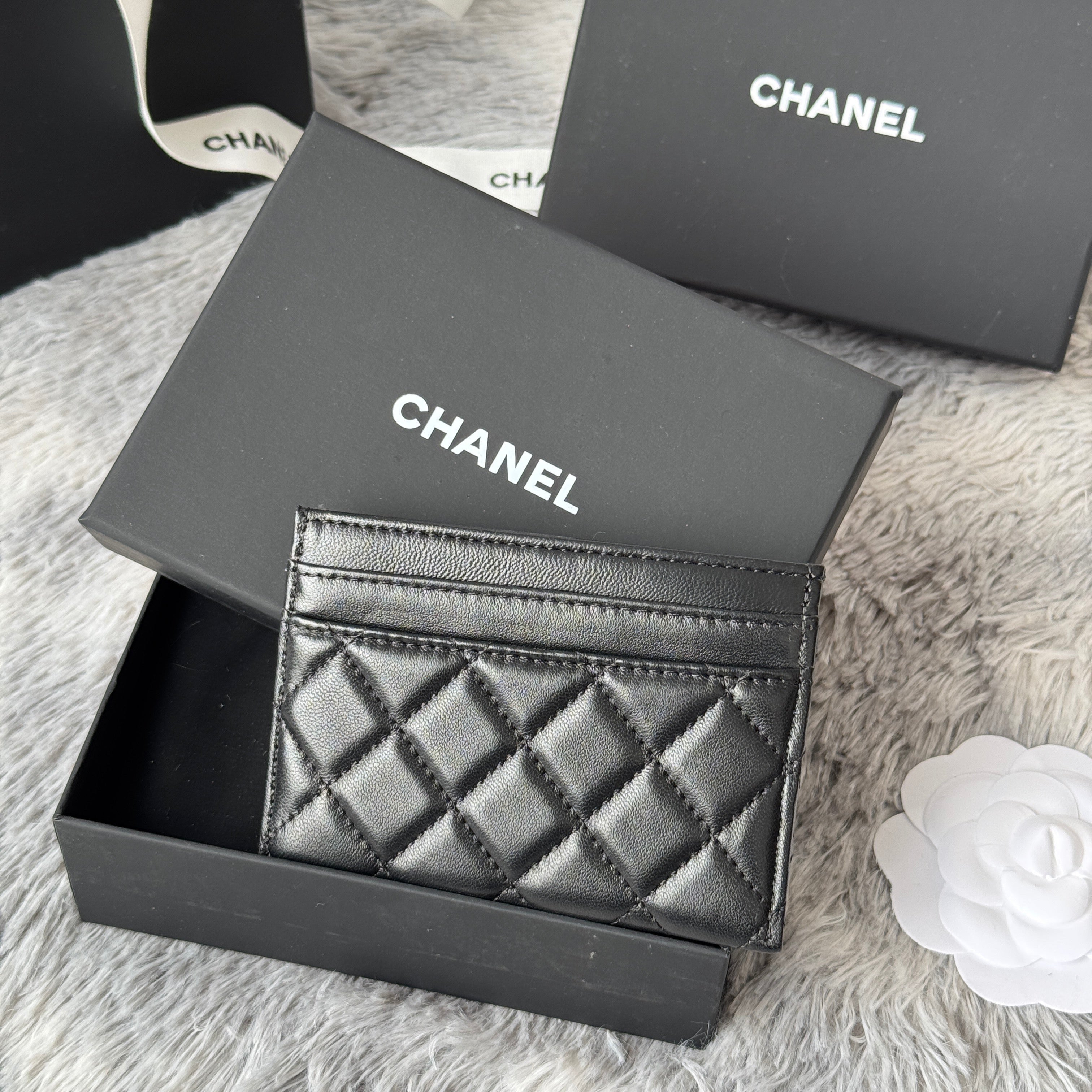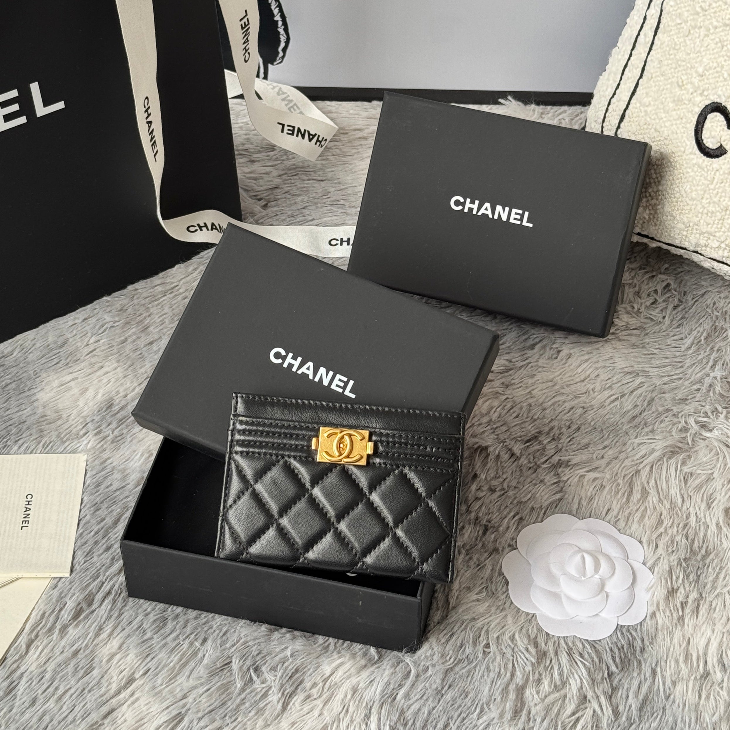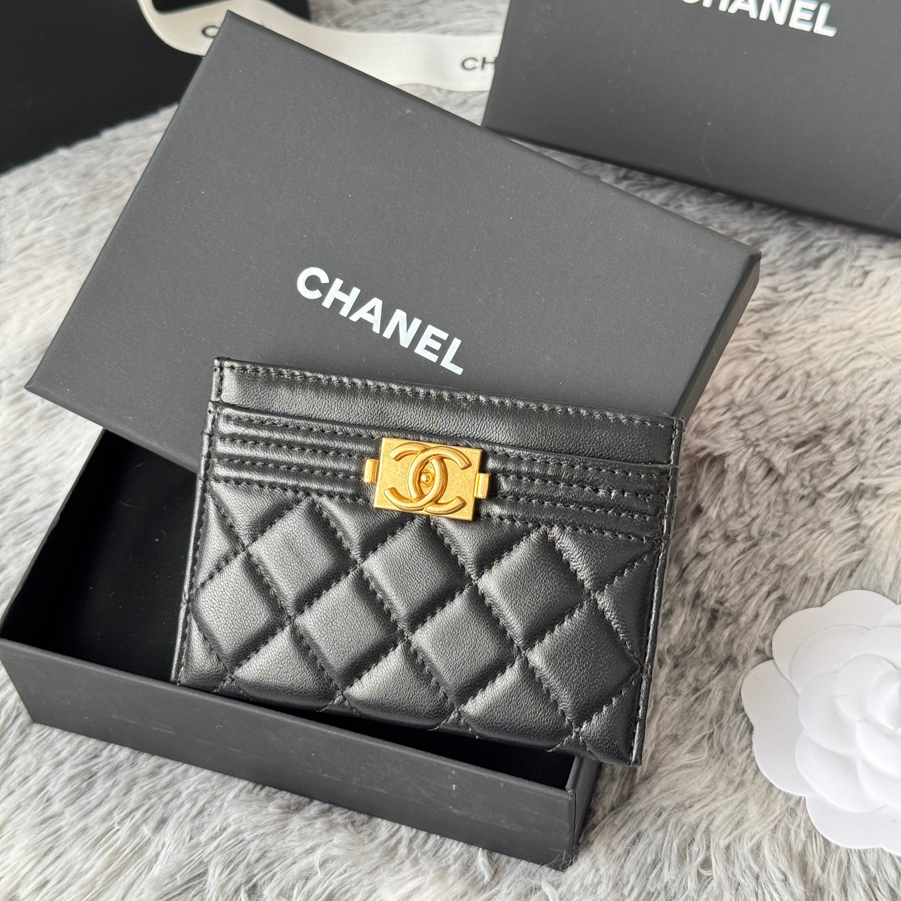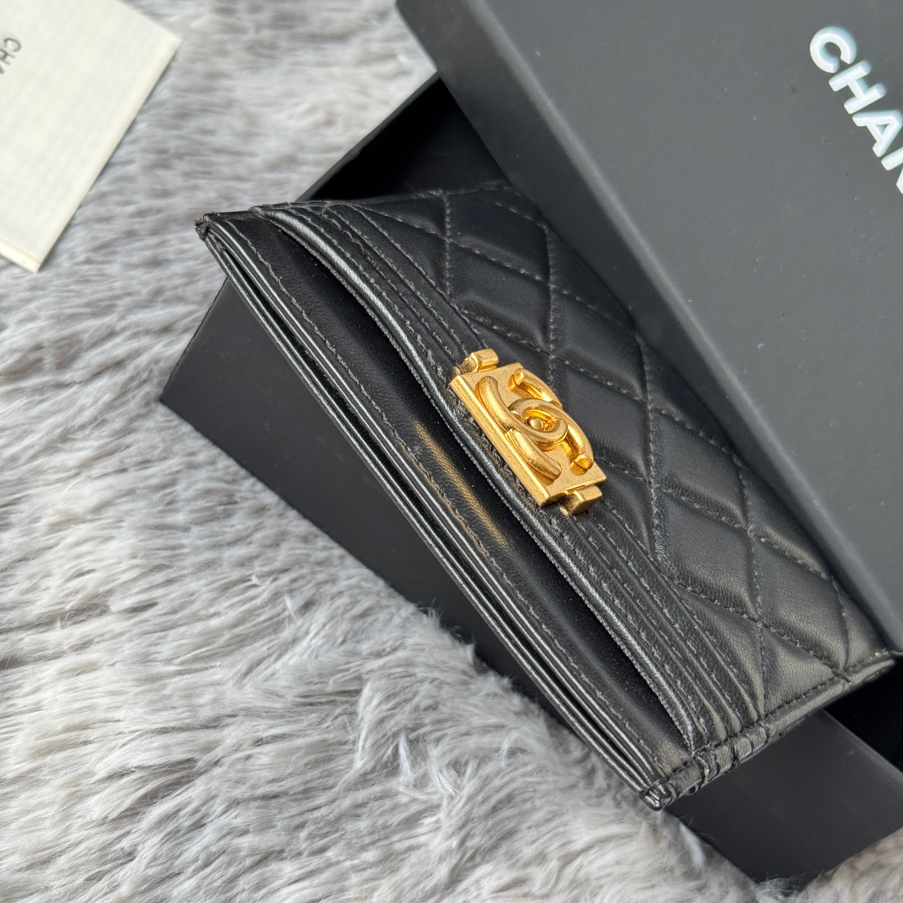 LEBOY CARD HOLDER 11 IN BLACK GRAINED CALFSKIN GOLD-TONE HARDWARE