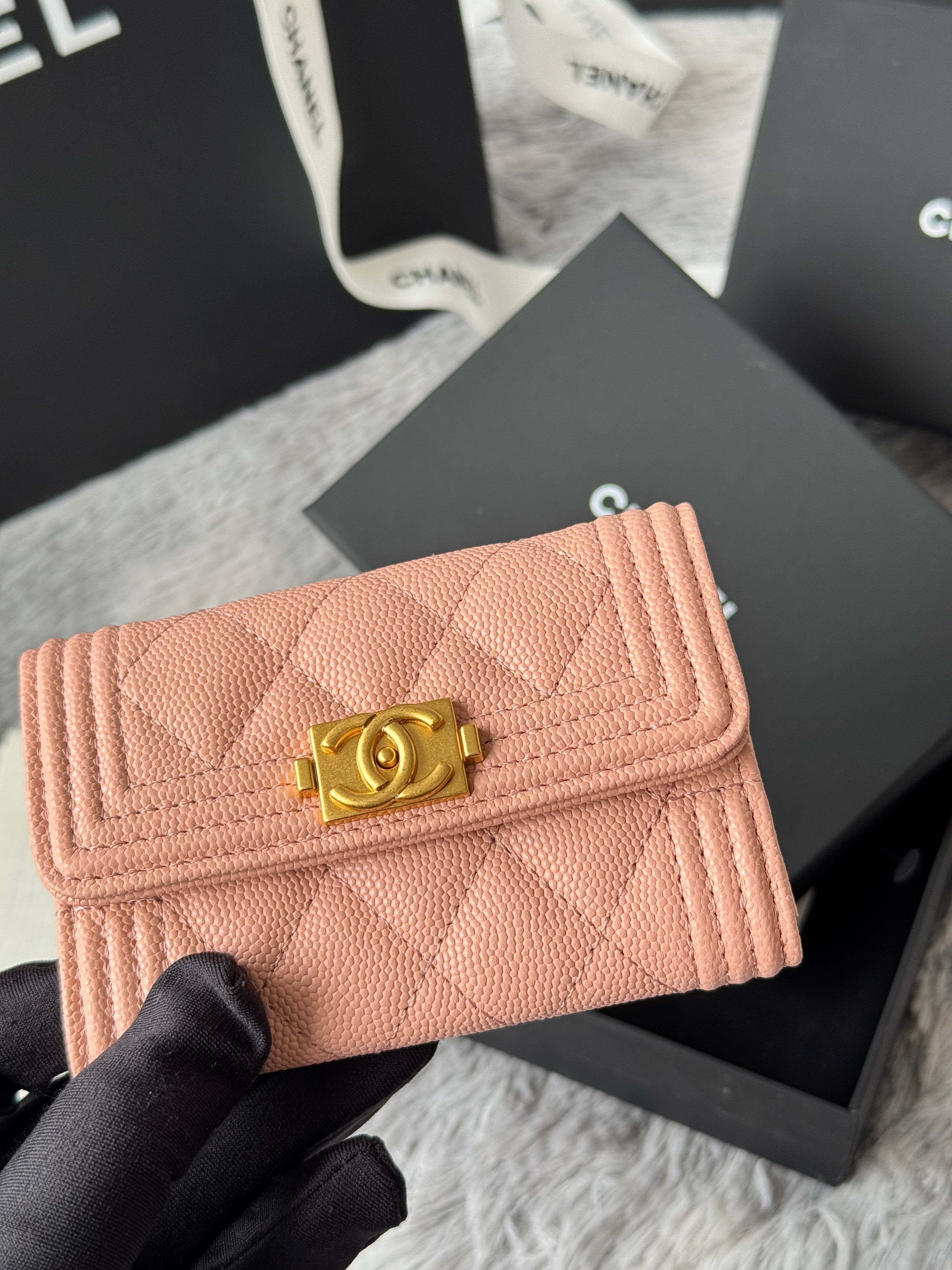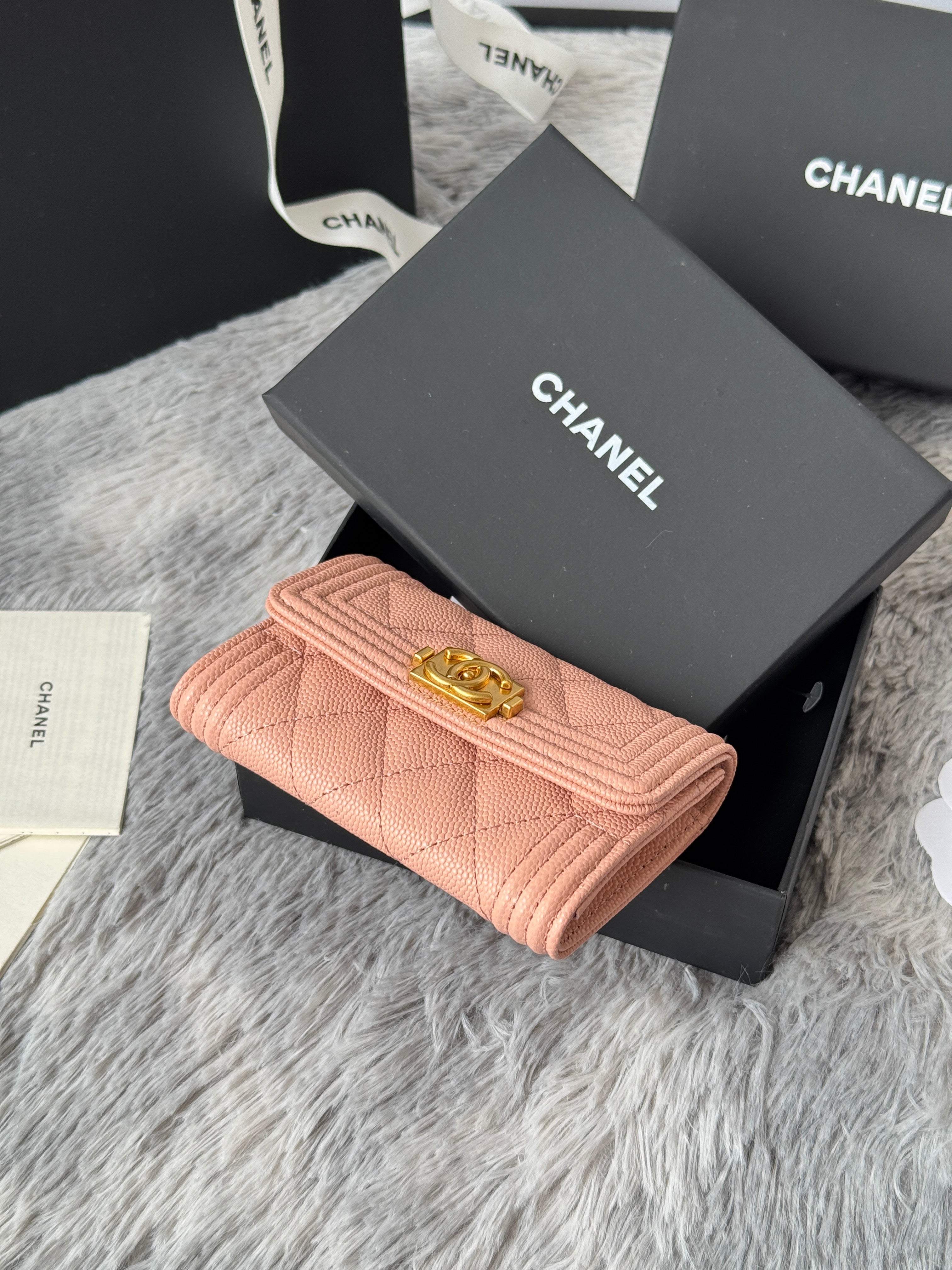 LEBOY WALLET 11 IN BEIGE GRAINED CALFSKIN GOLD-TONE HARDWARE