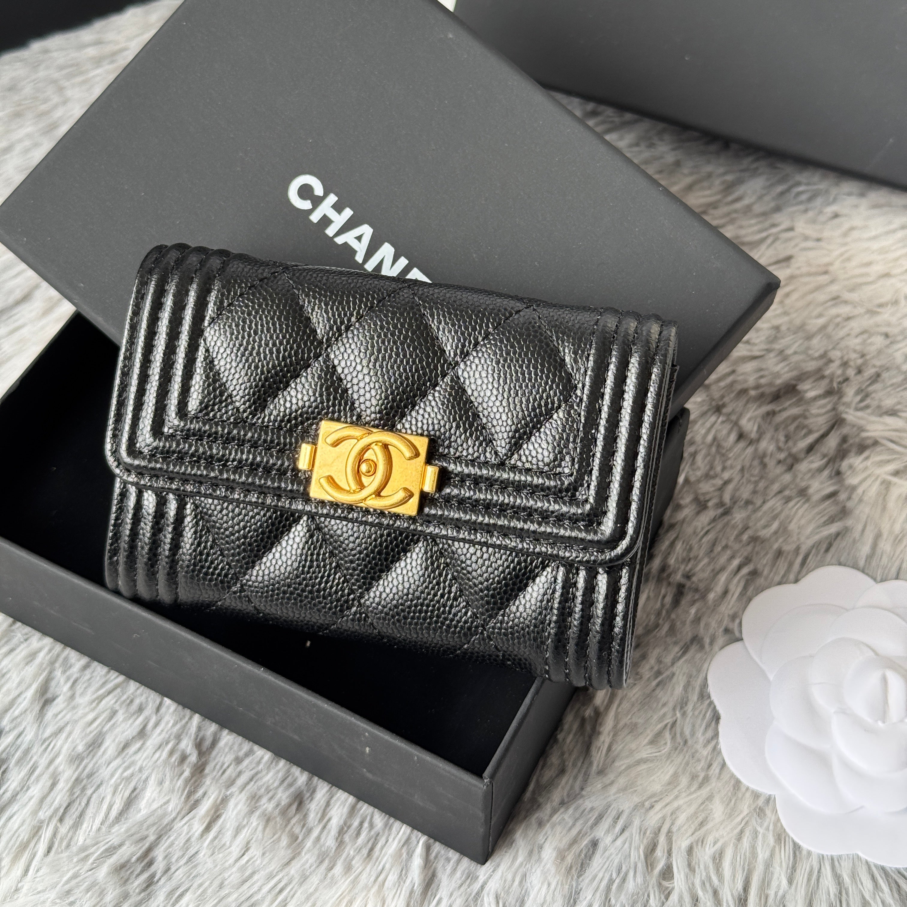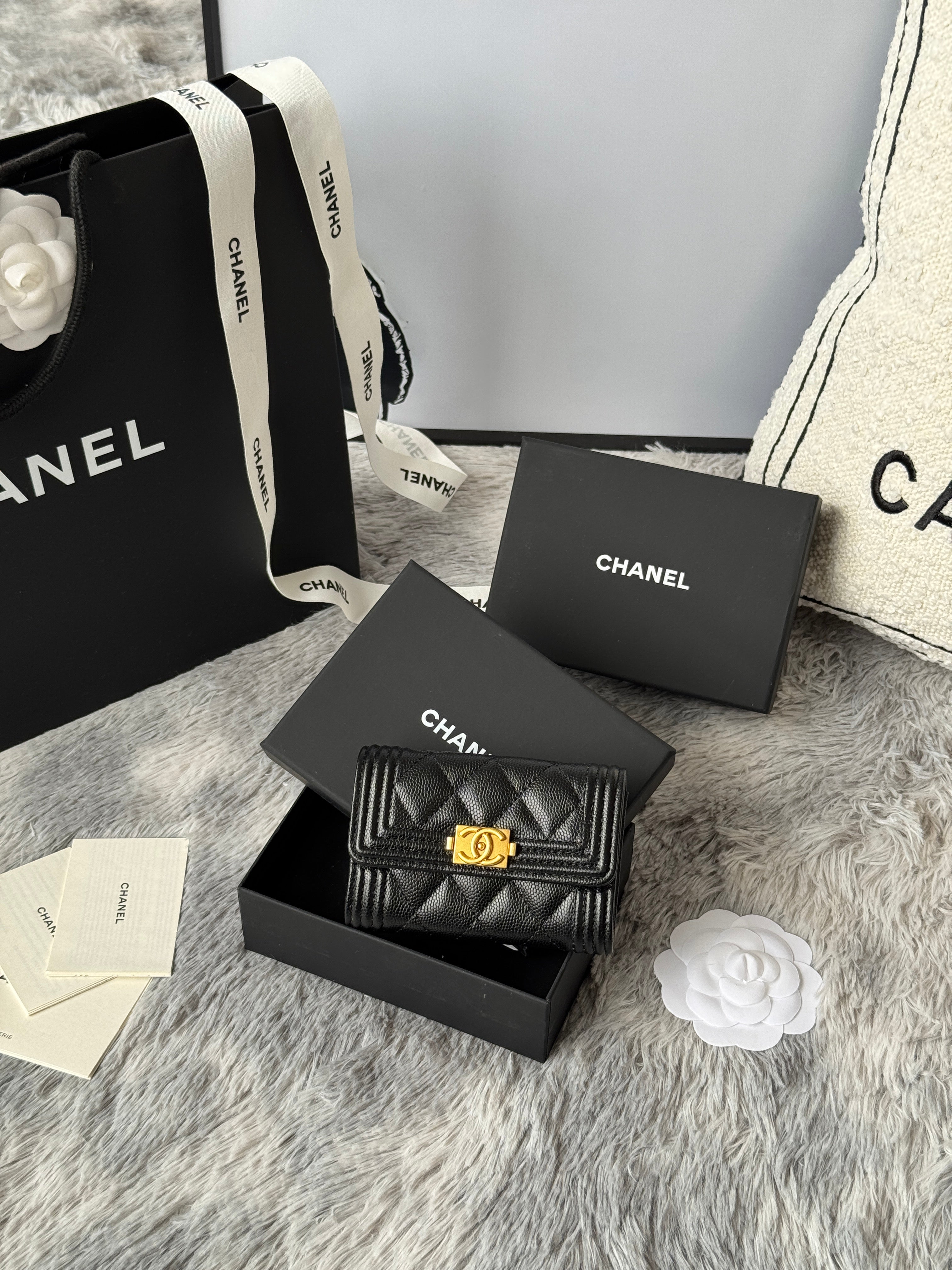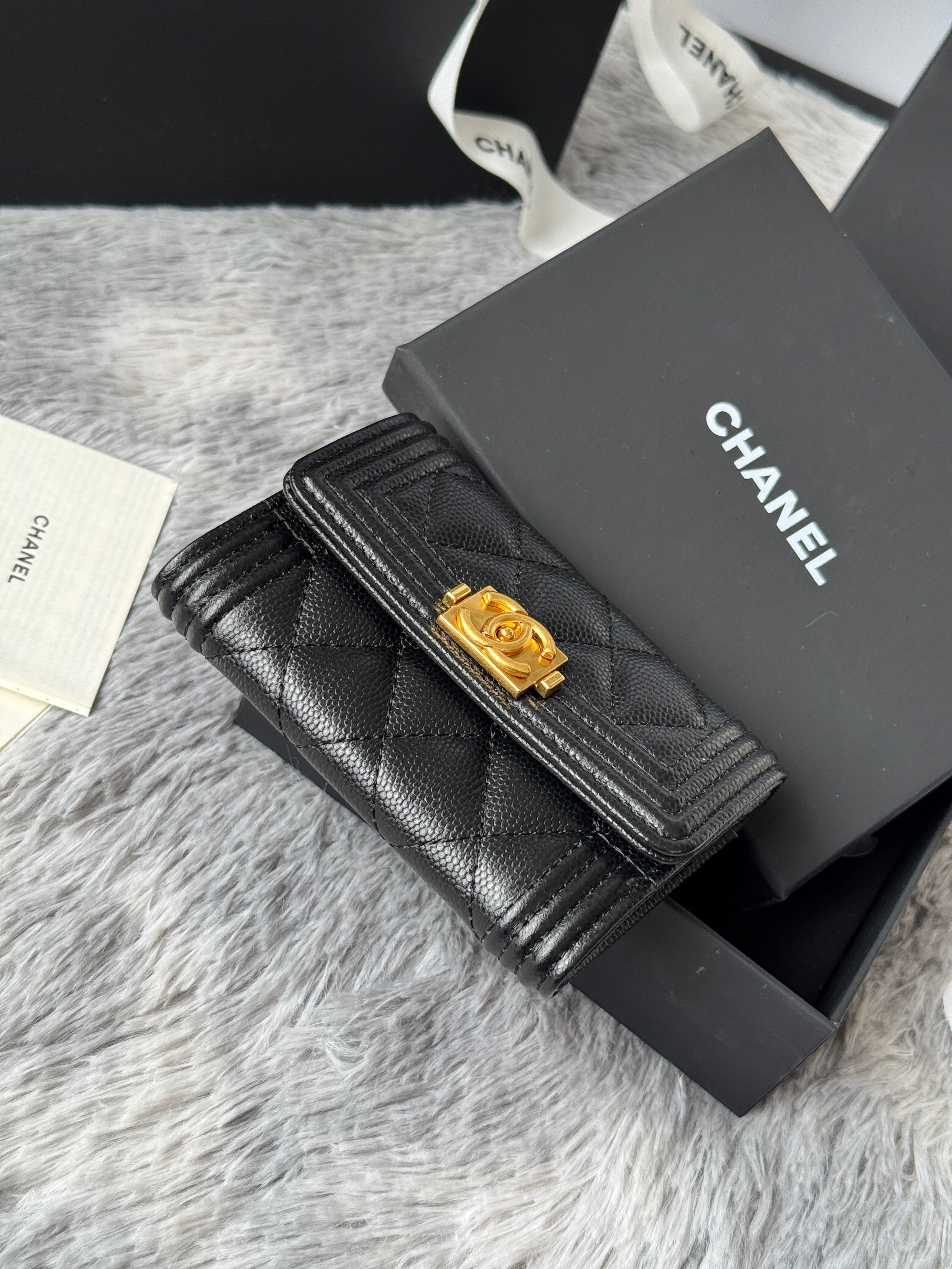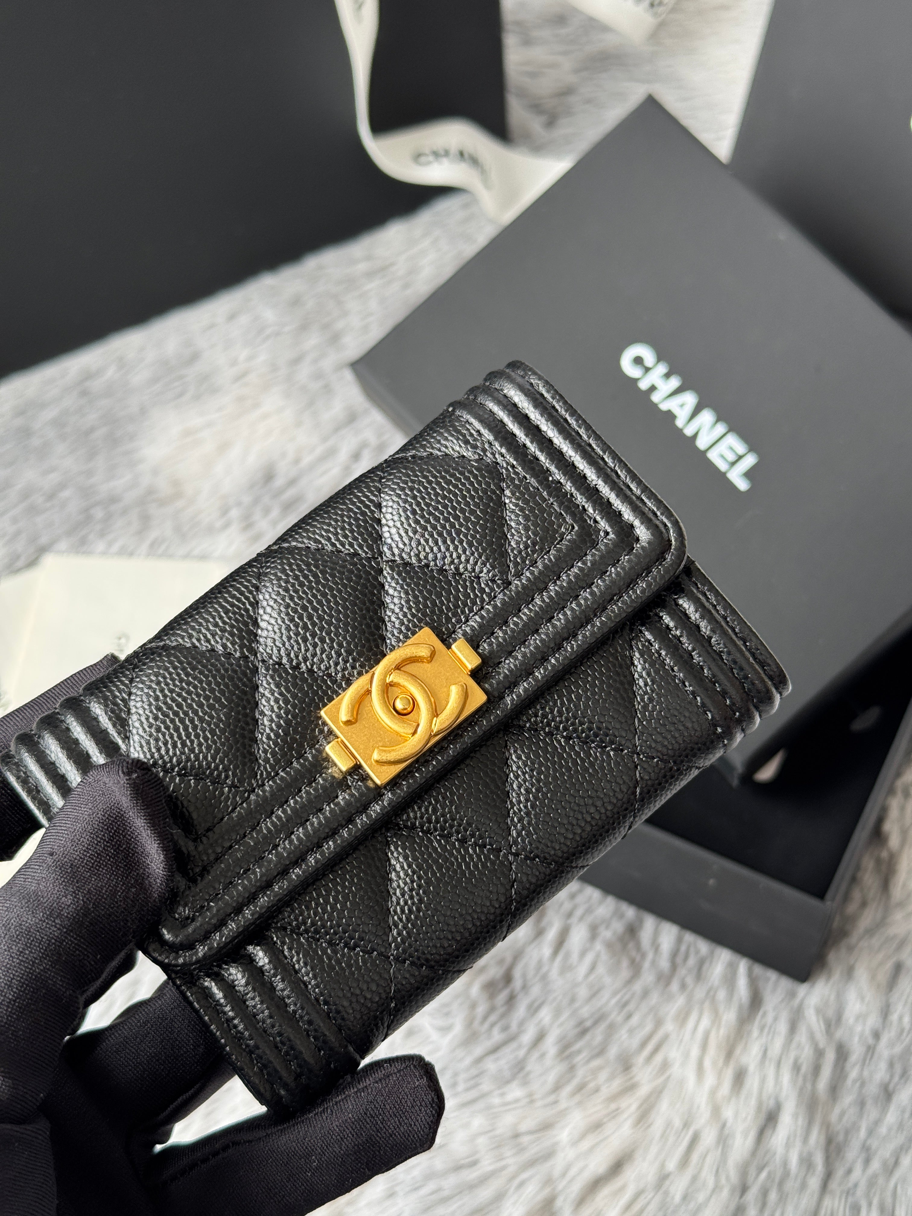 LEBOY WALLET 11 IN BLACK GRAINED CALFSKIN GOLD-TONE HARDWARE