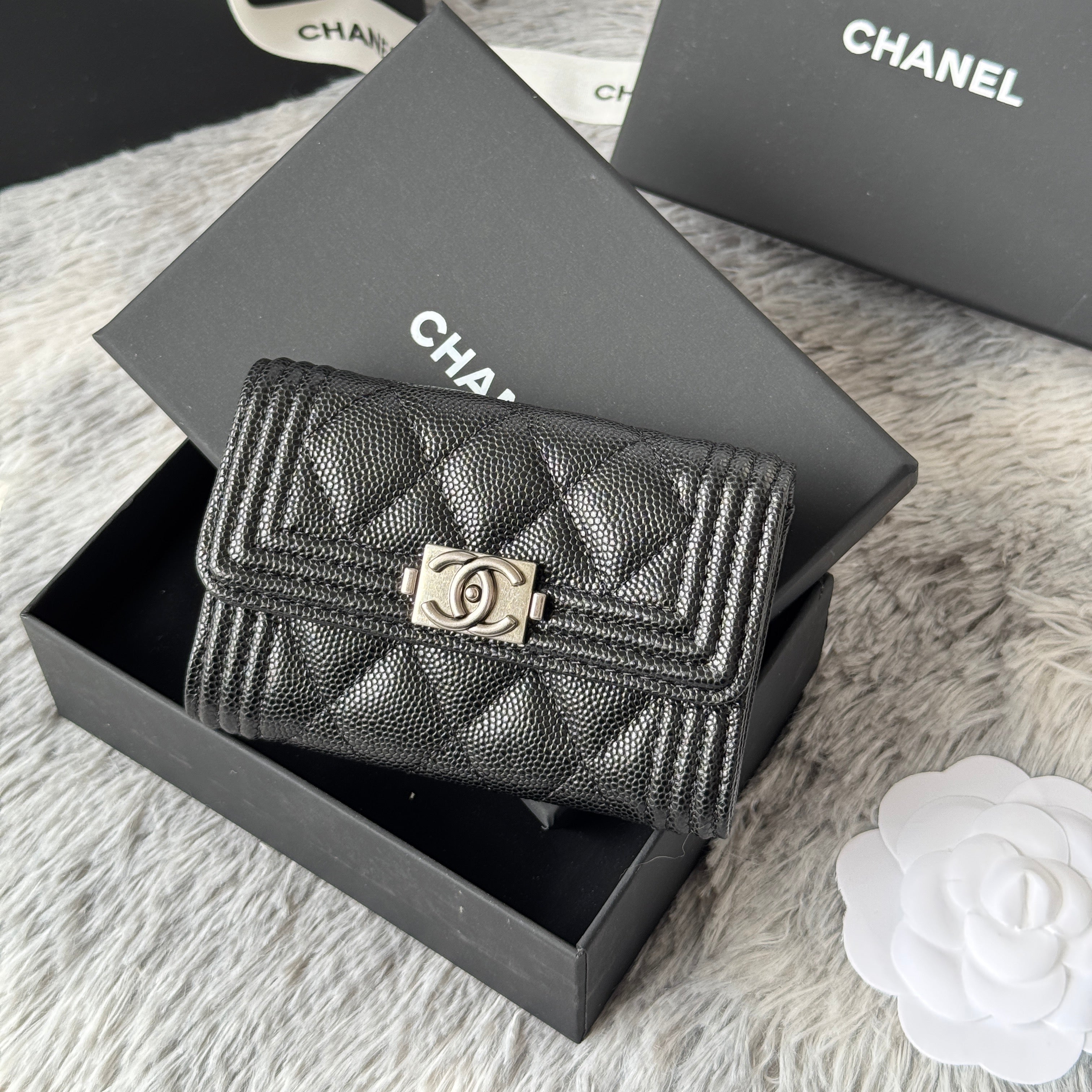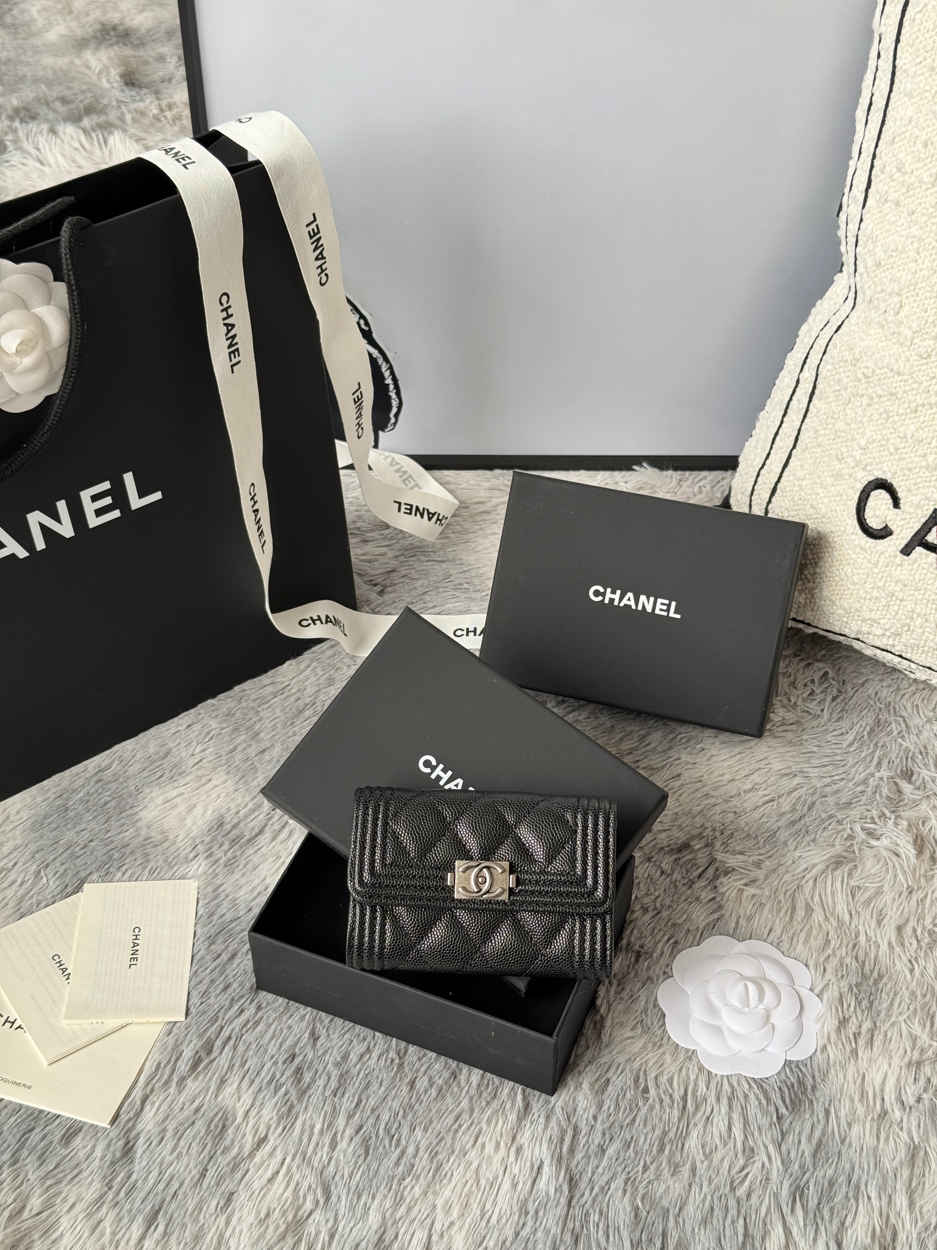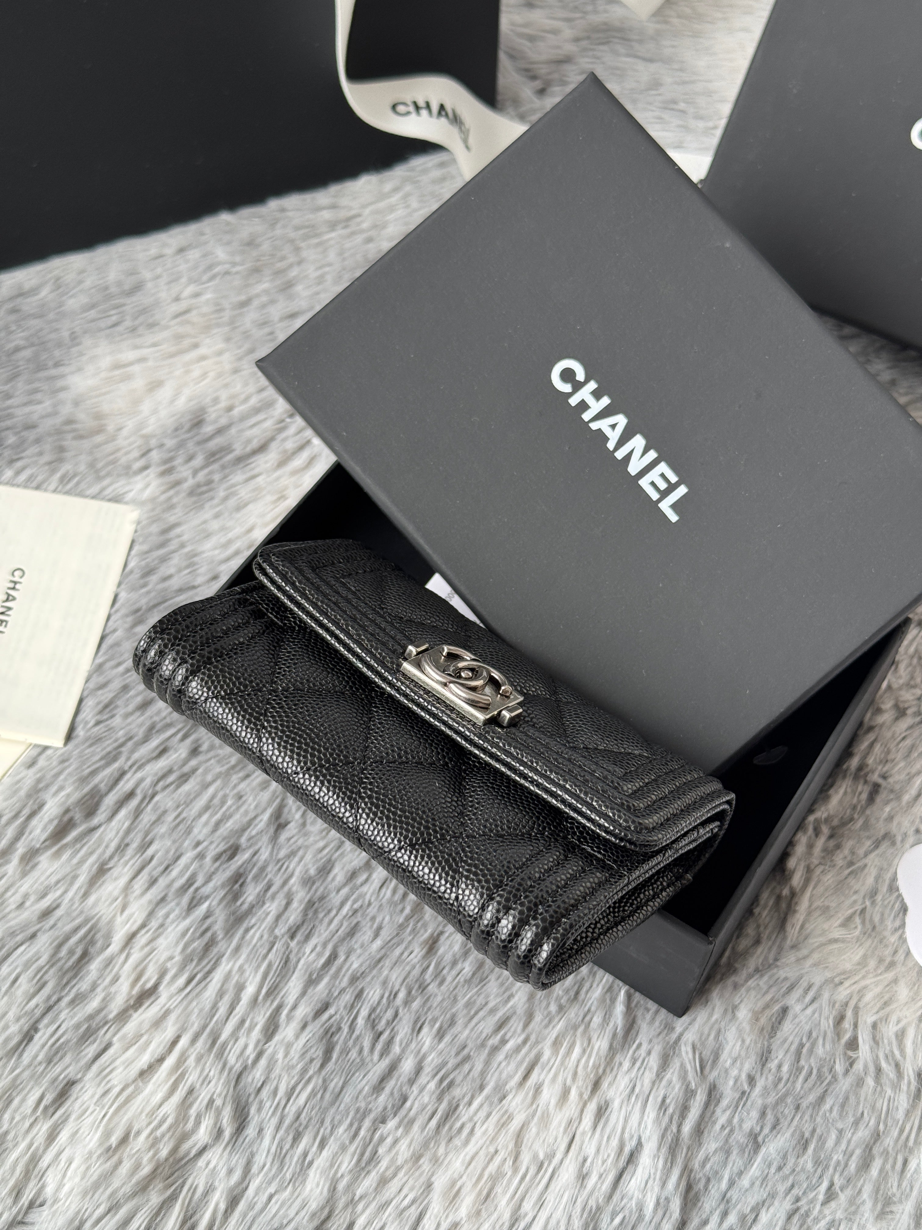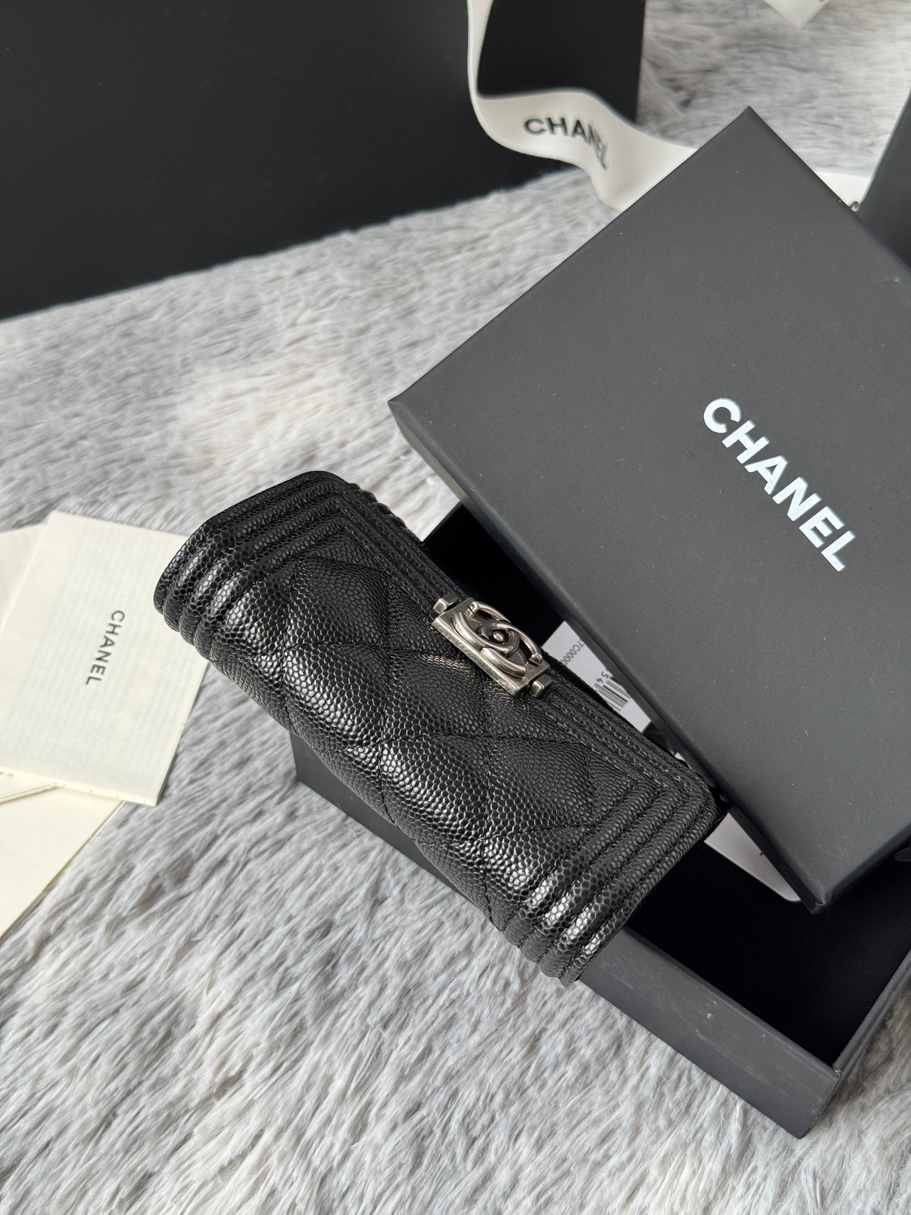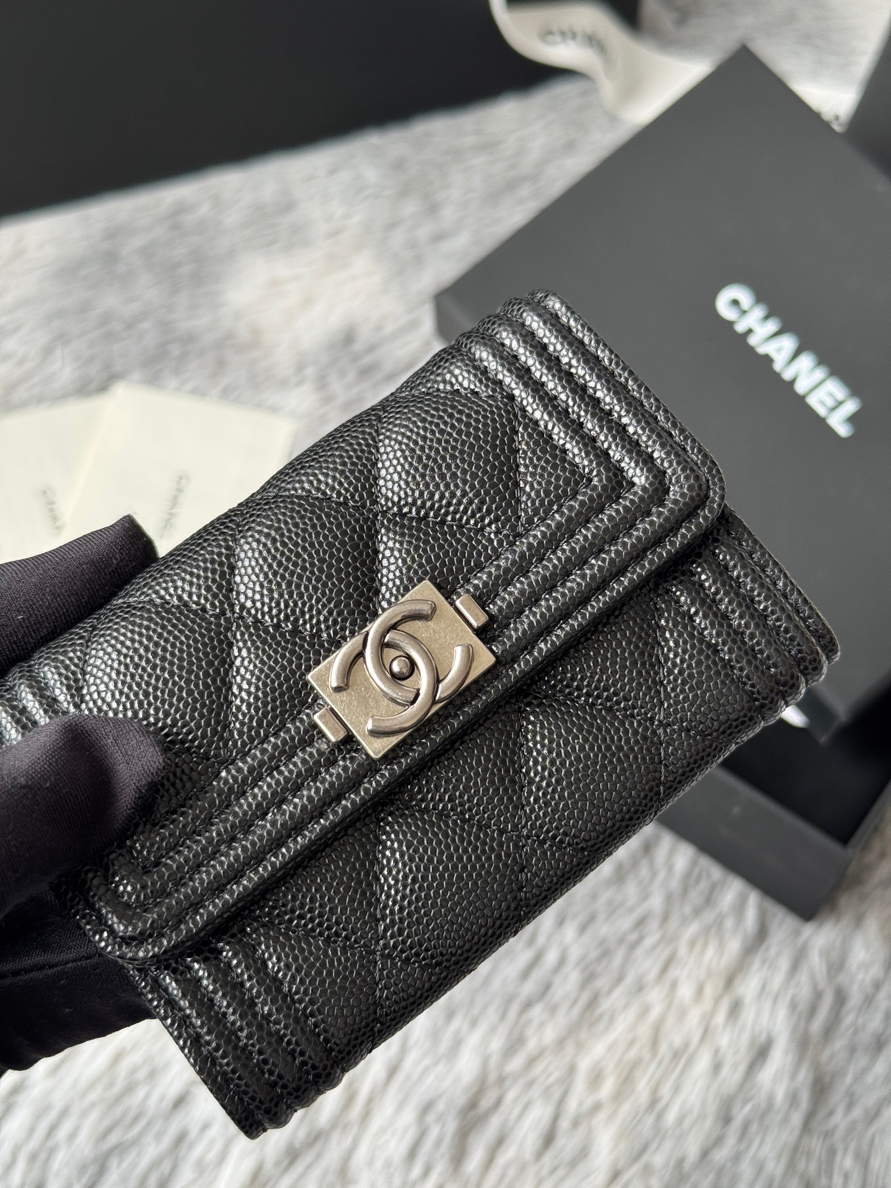 LEBOY WALLET 11 IN BLACK GRAINED CALFSKIN SILVER-TONE HARDWARE