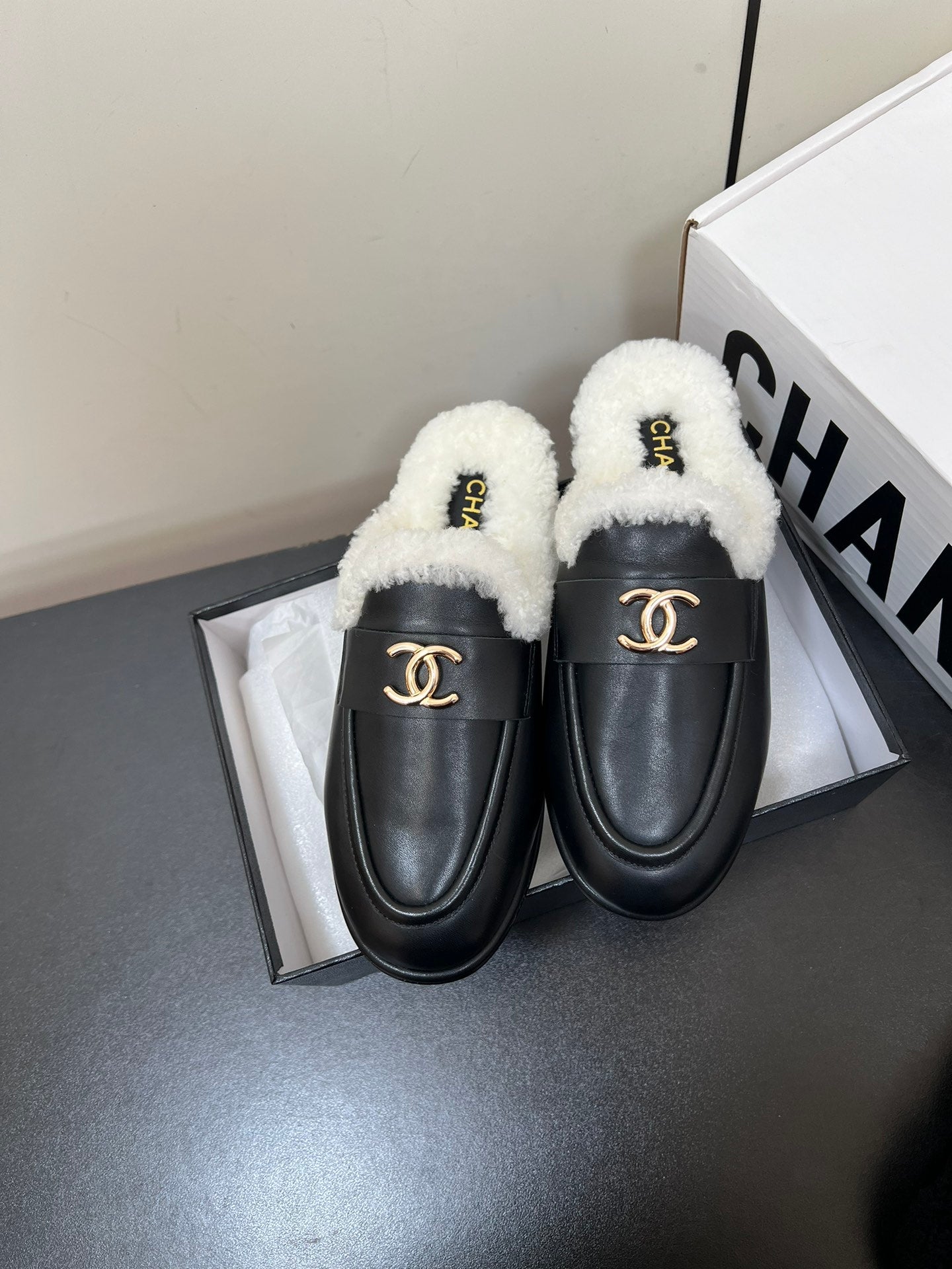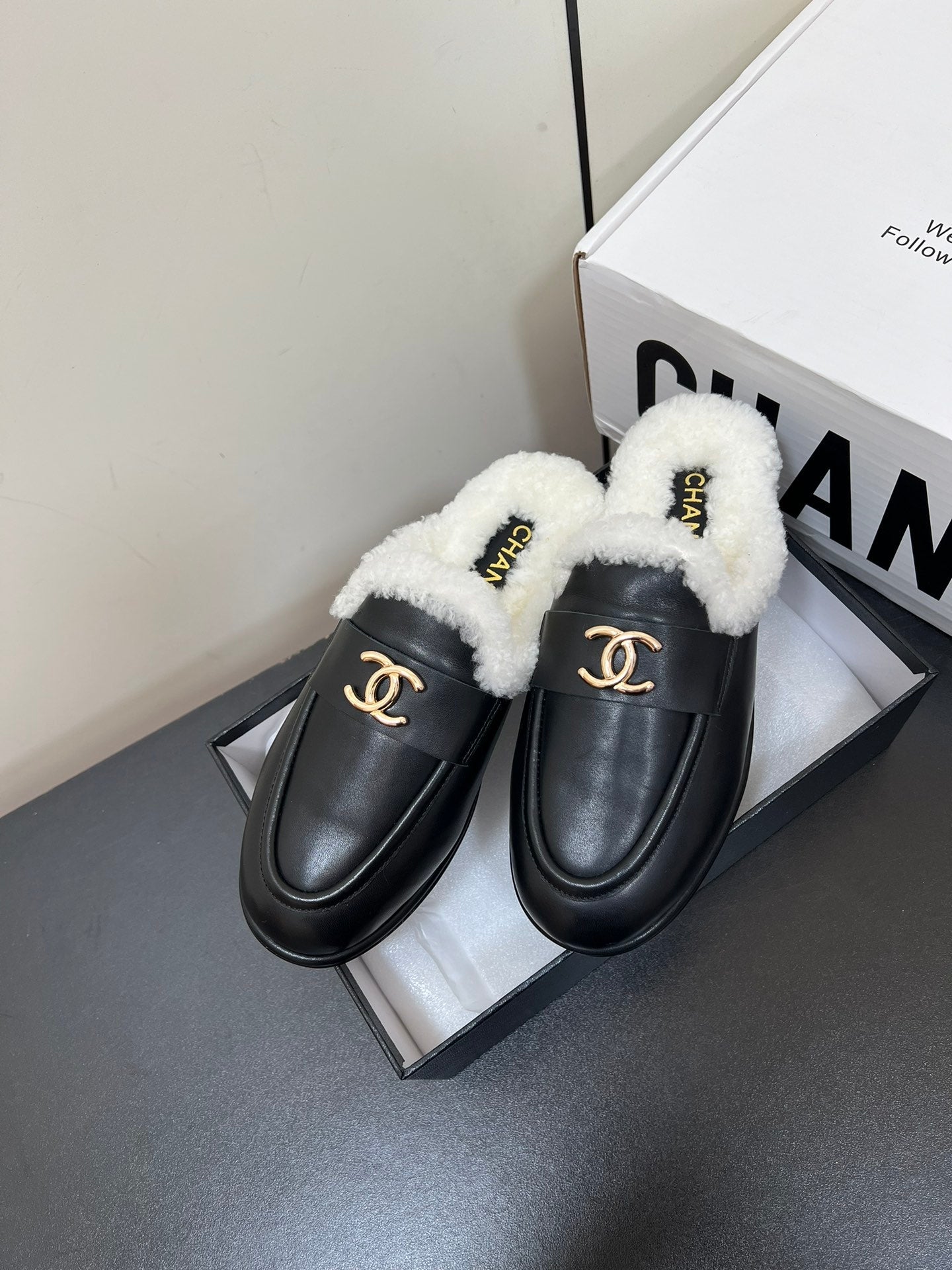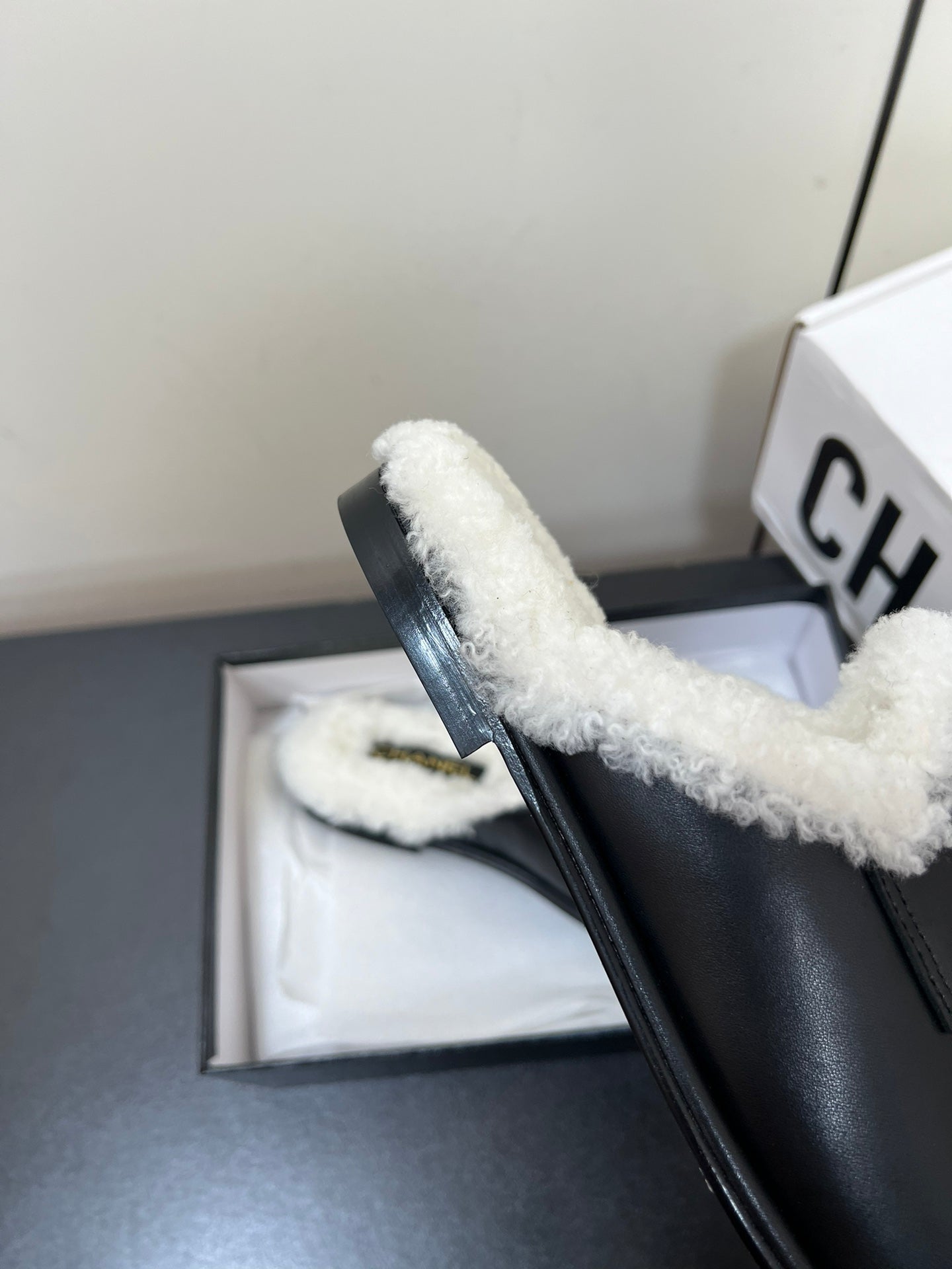 LOAFERS MULE IN BLACK CALFSKIN AND WHITE FLEECE LINING