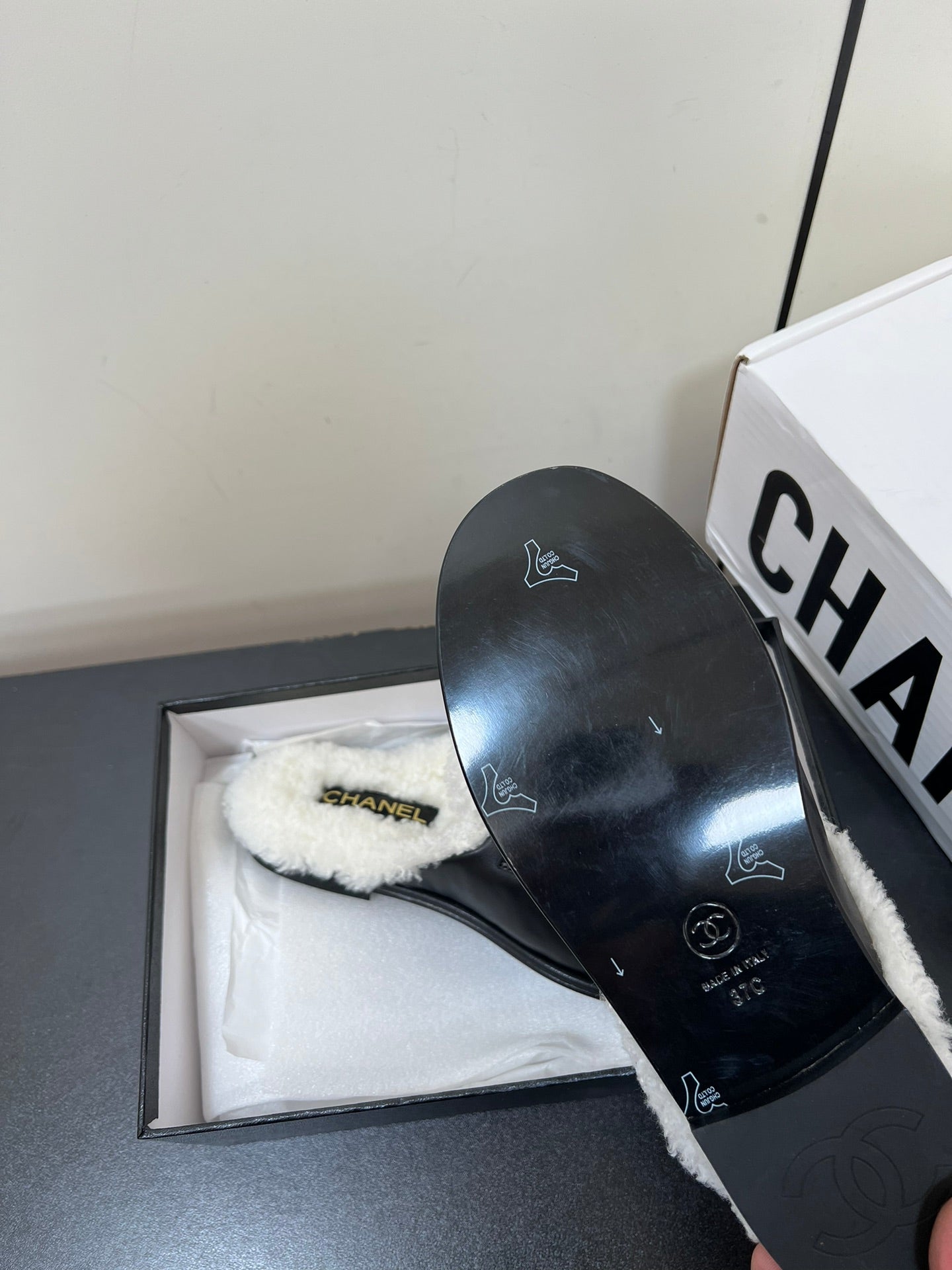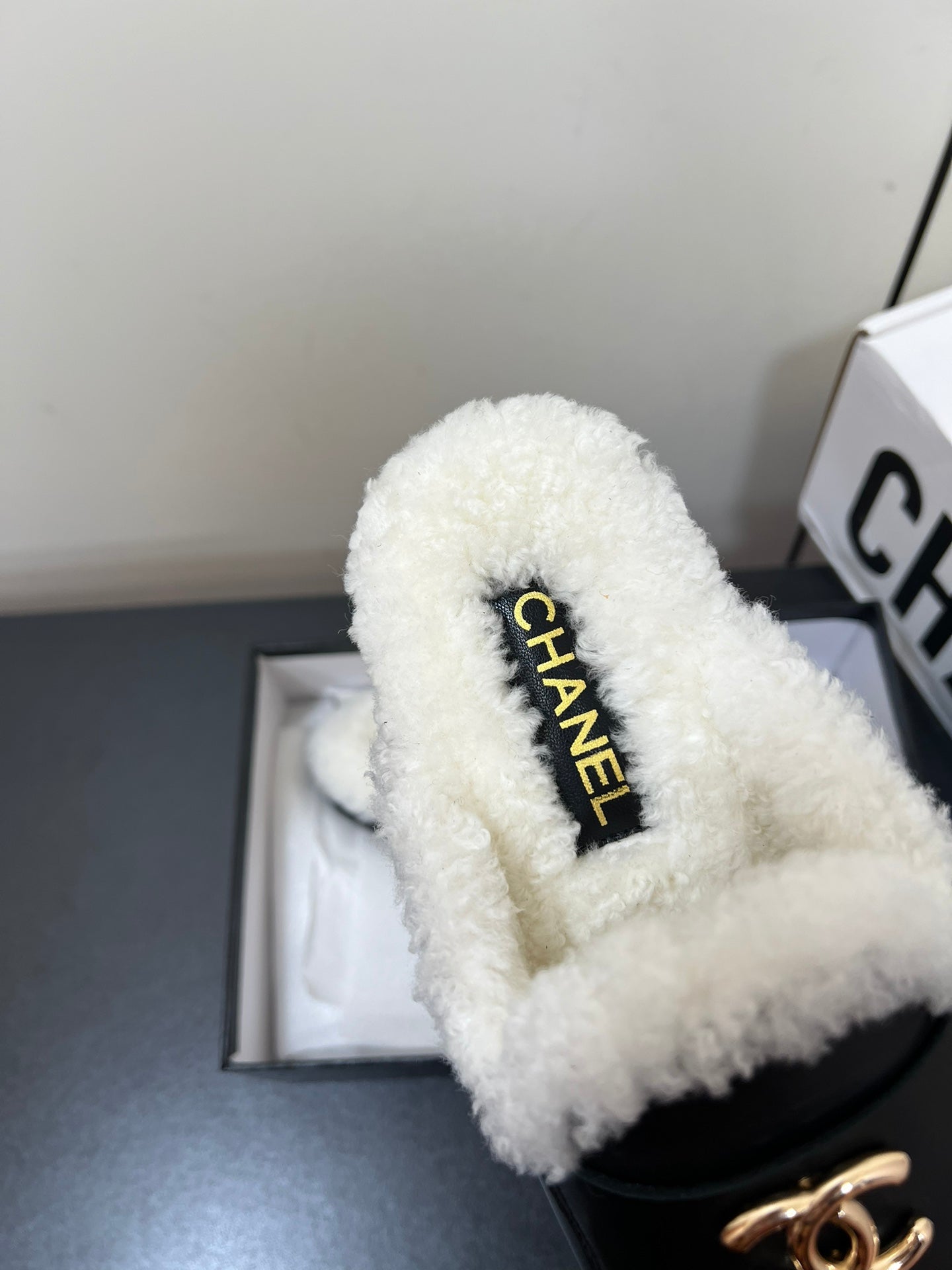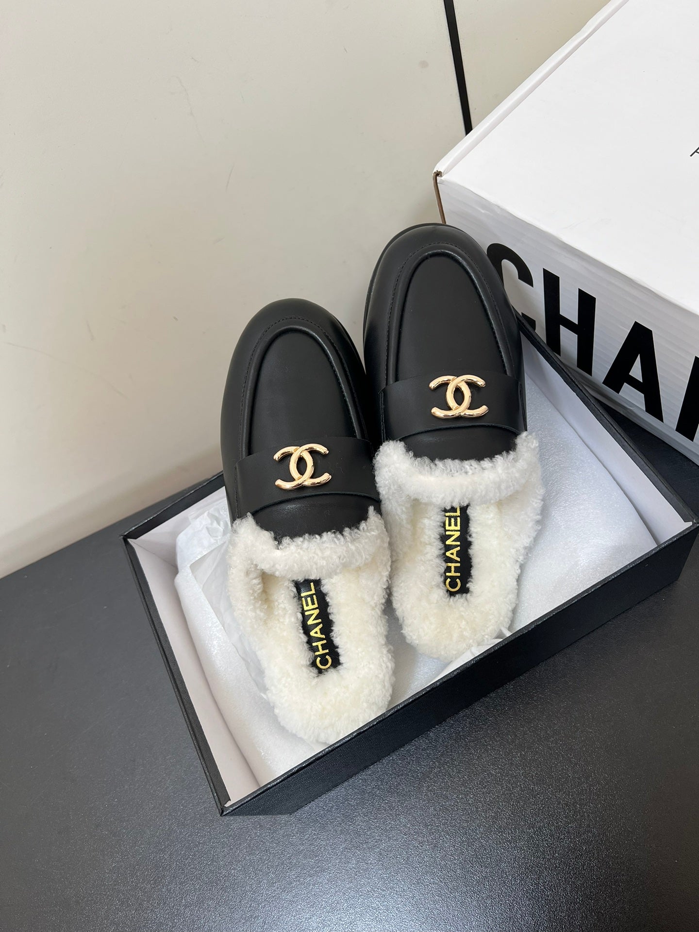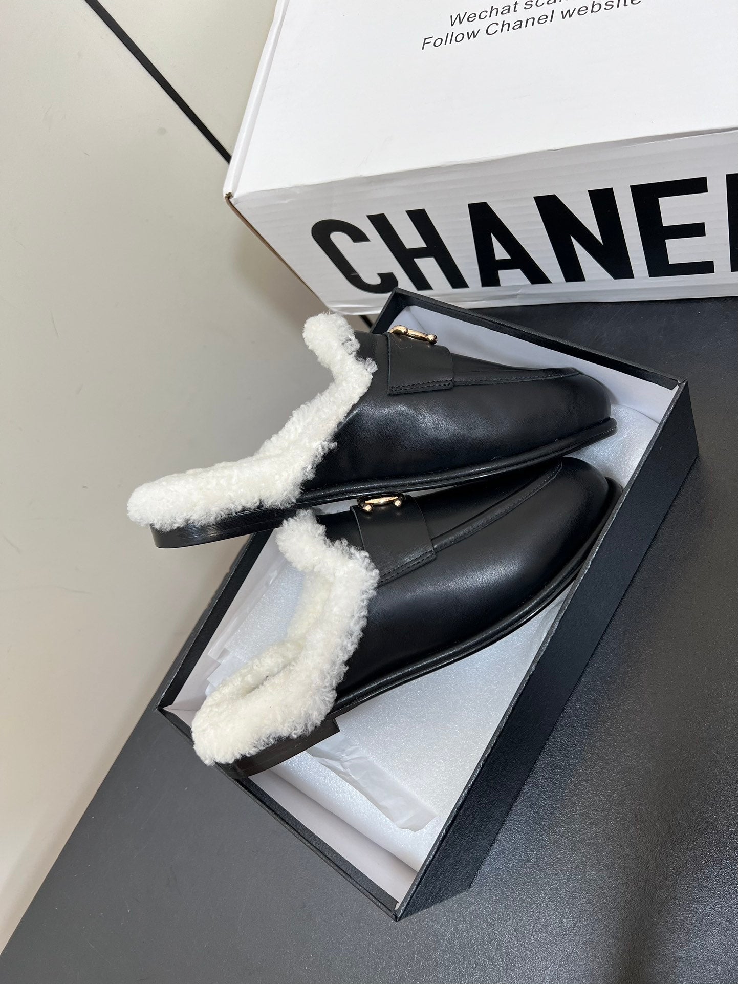 LOAFERS MULE IN BLACK CALFSKIN AND WHITE FLEECE LINING