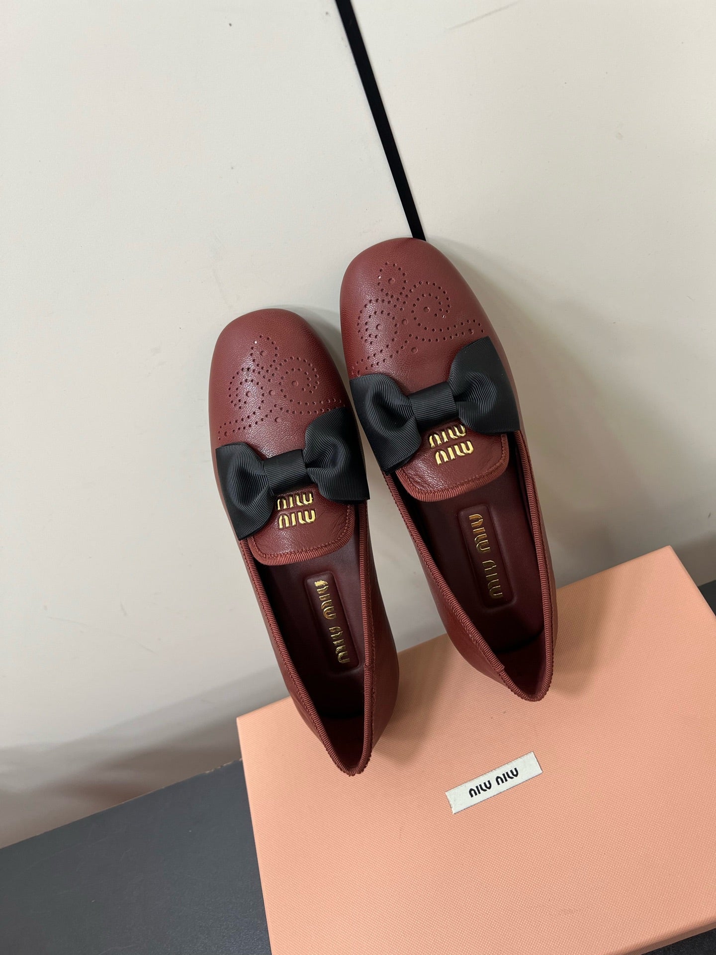 LOAFERS WITH BOW IN RED BROWN SHEEPSKIN