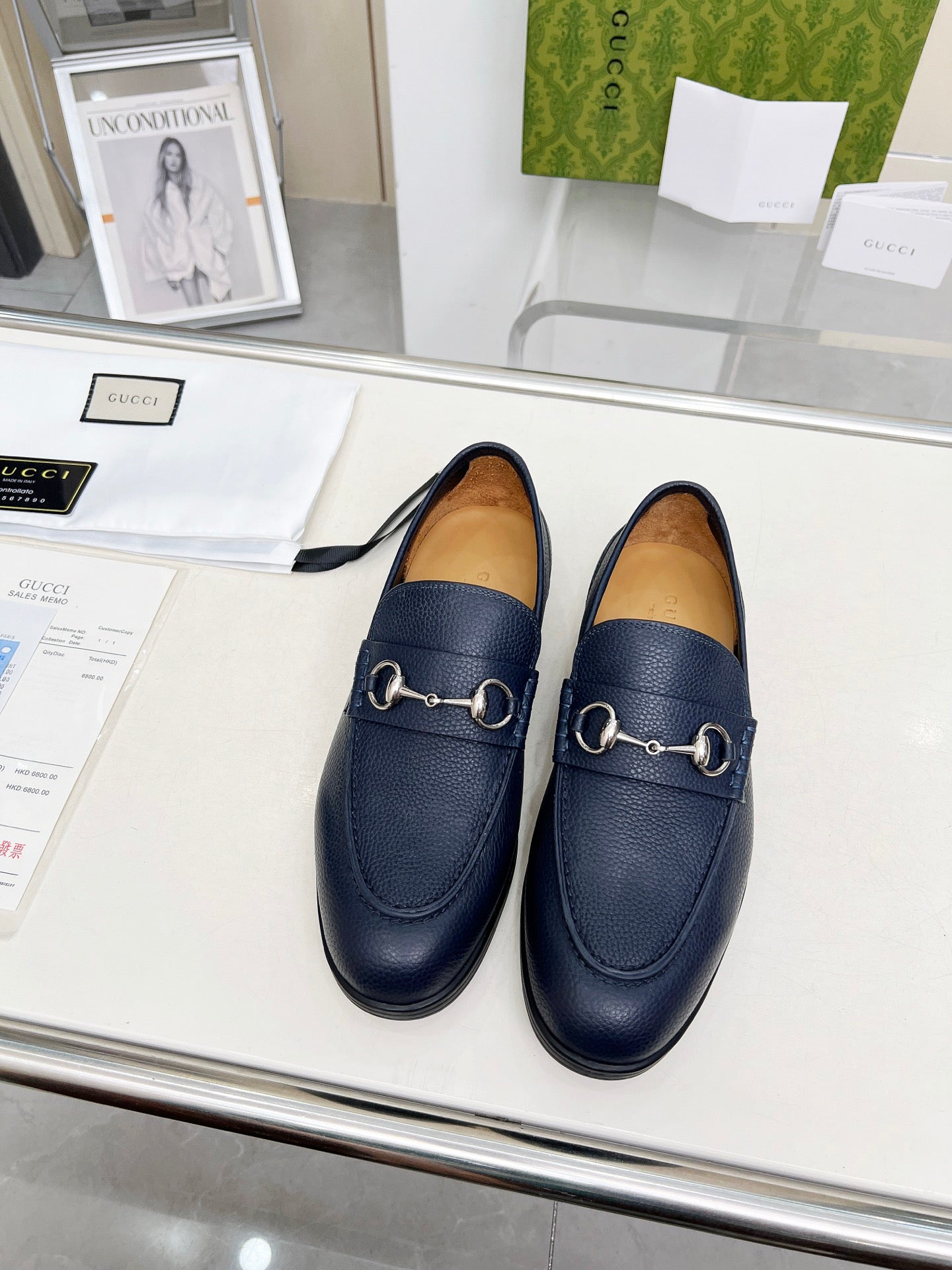 LOAFERS WITH SILVER HARDWARE IN NAVY BLUE GRAINED CALFSKIN