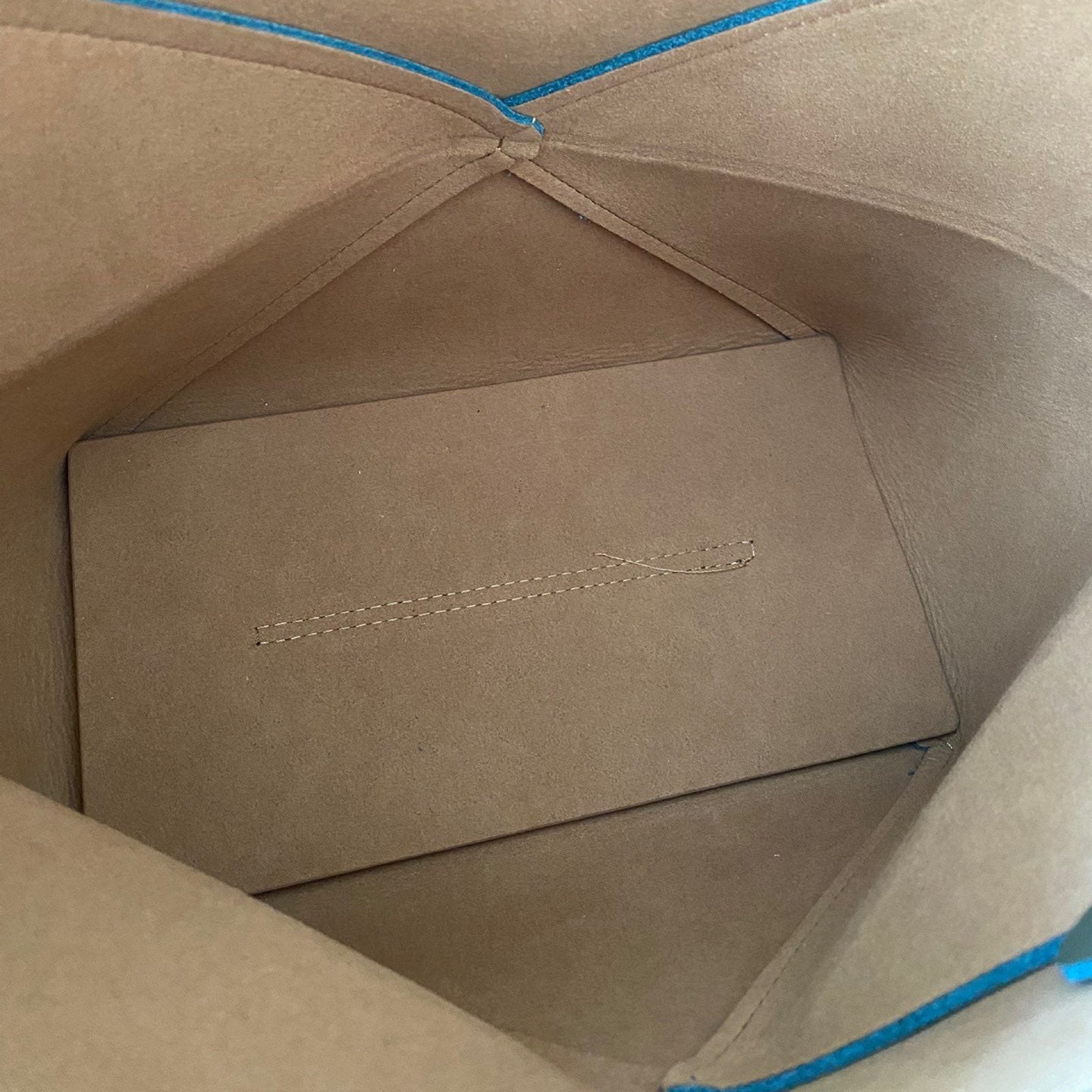 LOE 32 MEDIUM PUZZLE FOLD TOTE IN DARK KHAKI GREEN SHINY CALFSKIN
