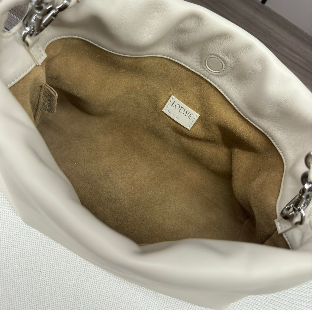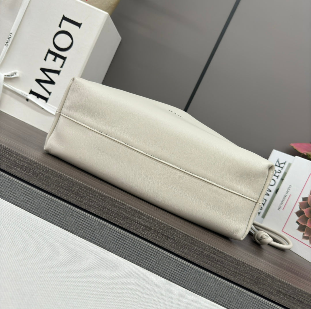 LOE MEDIUM 30 FLAMENCO PURSE BUCKET IN WHITE LAMBSKIN