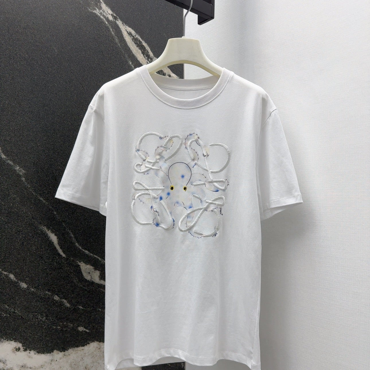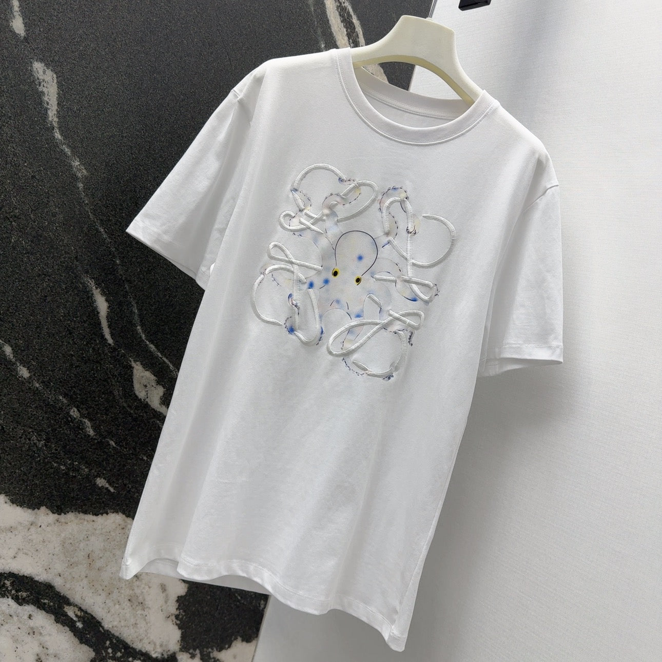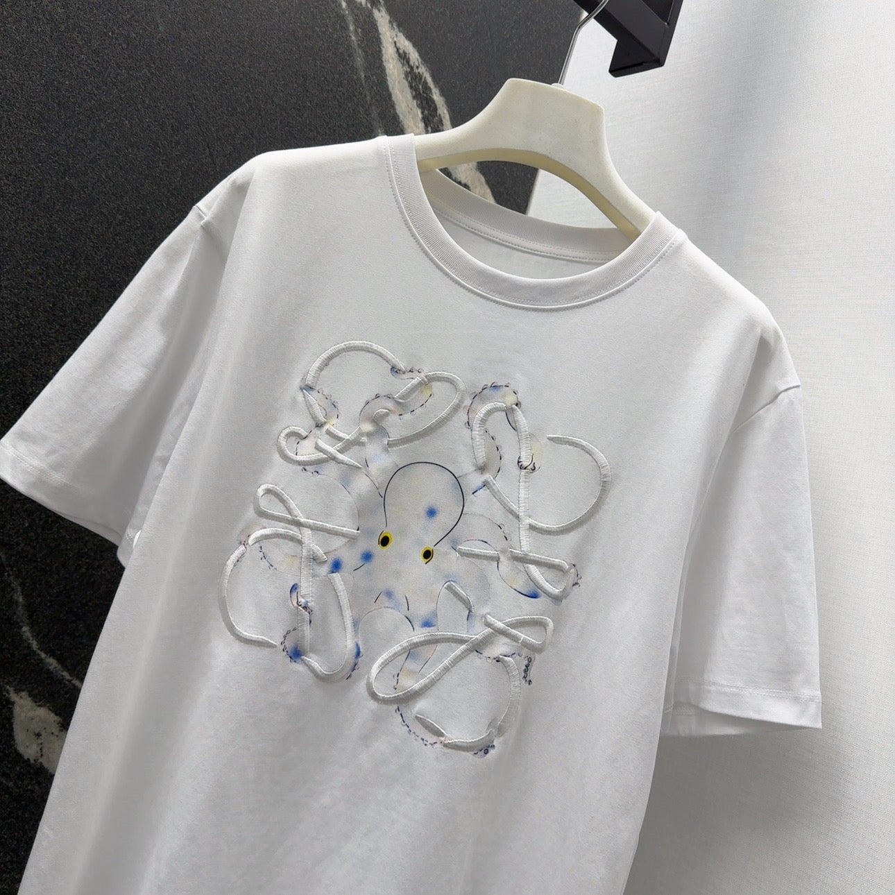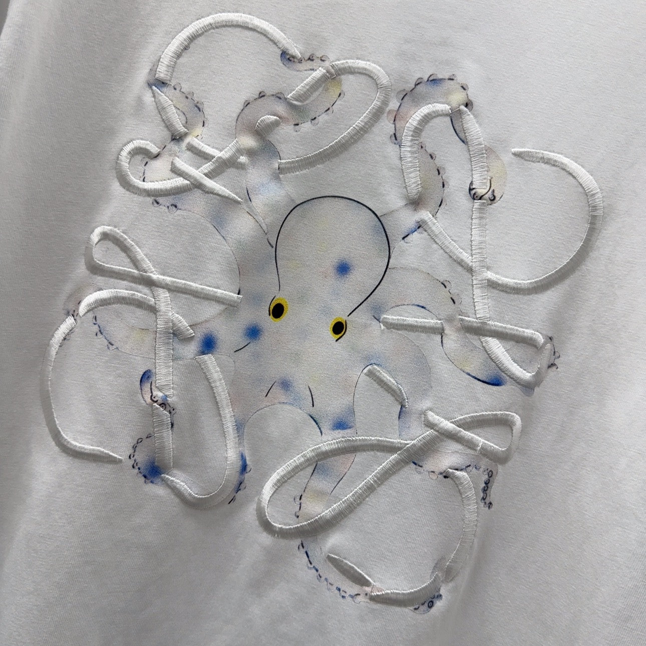 Loewe Octopus Print Embroidered Short-sleeved T-shirt White Cotton