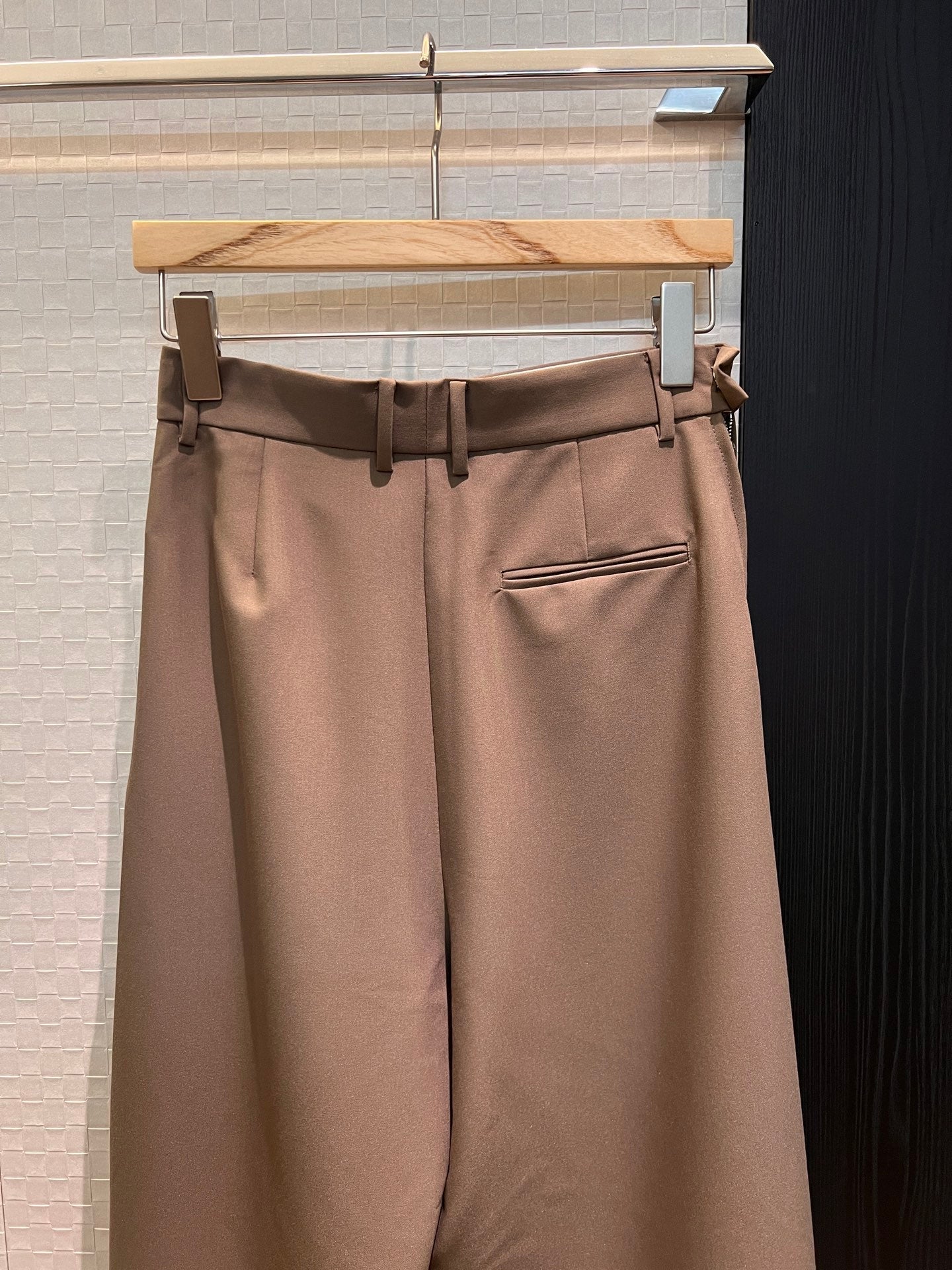 Loewe Pleated Wide Leg Pants Brown Cotton
