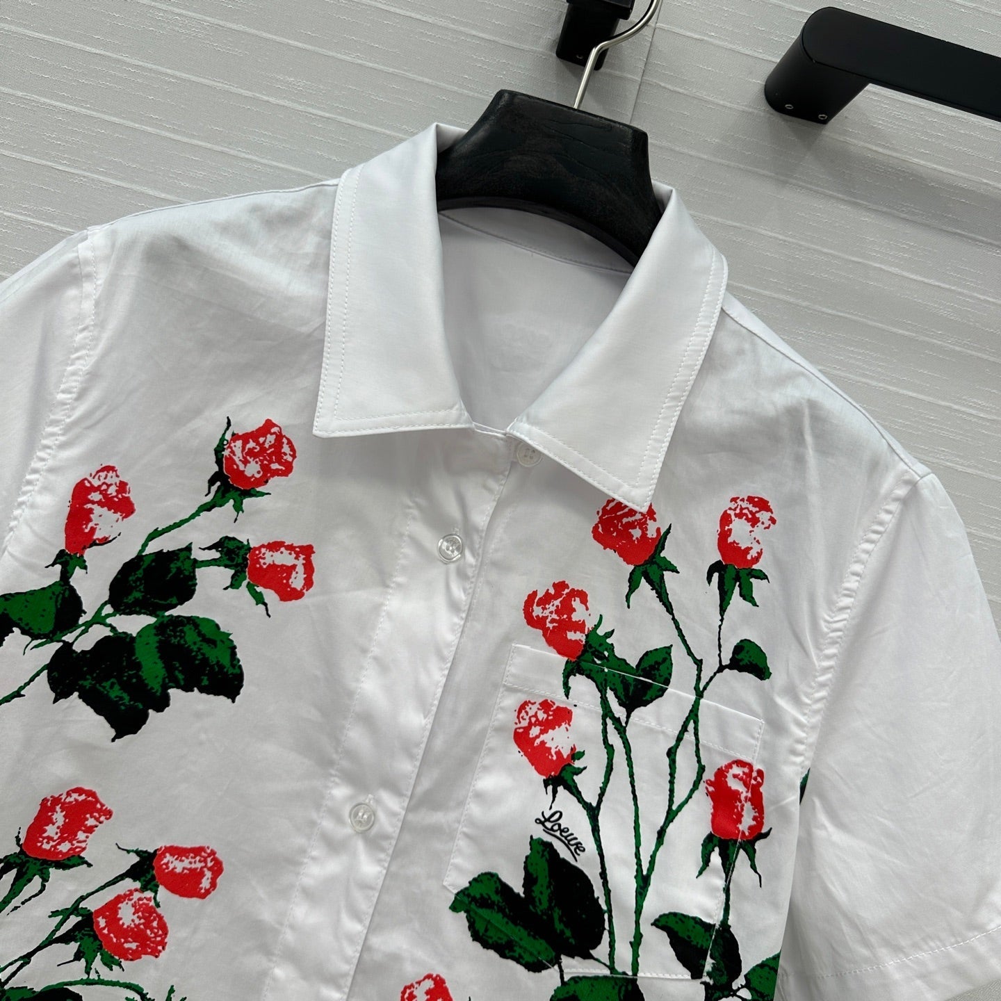 Loewe Rose Print Short-sleeved Shirt White Cotton