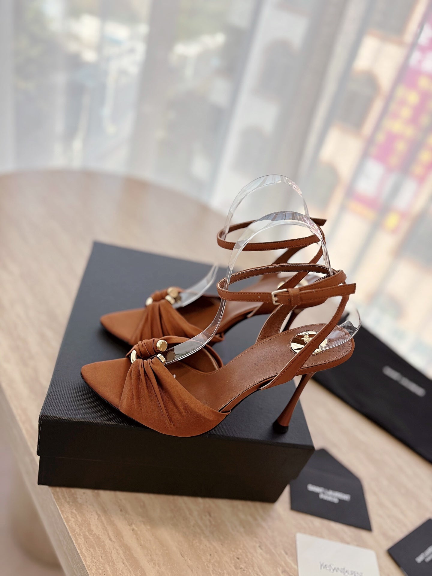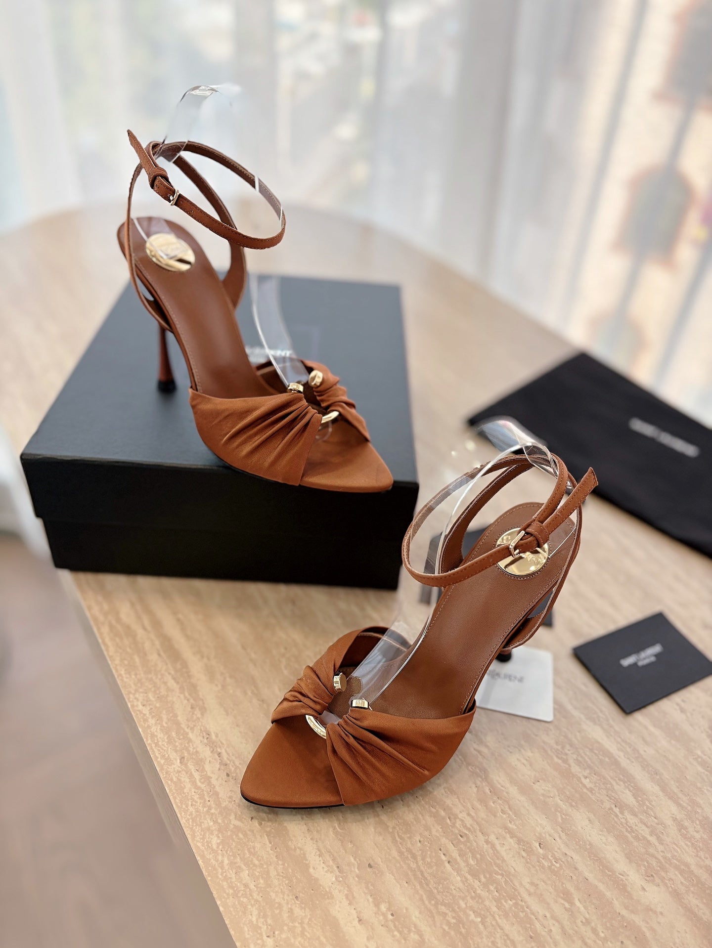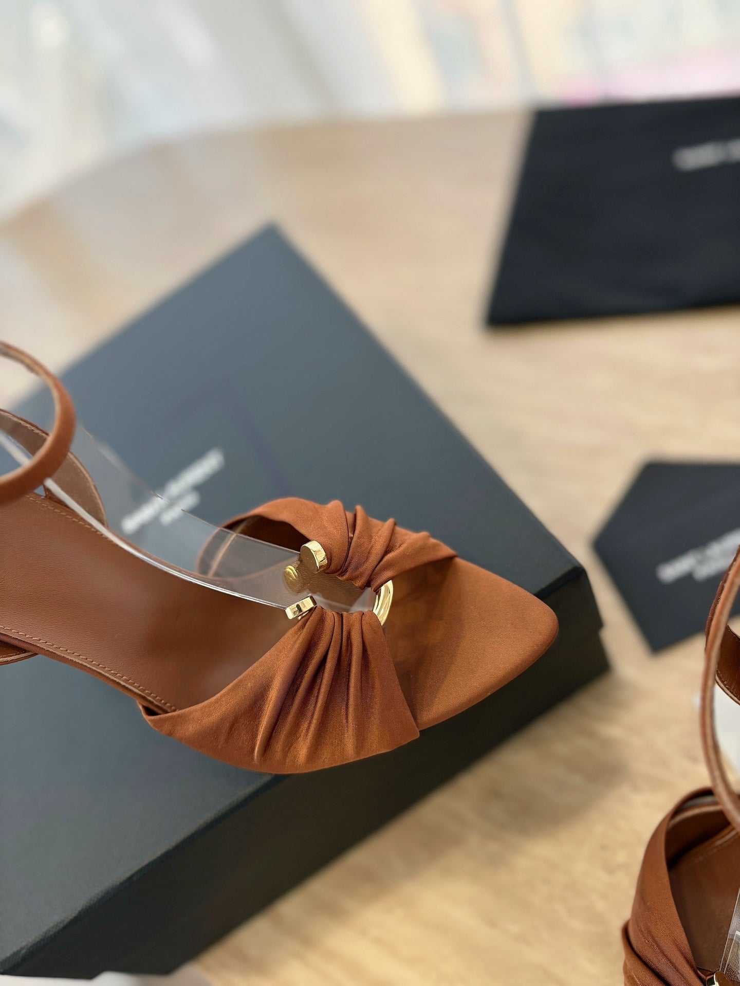 LOLA SANDAL 10 CM IN BRONZE BROWN VISCOSE AND SILK