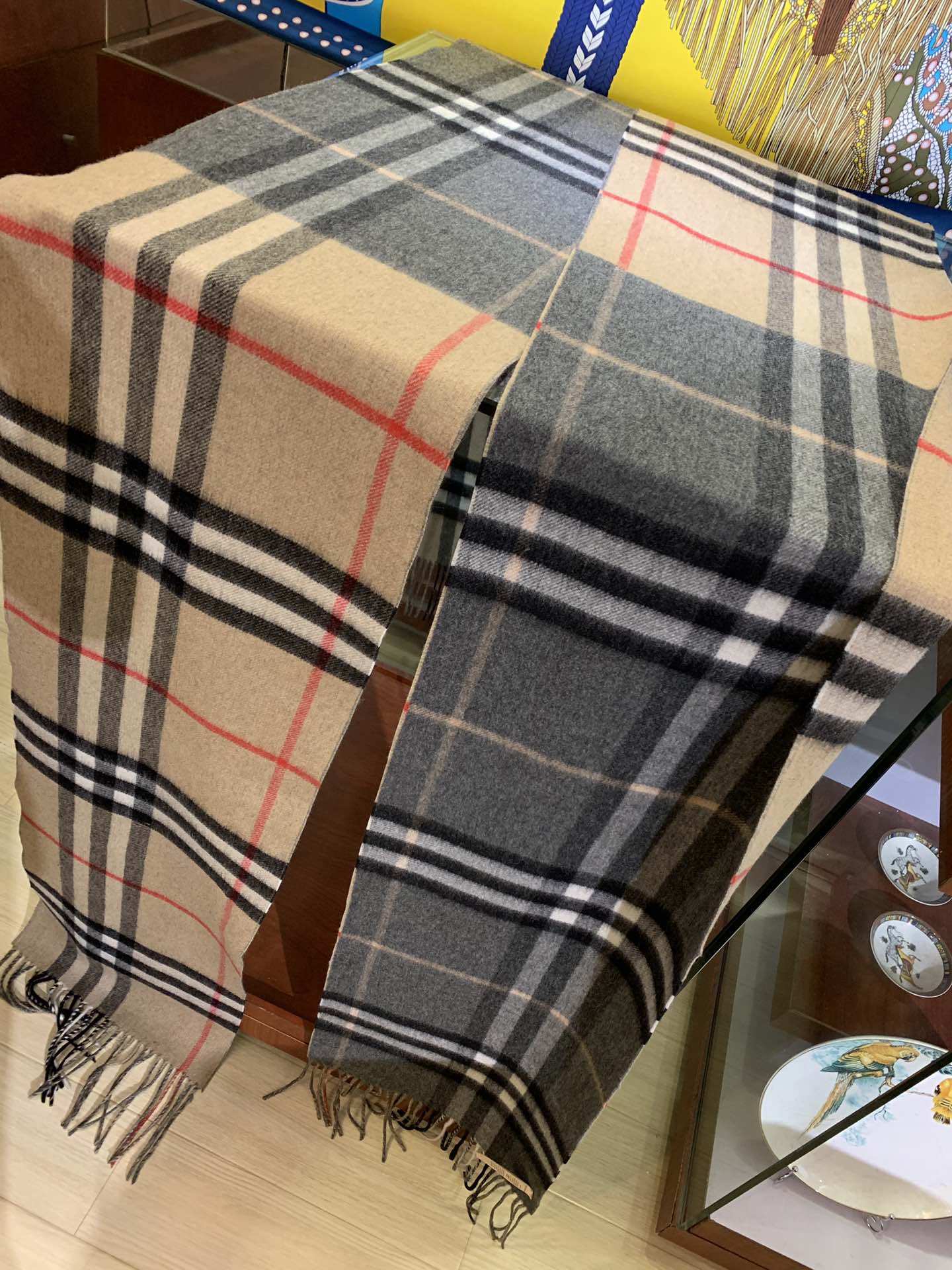 LONG SCARF 250 CM IN BLACK AND BEIGE CASHMERE 410474