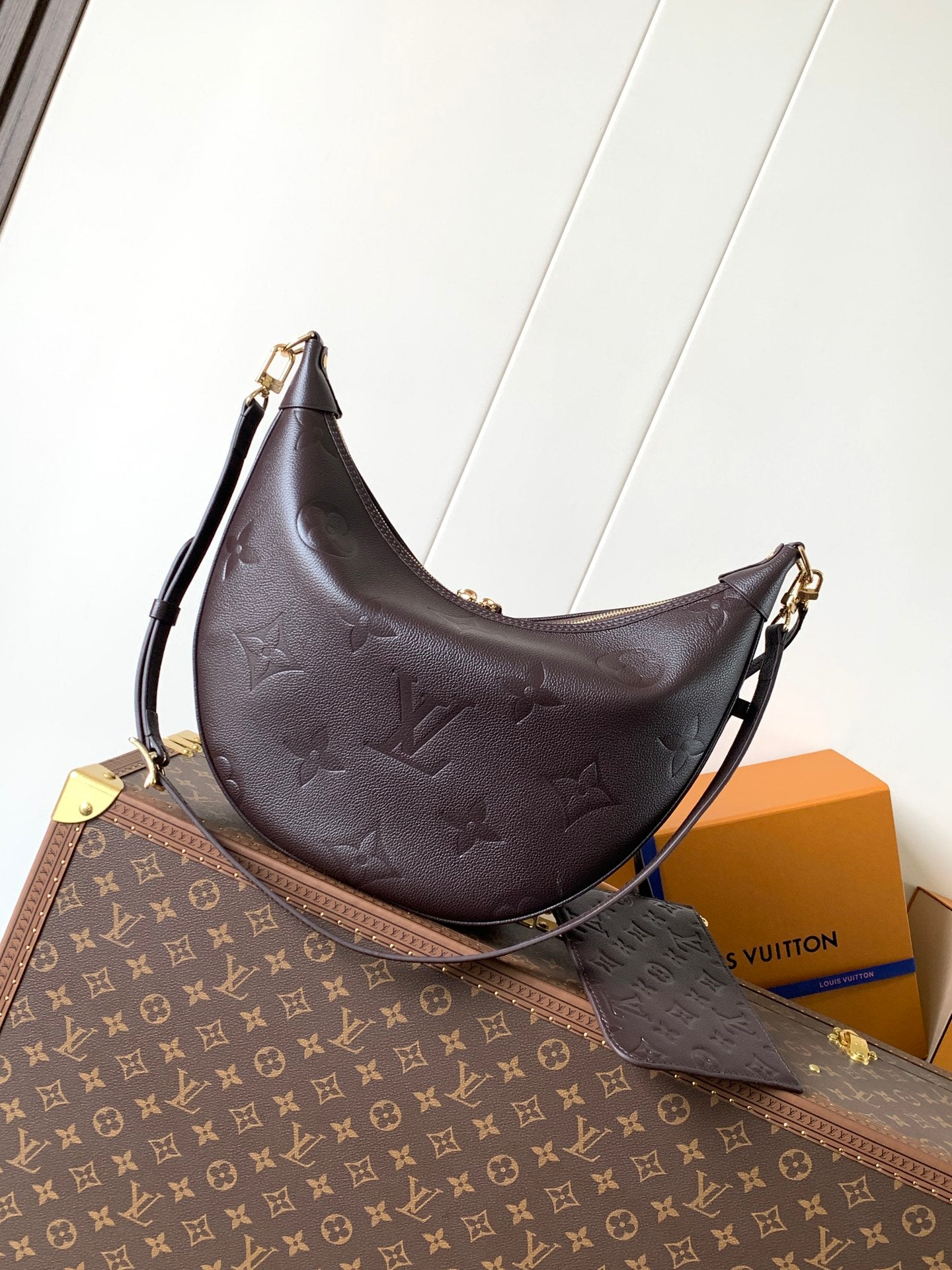 LOOP HOBO 38 IN DARK BROWN MONOGRAM CALFSKIN EMBOSSED LOGO