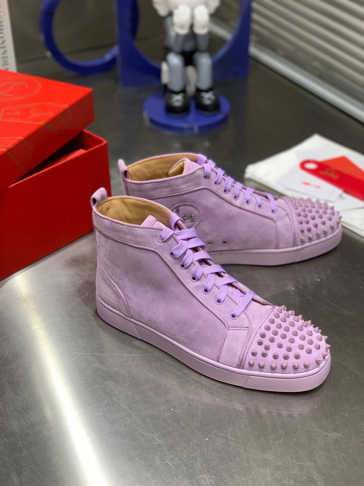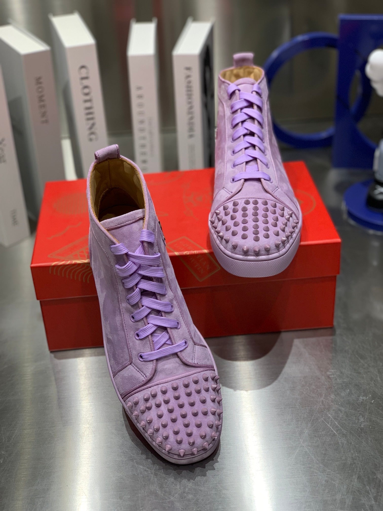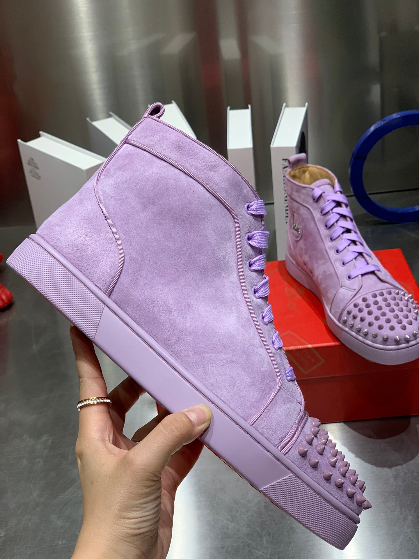 LOU SPIKES STUDDED HIGH-TOP SNEAKERS IN BABY PURPLE SUEDE