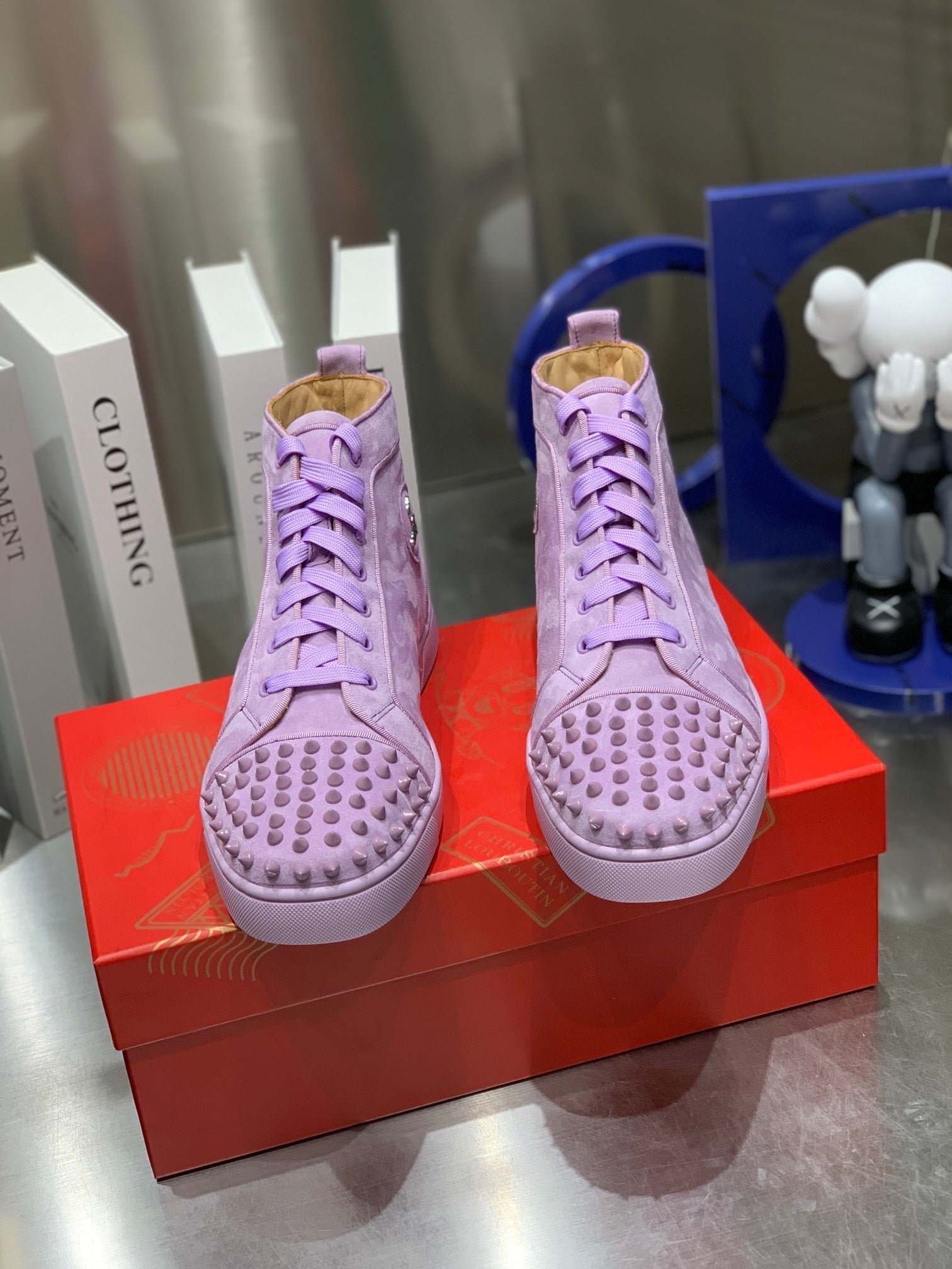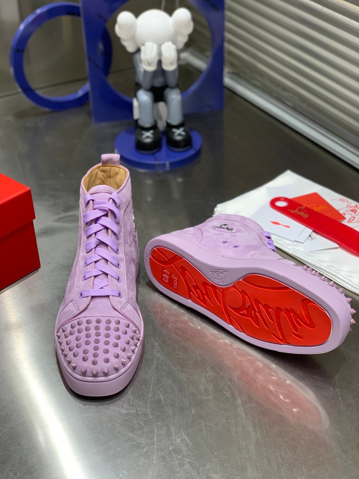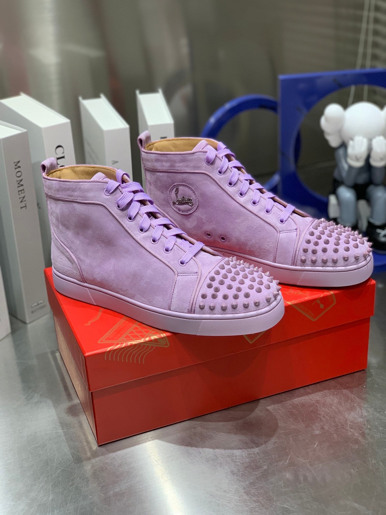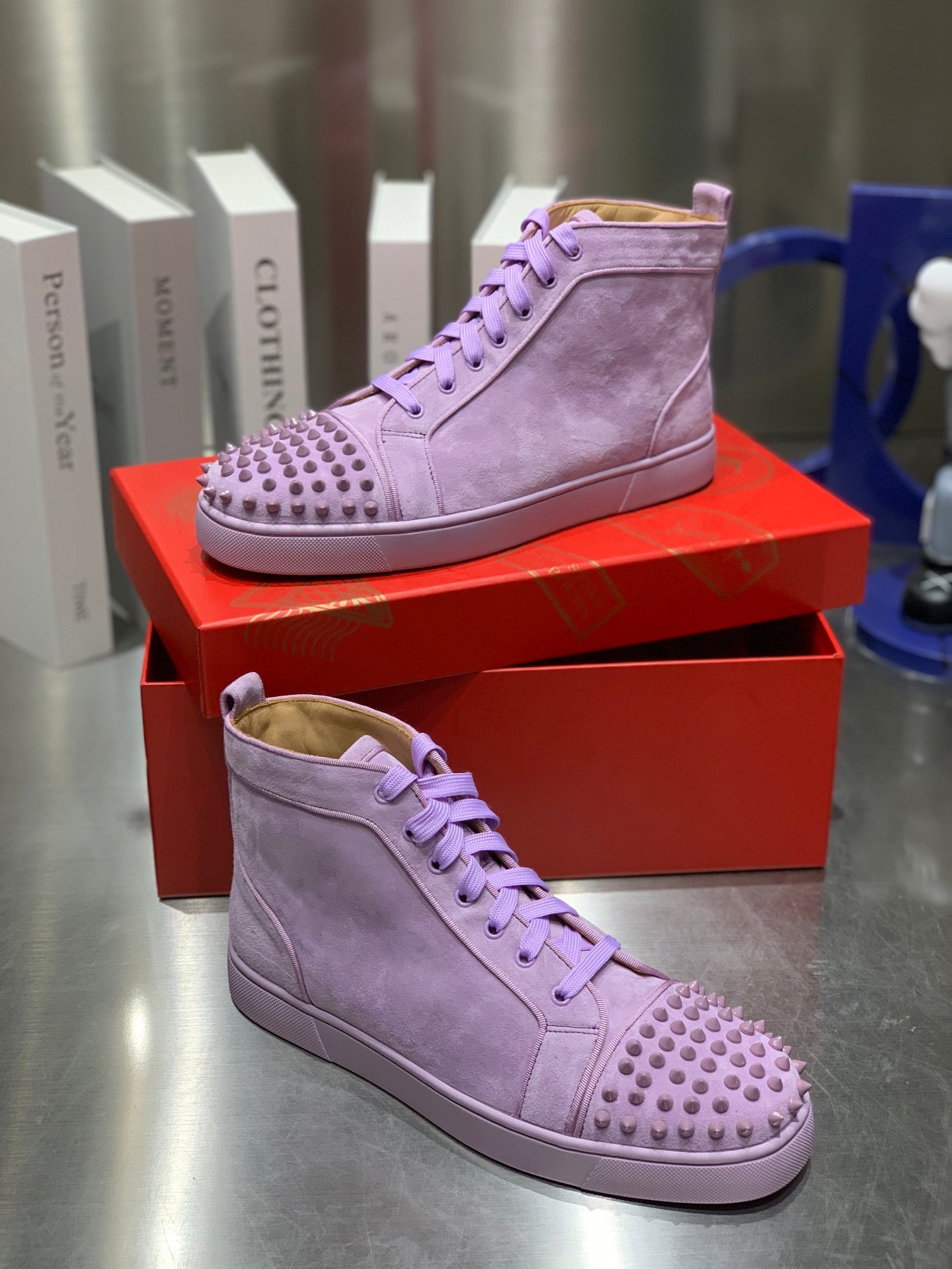 LOU SPIKES STUDDED HIGH-TOP SNEAKERS IN BABY PURPLE SUEDE