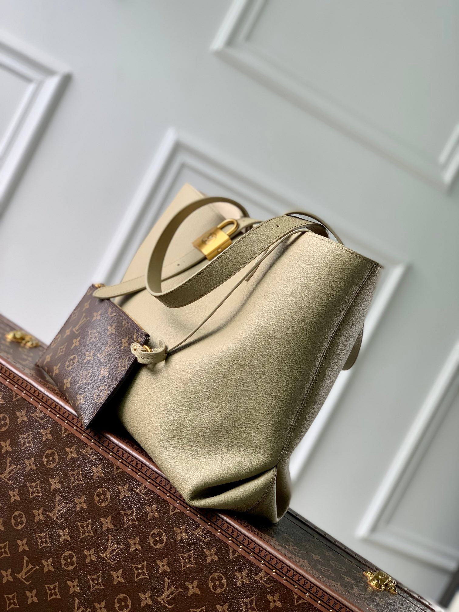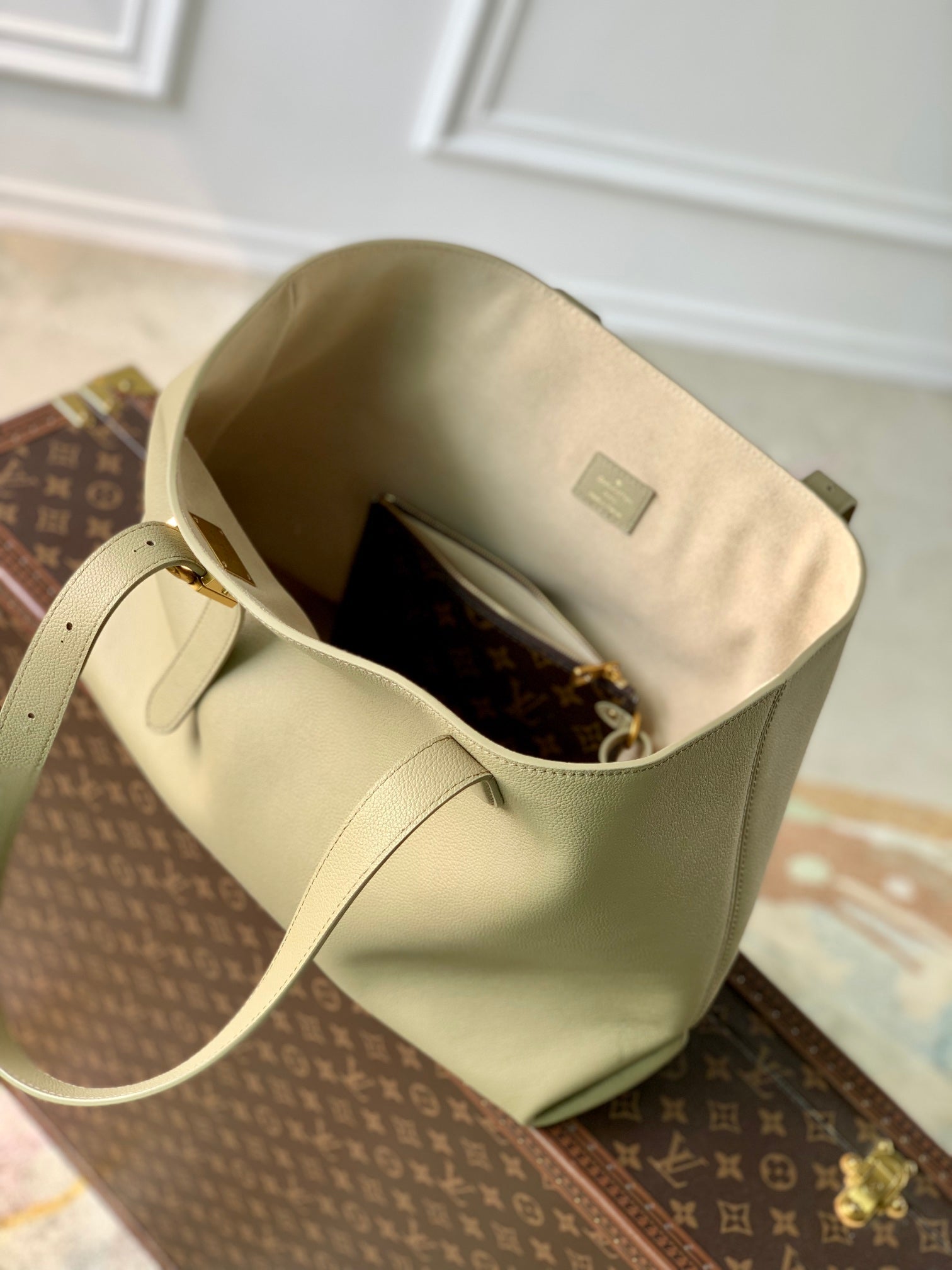 LOW KEY CABAS MM BAG 47 IN BASIL GREEN GRAINED CALFSKIN