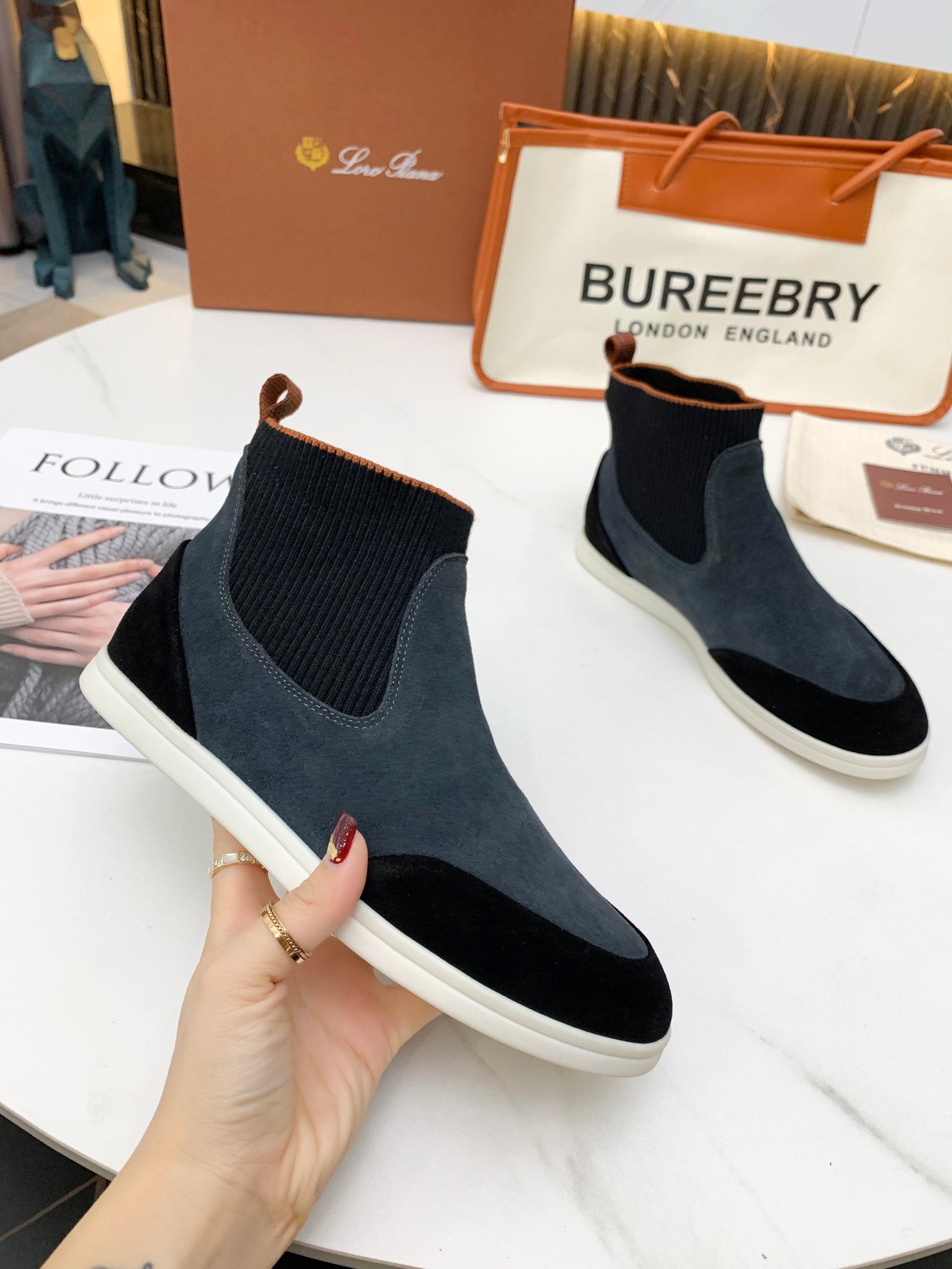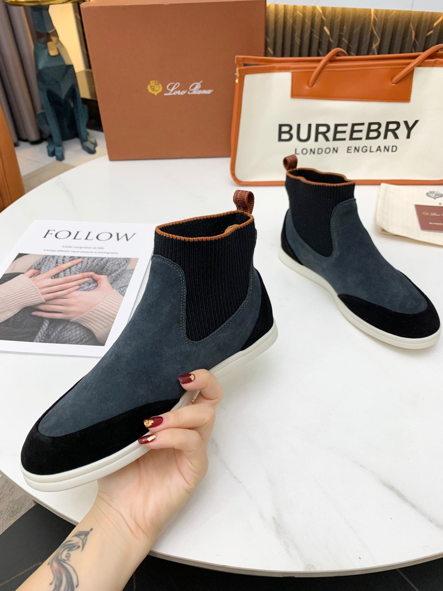 LP CHARMS ANKLE BOOTS BLACK AND GRAY CASHMERE FABRIC
