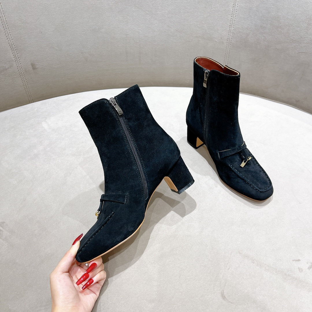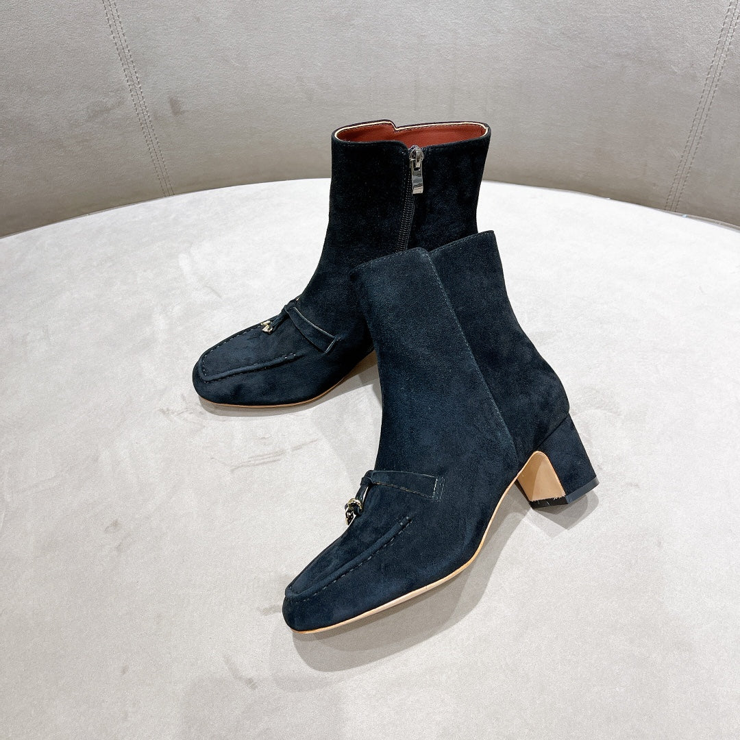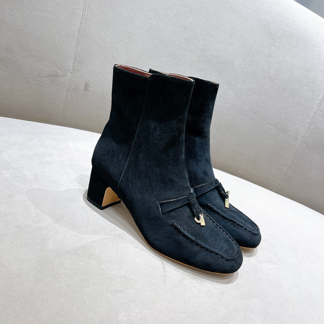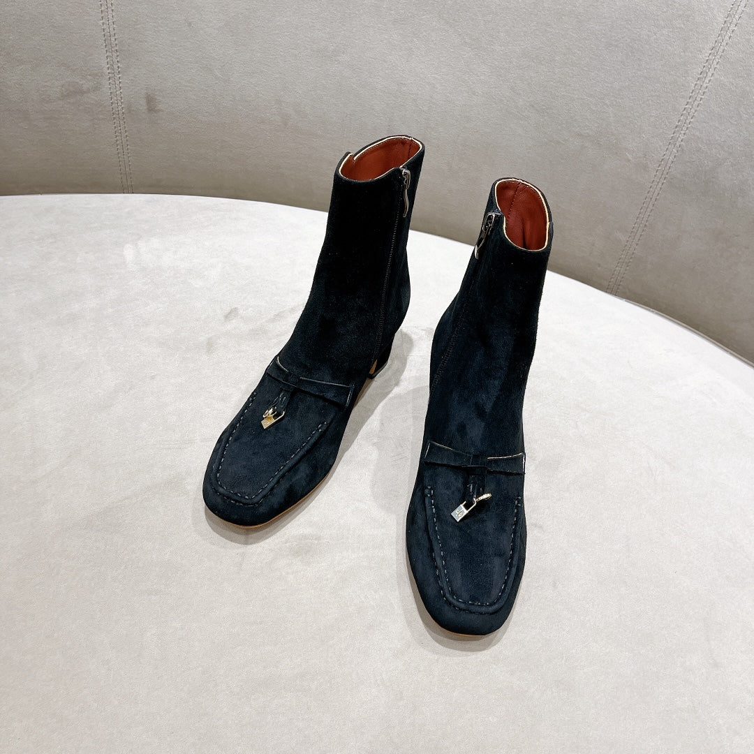 LP CHARMS ANKLE BOOTS METAL LOCK DENIM SUEDE