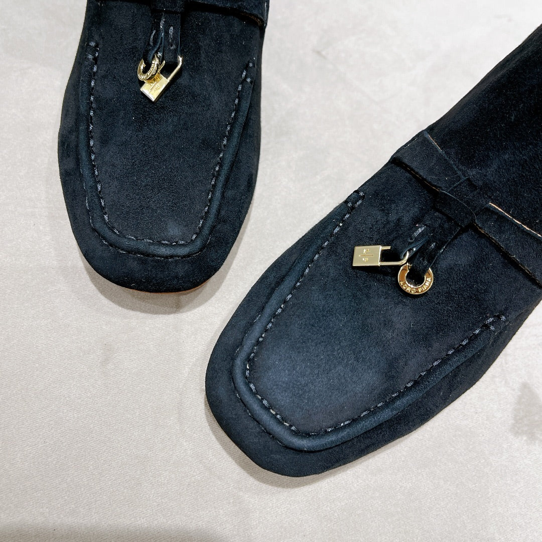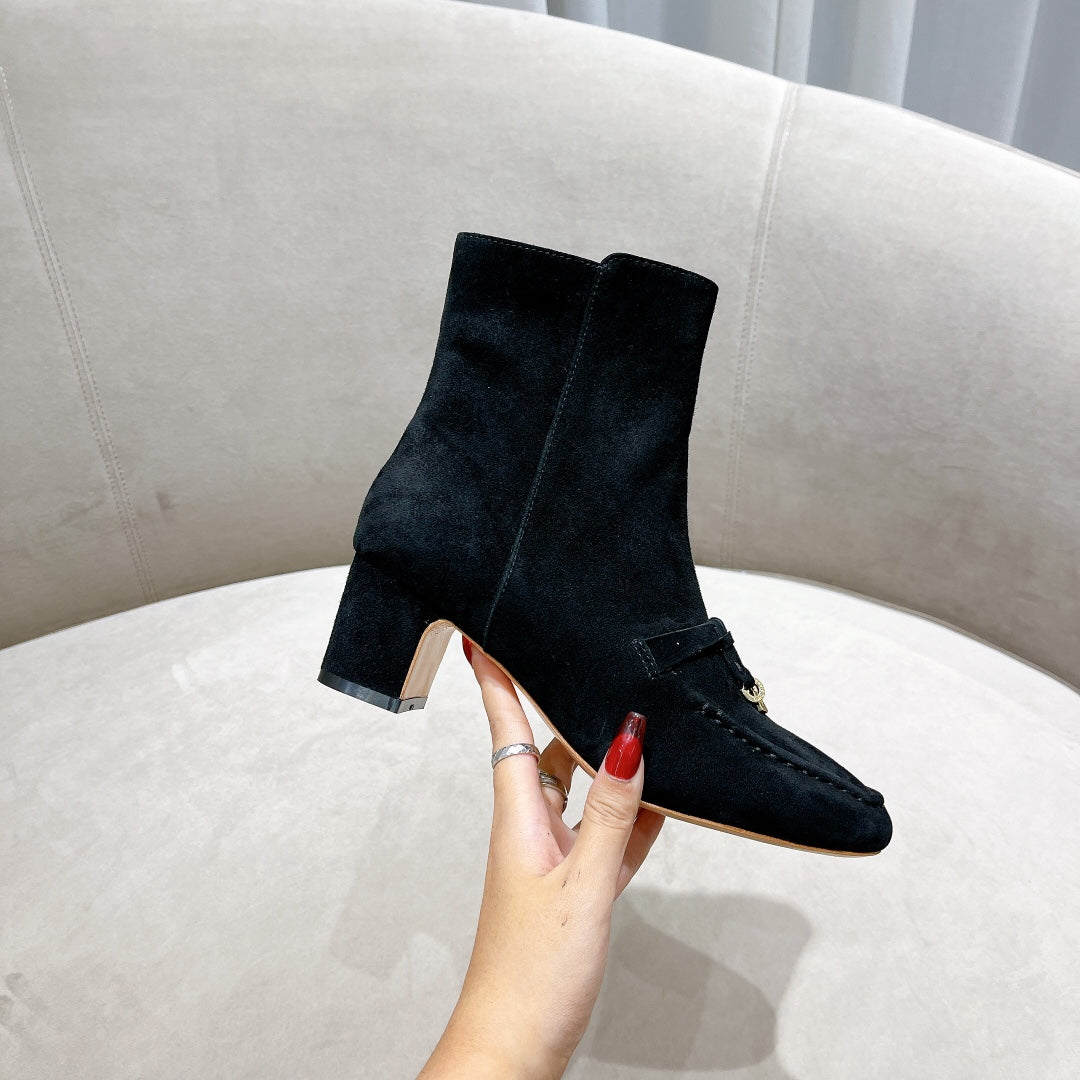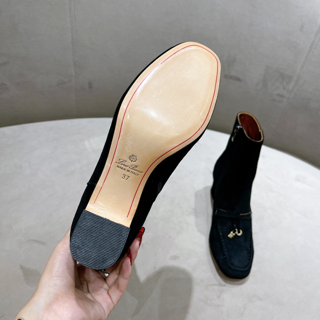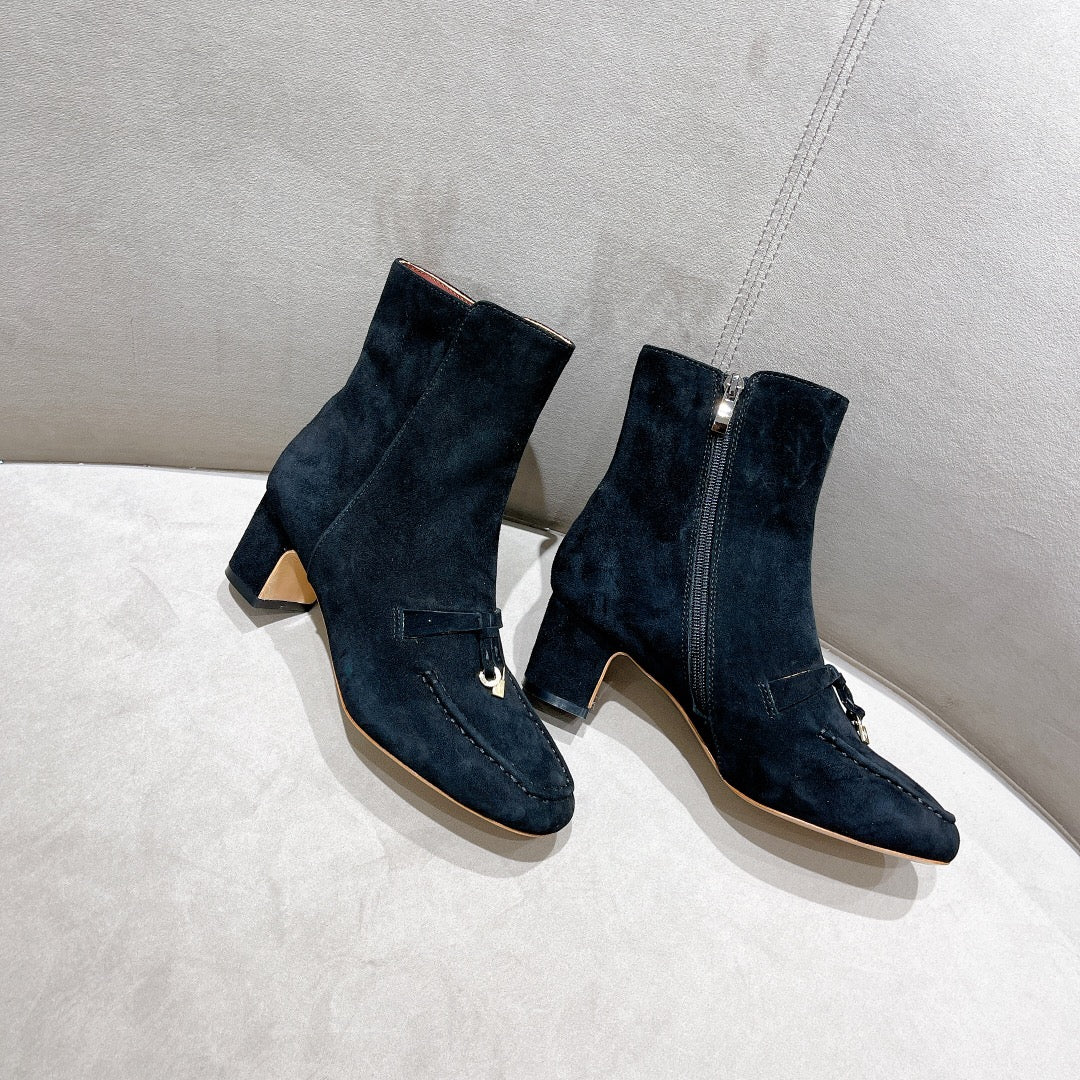 LP CHARMS ANKLE BOOTS METAL LOCK DENIM SUEDE