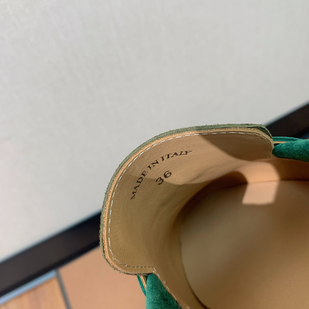 LP CHARMS WALK BABOUCHE LOAFERS OLIVE AND PINE SUEDE
