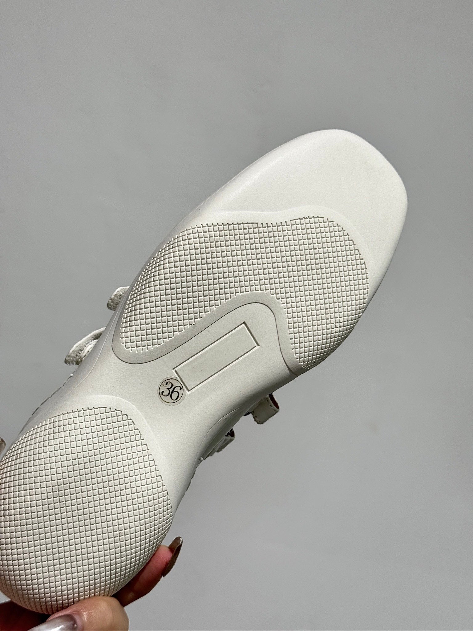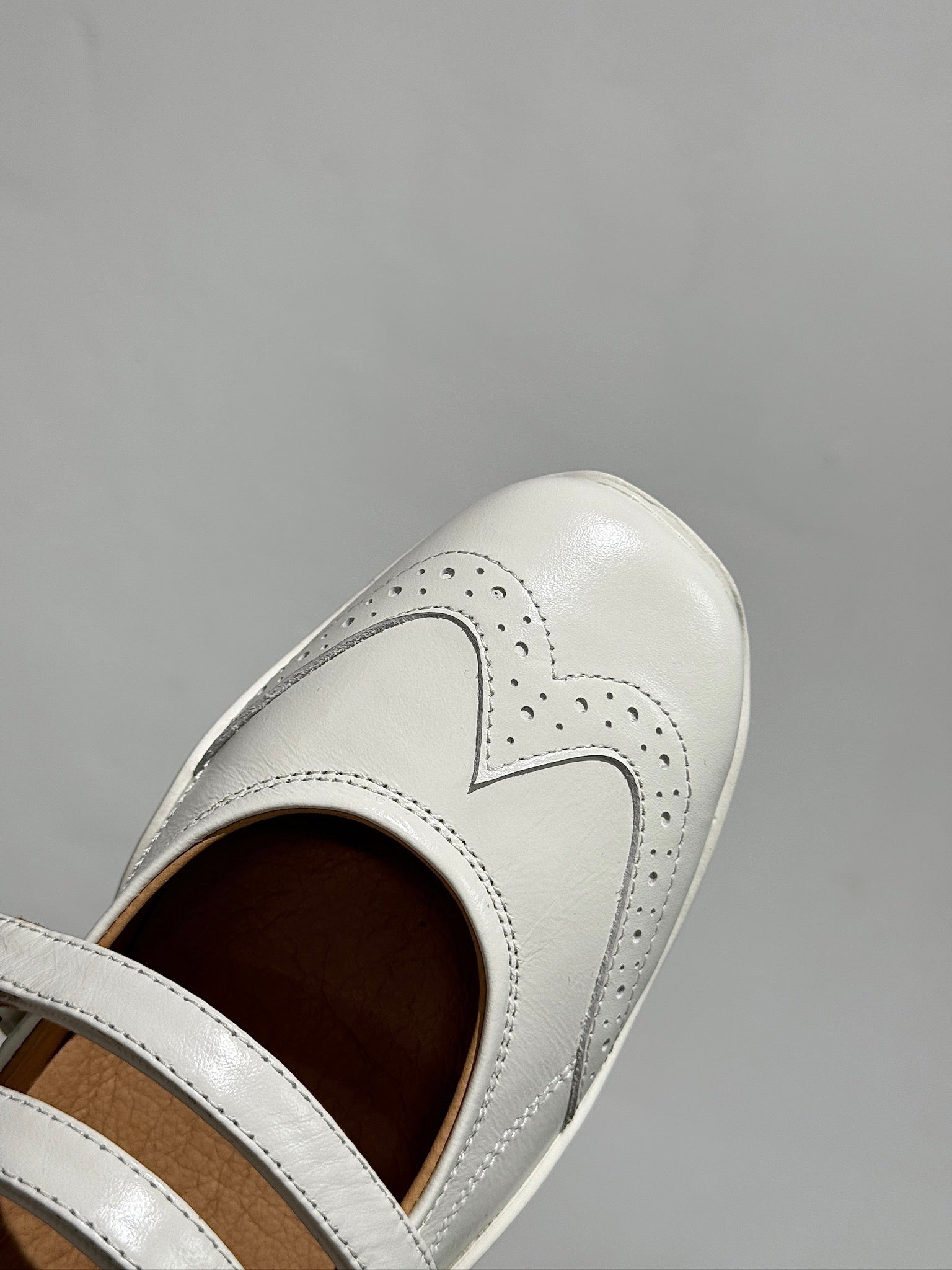 LP DOUBLE-STRAP MARY JANE FLATS 25S IN WHITE LAMBSKIN