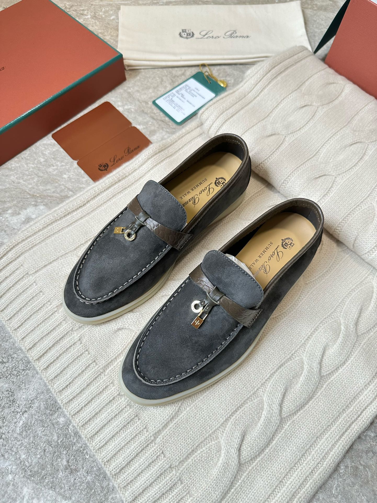 LP LOAFERS 25S IN DARK GREY SUEDE MIX LAMBSKIN