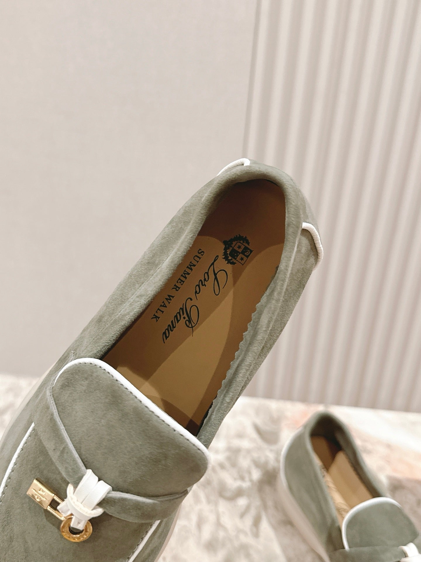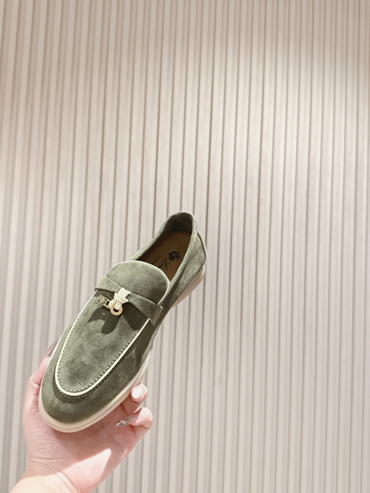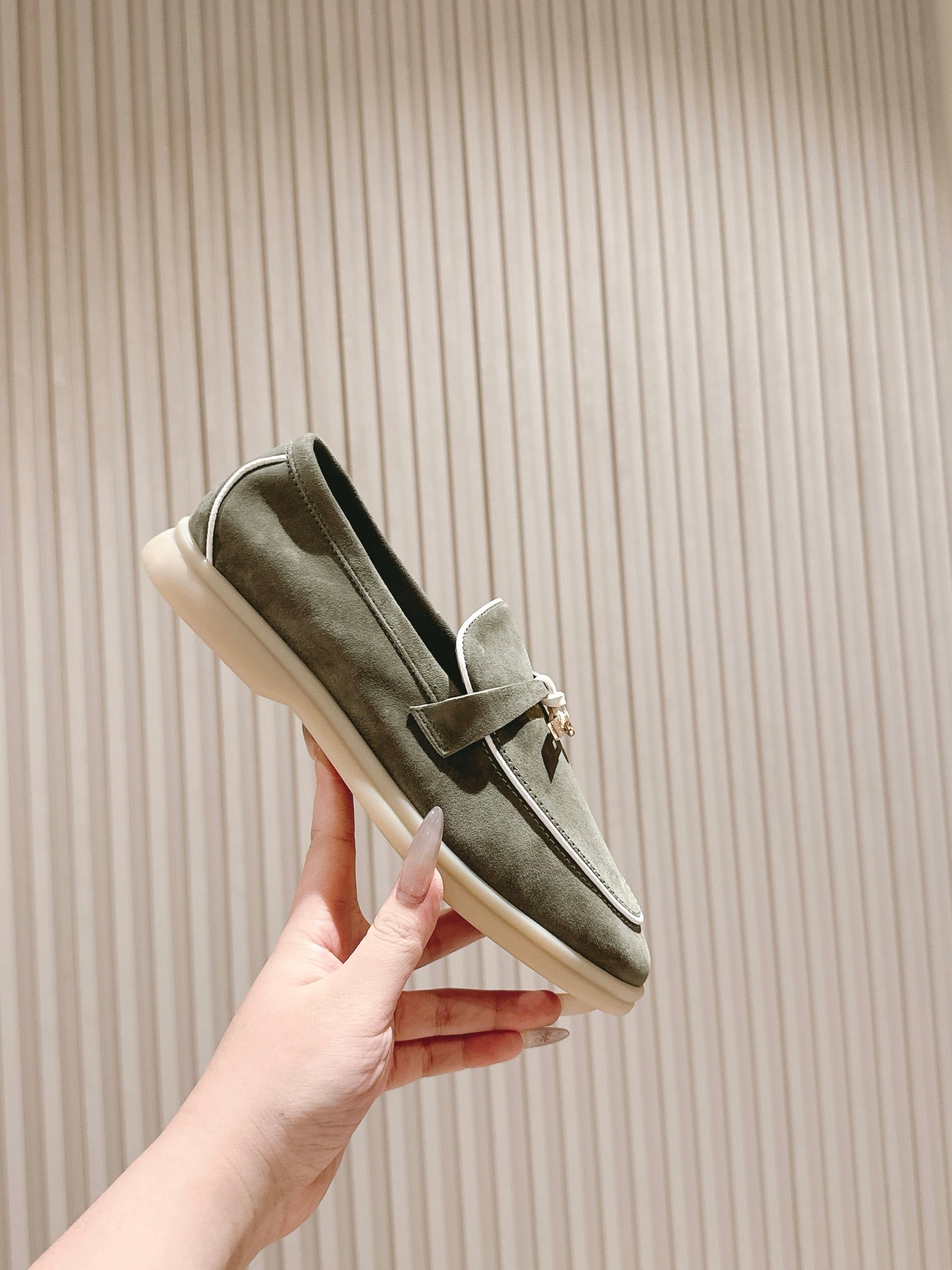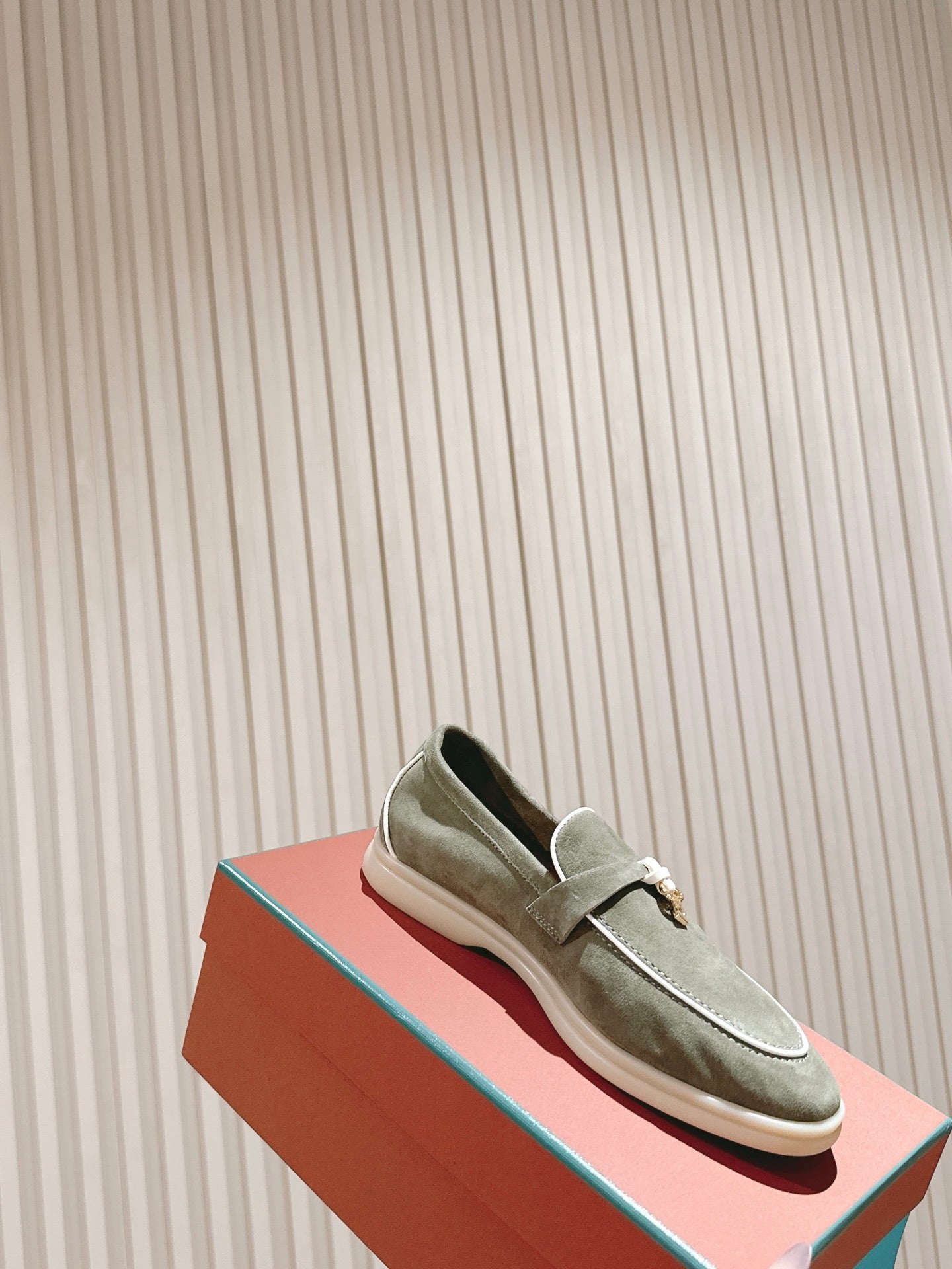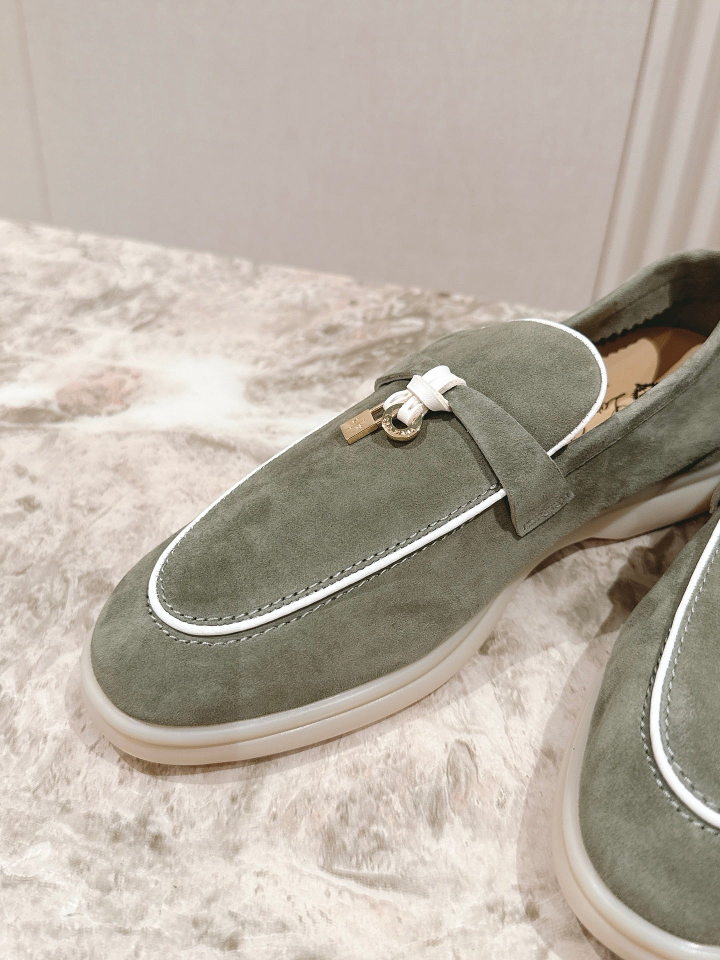 LP LOAFERS 25S IN MOSS GREEN SUEDE WITH SILVER HARDWARE