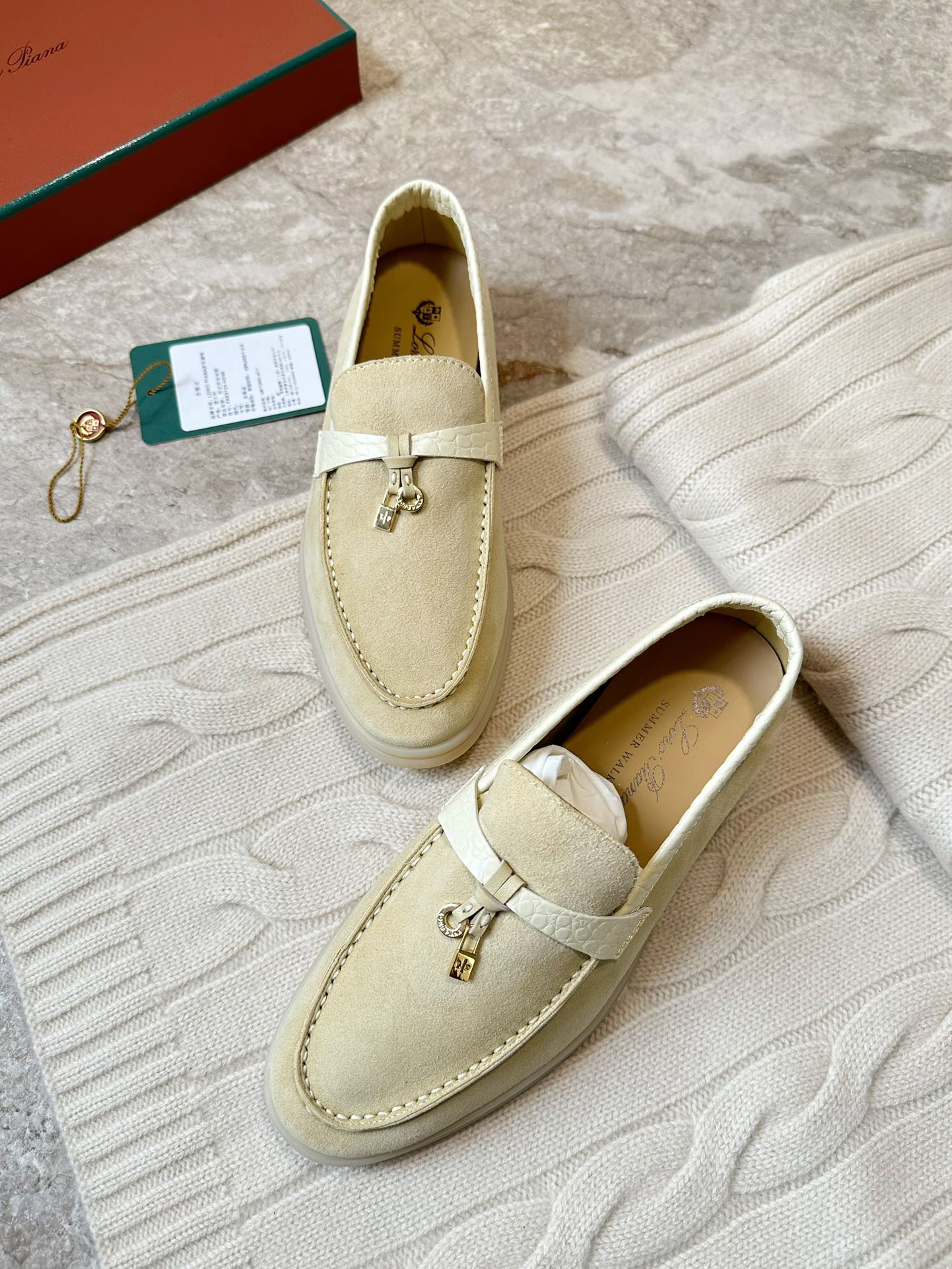 LP LOAFERS 25S IN SOFT BEIGE SUEDE MIX LAMBSKIN