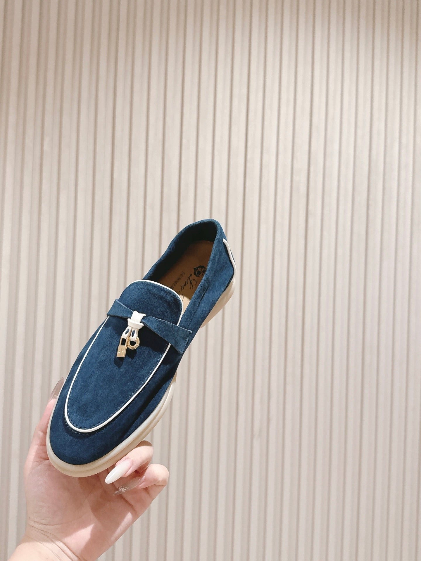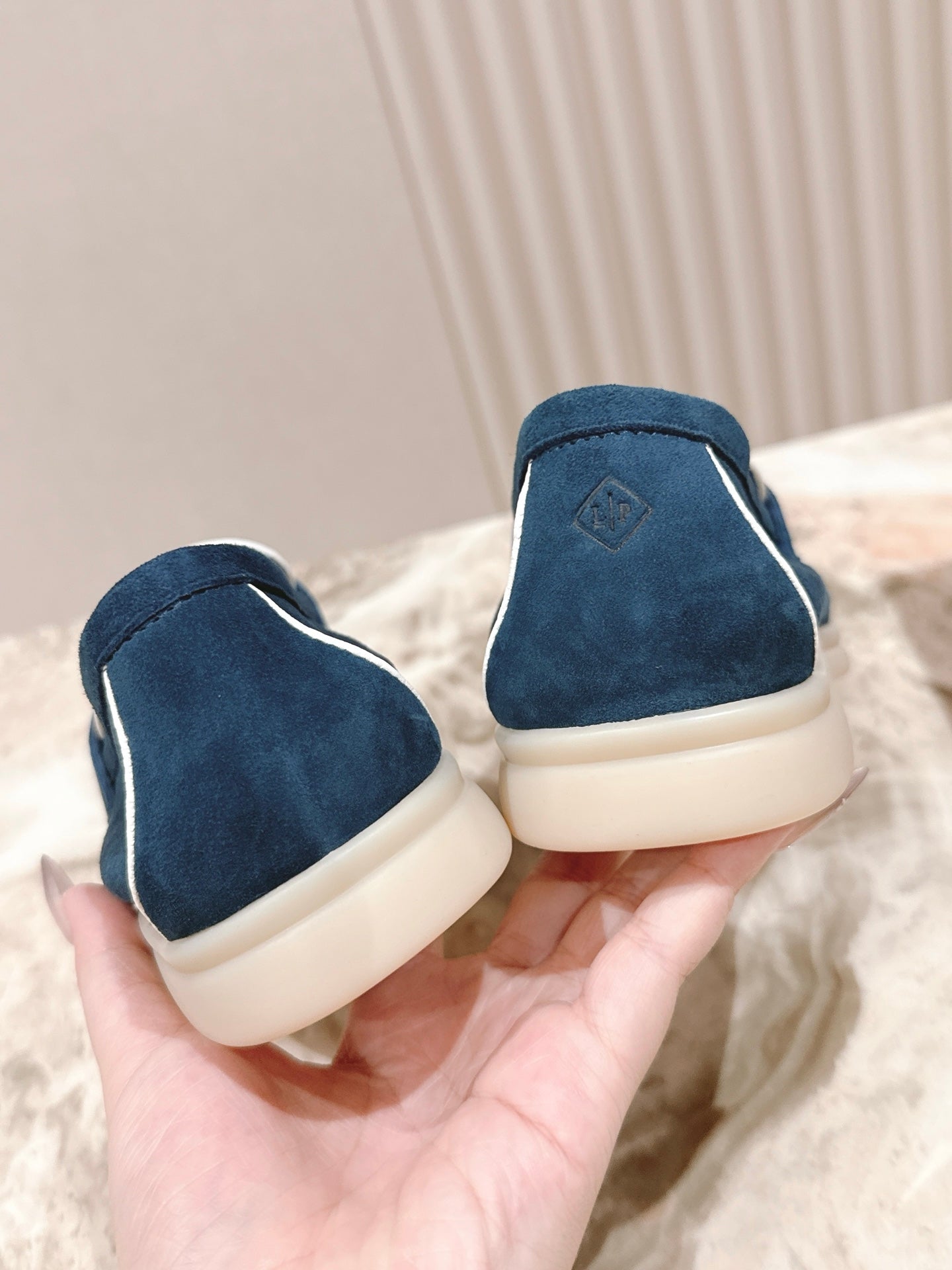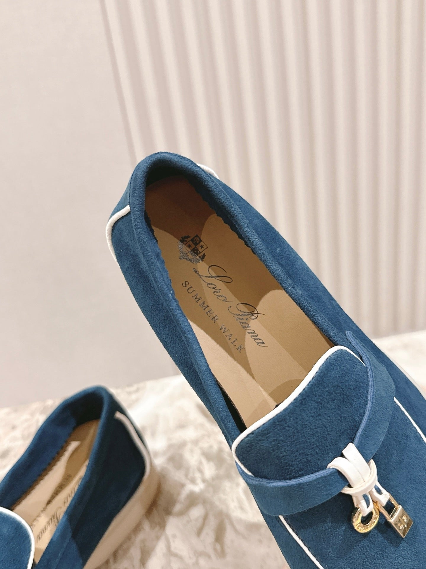 LP LOAFERS 25S IN STEEL BLUE SUEDE WITH SILVER HARDWARE