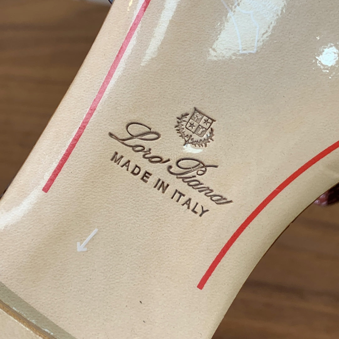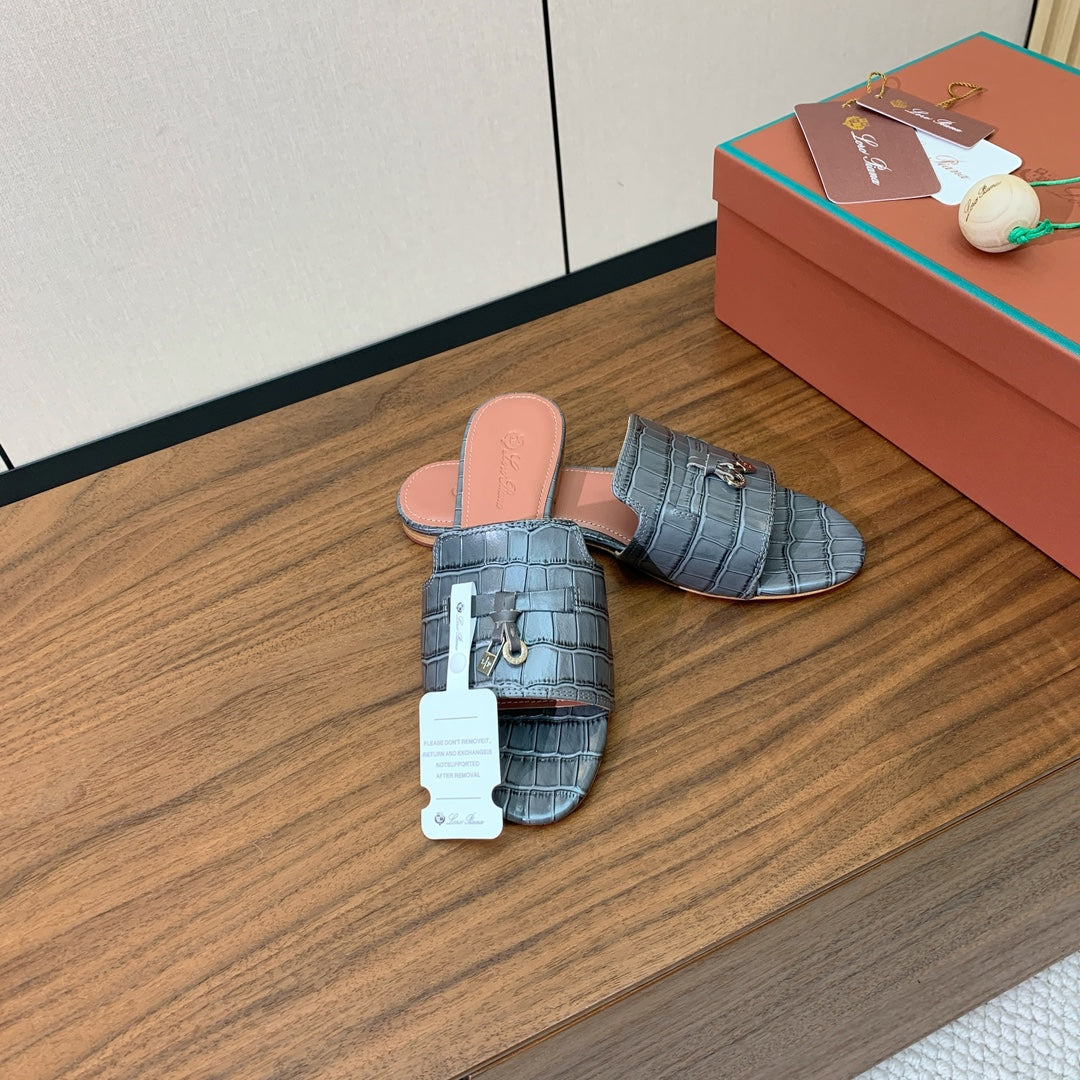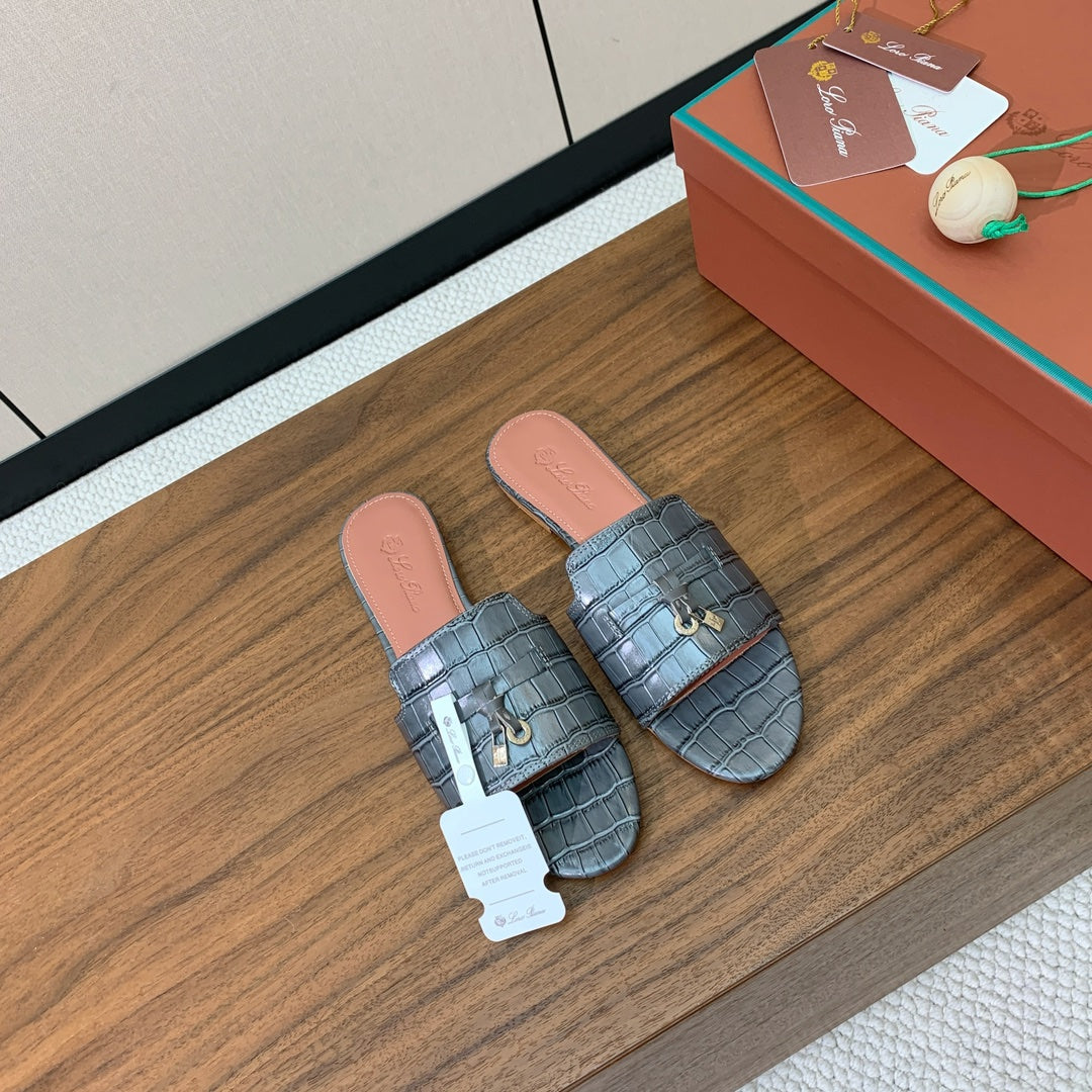 LP OSTRICH-EMBOSSED FLAT SANDALS 25S IN DARK GRAY LAMBSKIN