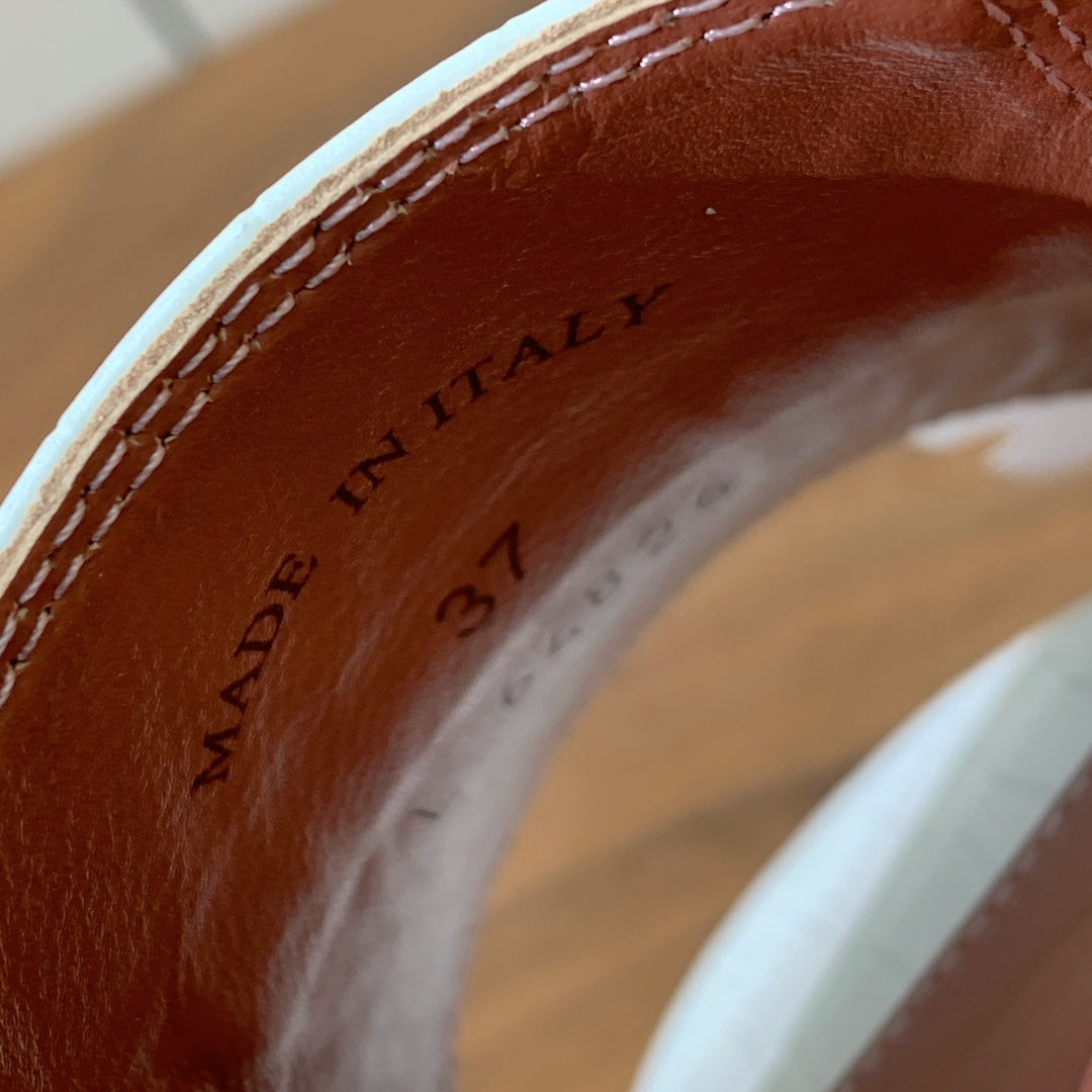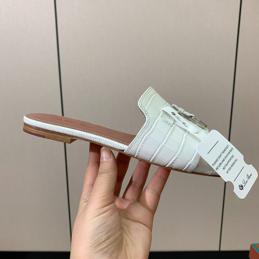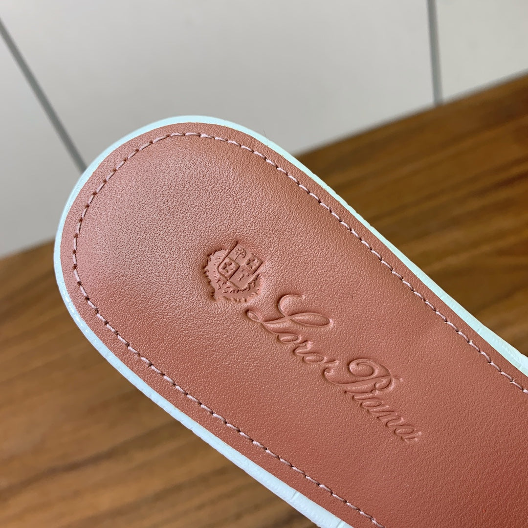 LP OSTRICH-EMBOSSED FLAT SANDALS 25S IN WHITE LAMBSKIN