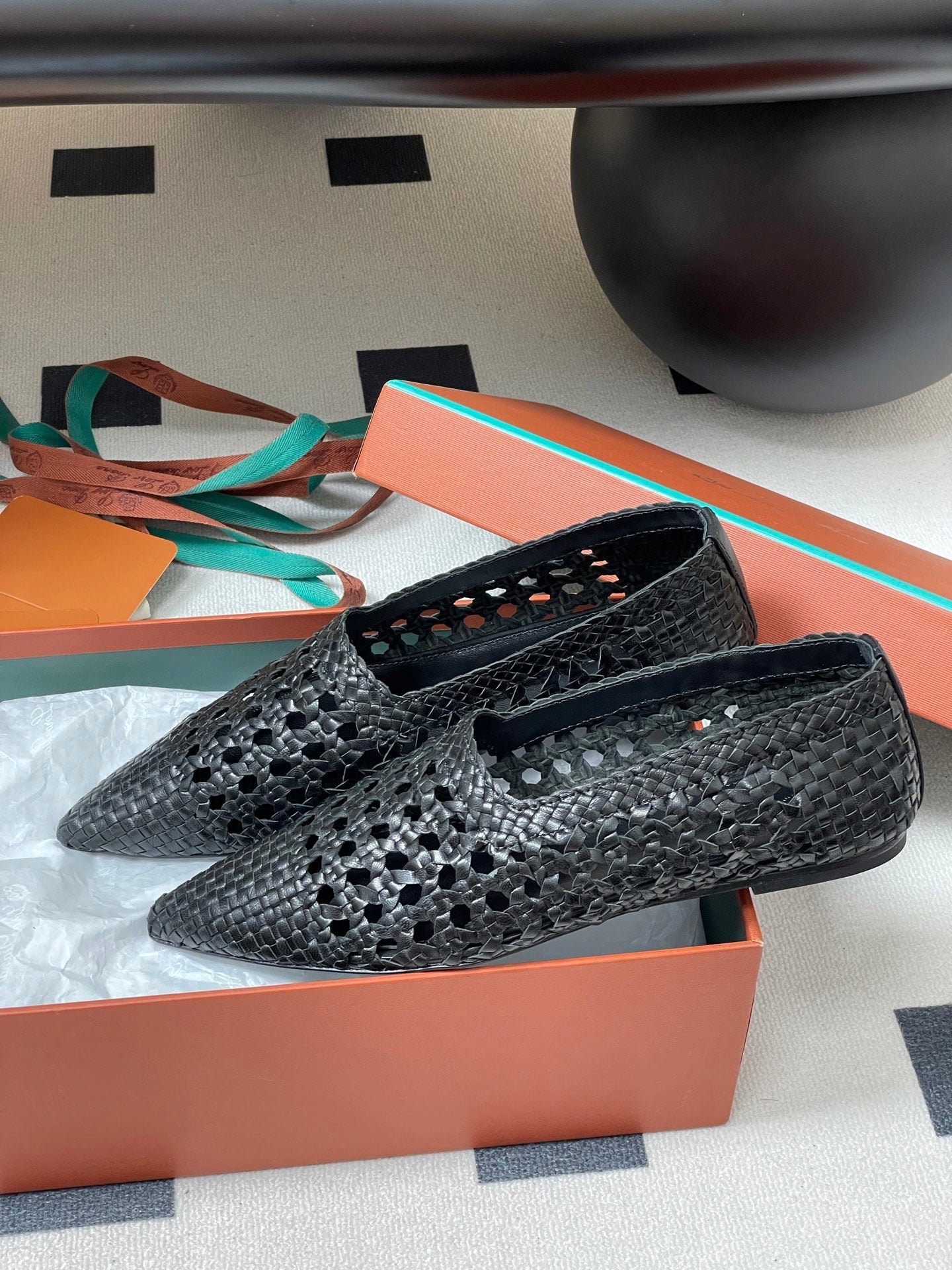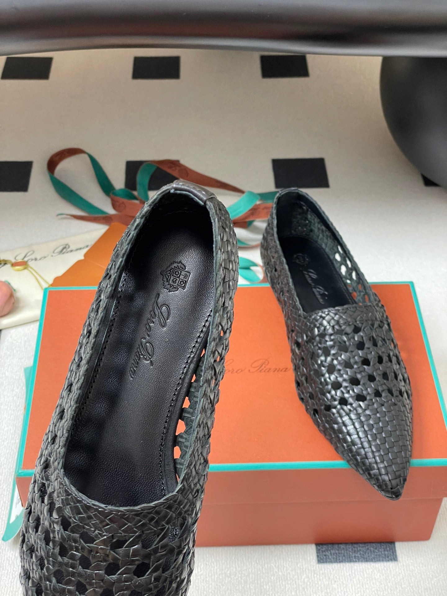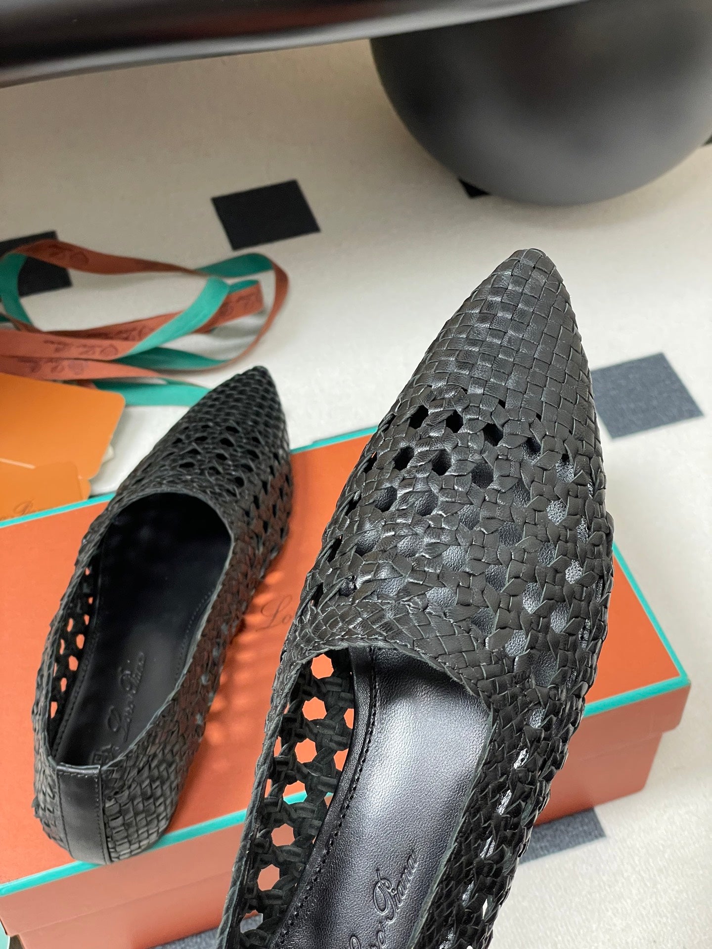LP POINTED-TOE BALLET FLATS 25S IN BLACK LAMBSKIN